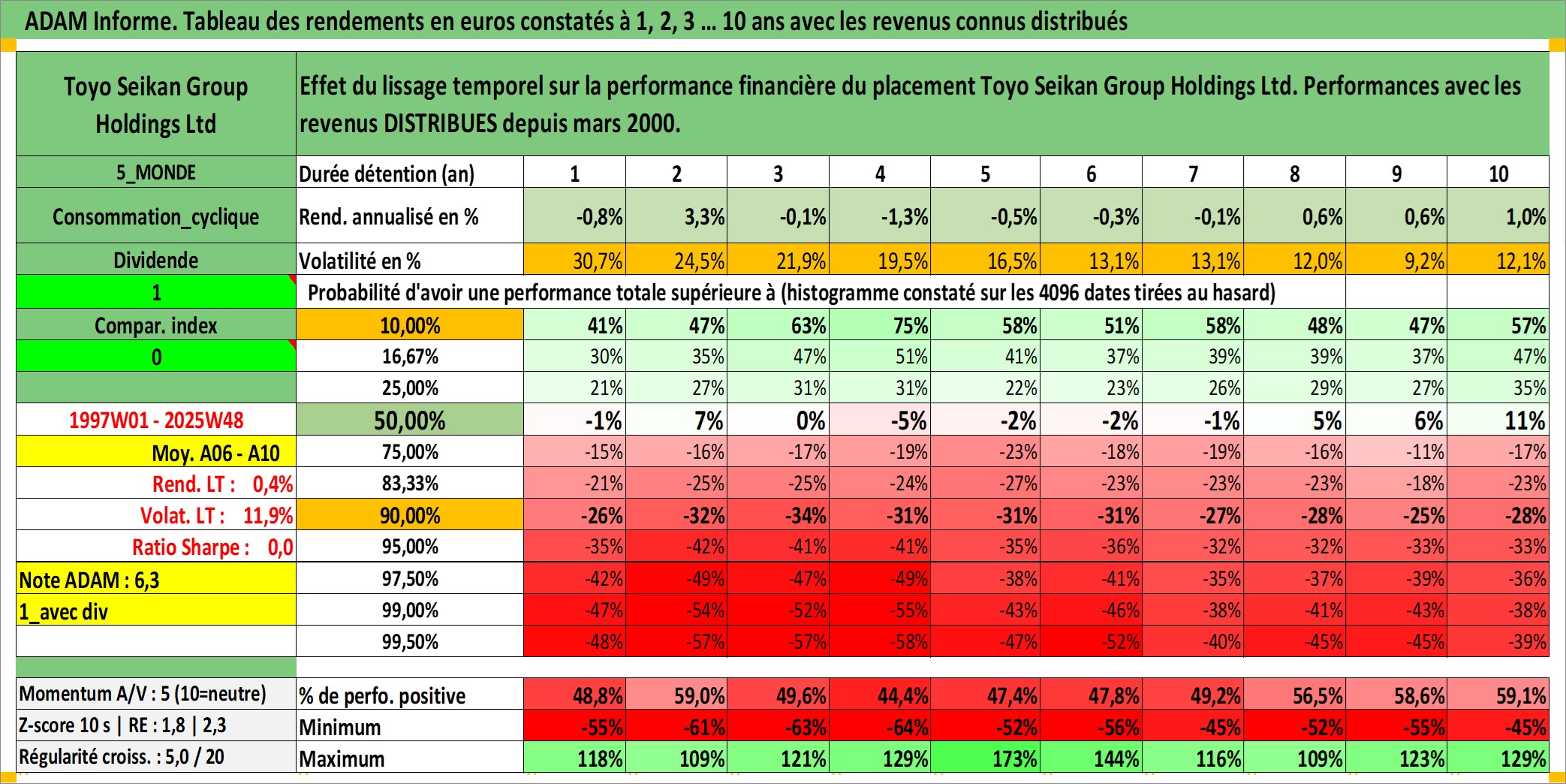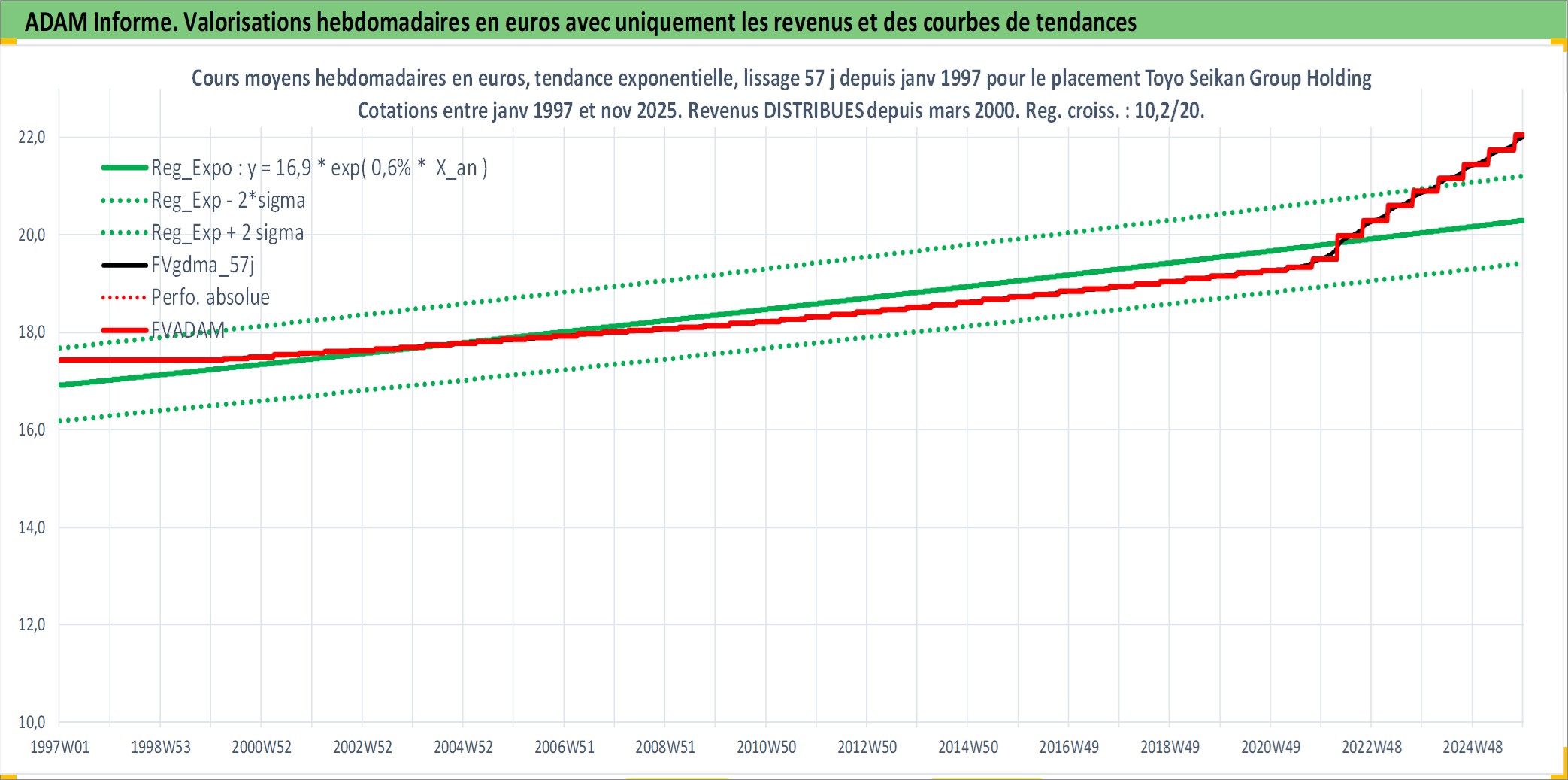 Site dédié aux investisseursPage dédiée sur site financeAnalyse des valorisations hebdomadaires de l'action Toyo Seikan Group Holdings Ltd. Cet actif est cote en JPY. Les valorisations sont en contrevaleur EURO et couvrent les semaines 1997W01 a 2025W48. Les revenus de cet actif financier sont pris en compte depuis la semaine 2000W13. La note ESG de cet actif n'est pas connue.