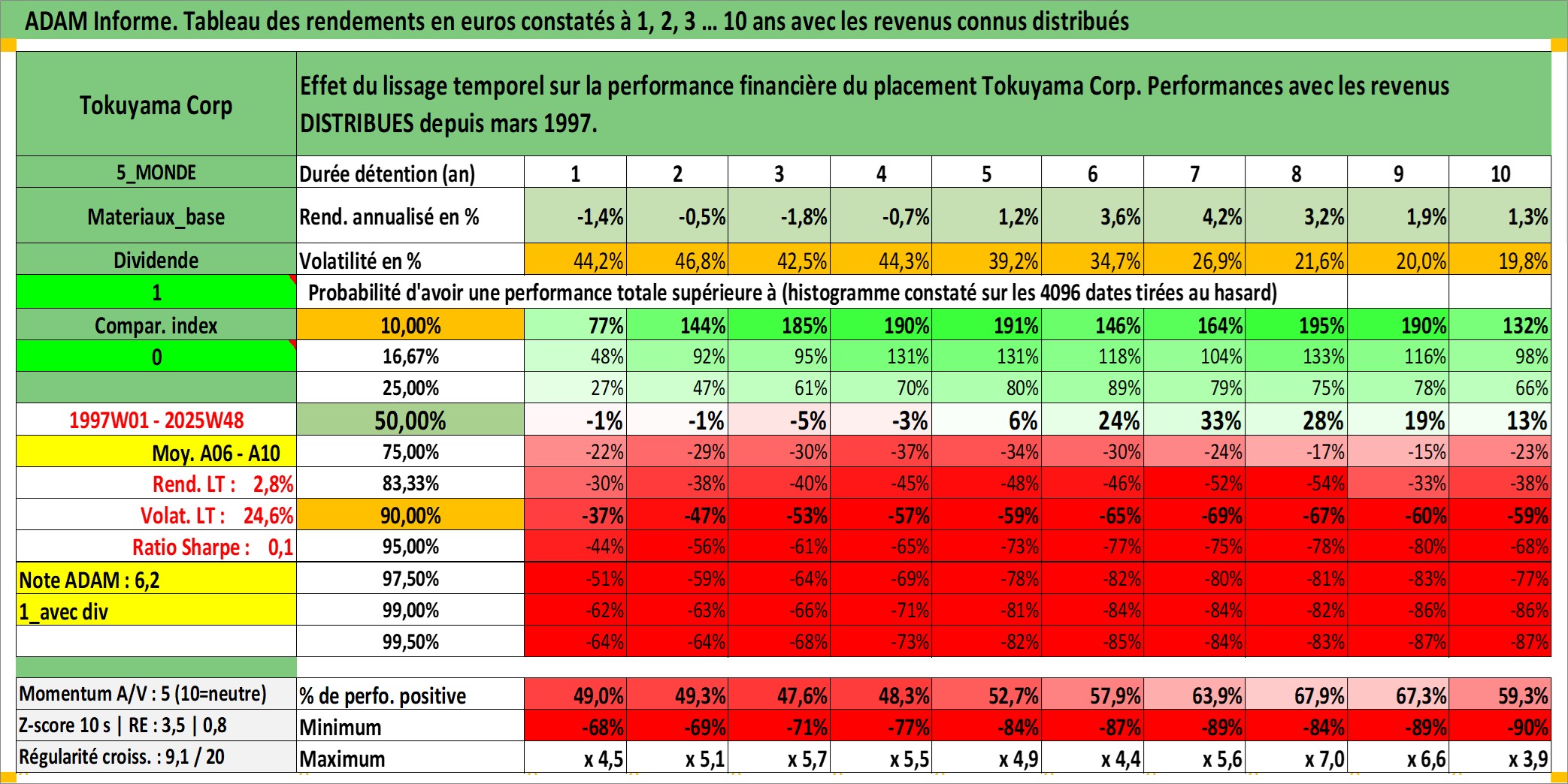 Site dédié aux investisseursPage dédiée sur site financeAnalyse des valorisations hebdomadaires de l'action Tokuyama Corp. Cet actif est cote en JPY. Les valorisations sont en contrevaleur EURO et couvrent les semaines 1997W01 a 2025W48. Les revenus de cet actif financier sont pris en compte depuis la semaine 1997W13. La note ESG de cet actif n'est pas connue.