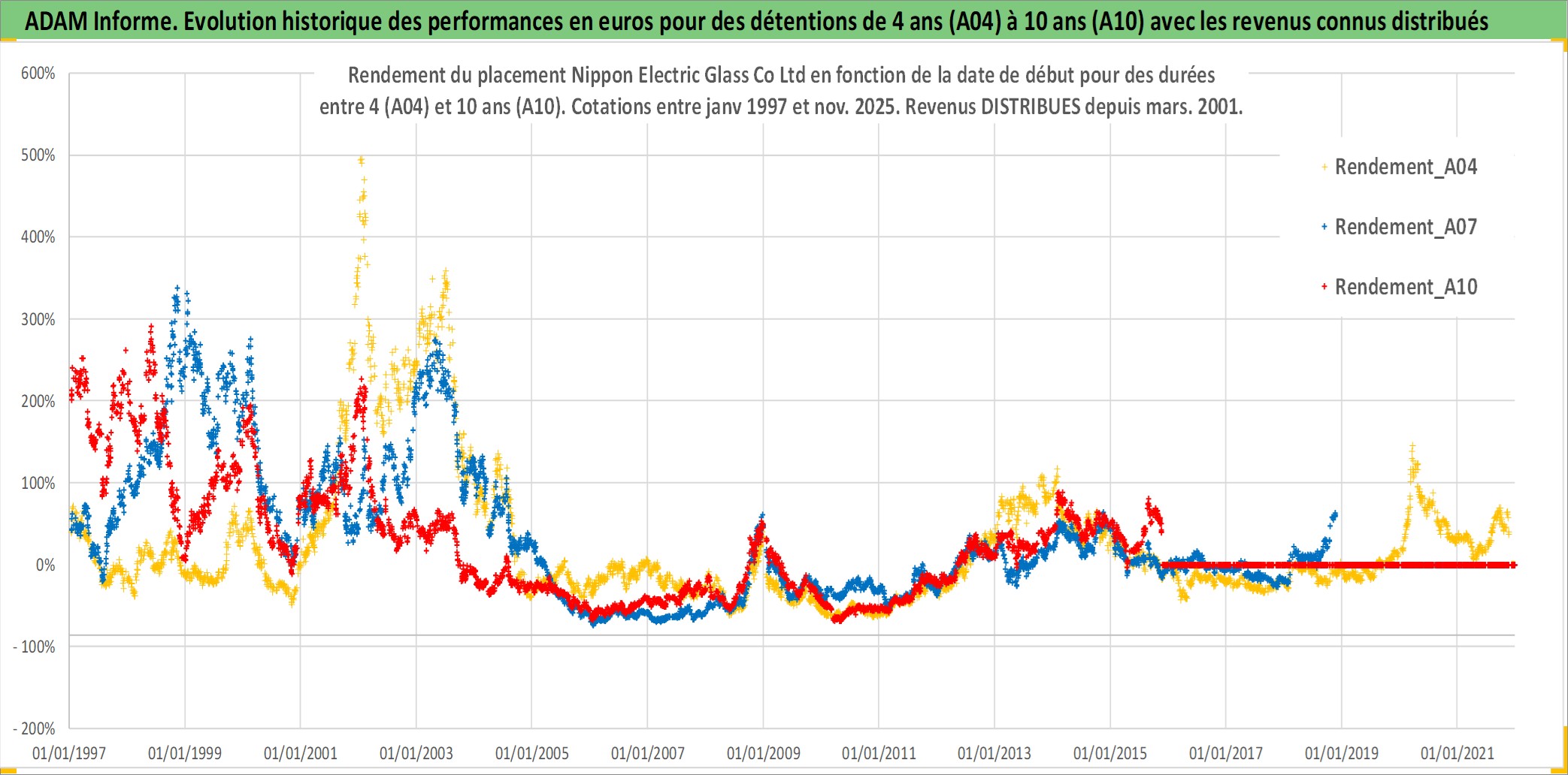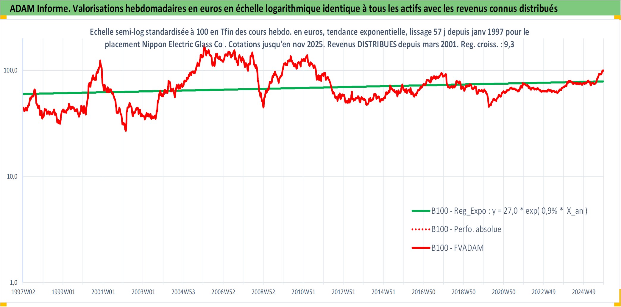 Site dédié aux investisseursPage dédiée sur site financeAnalyse des valorisations hebdomadaires de l'action Nippon Electric Glass Co Ltd. Cet actif est cote en JPY. Les valorisations sont en contrevaleur EURO et couvrent les semaines 1997W01 a 2025W48. Les revenus de cet actif financier sont pris en compte depuis la semaine 2001W13. La note ESG de cet actif n'est pas connue.