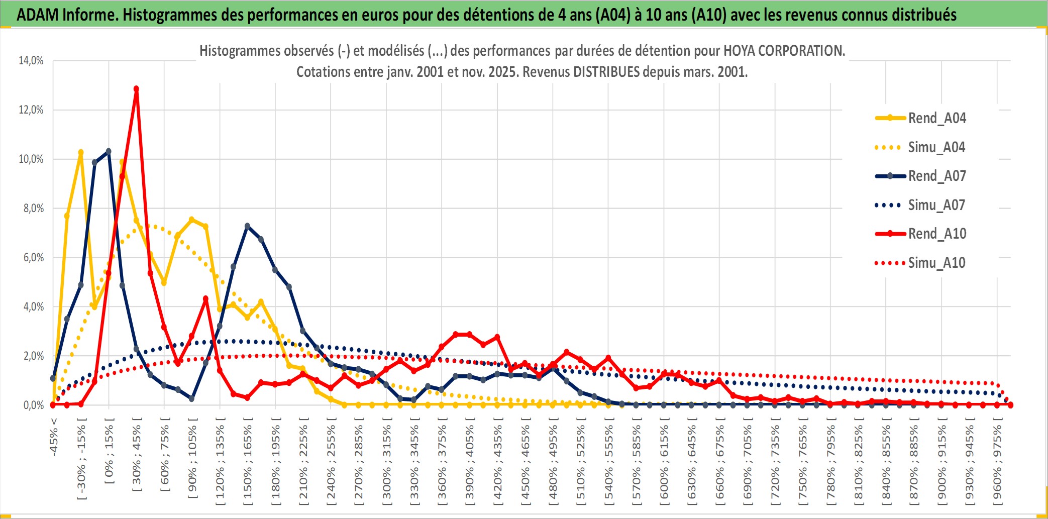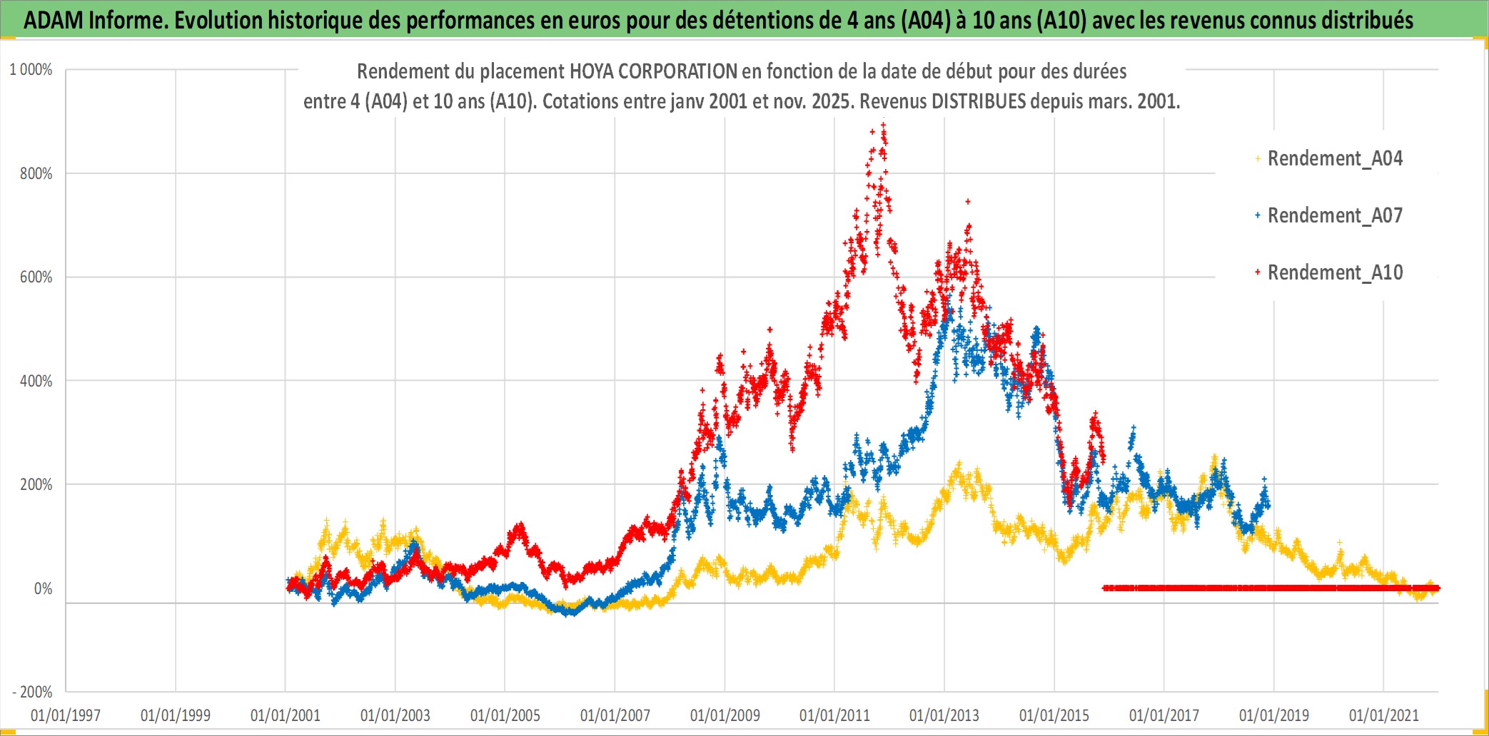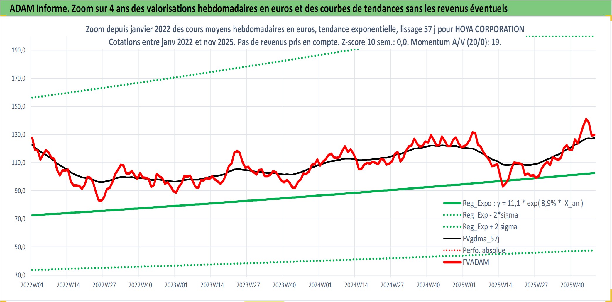 Site dédié aux investisseursPage dédiée sur site financeAnalyse des valorisations hebdomadaires de l'action HOYA CORPORATION. Cet actif est cote en JPY. Les valorisations sont en contrevaleur EURO et couvrent les semaines 2001W02 a 2025W48. Les revenus de cet actif financier sont pris en compte depuis la semaine 2001W13. La note globale ESG de cet actif est estimee a 11.0 (apres rebasage entre 0 et 20).