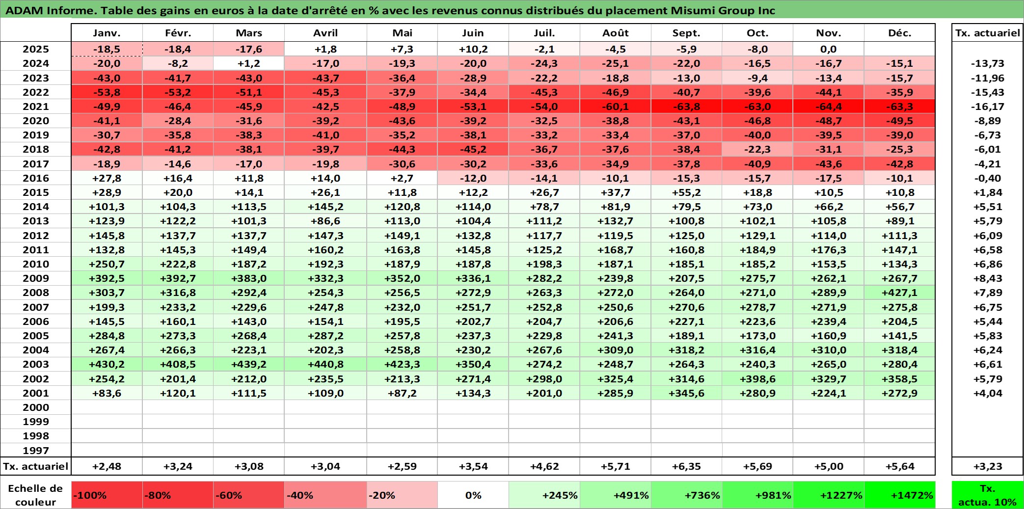Dernière perfo 10 ans en %