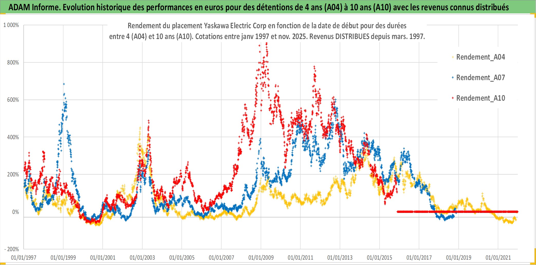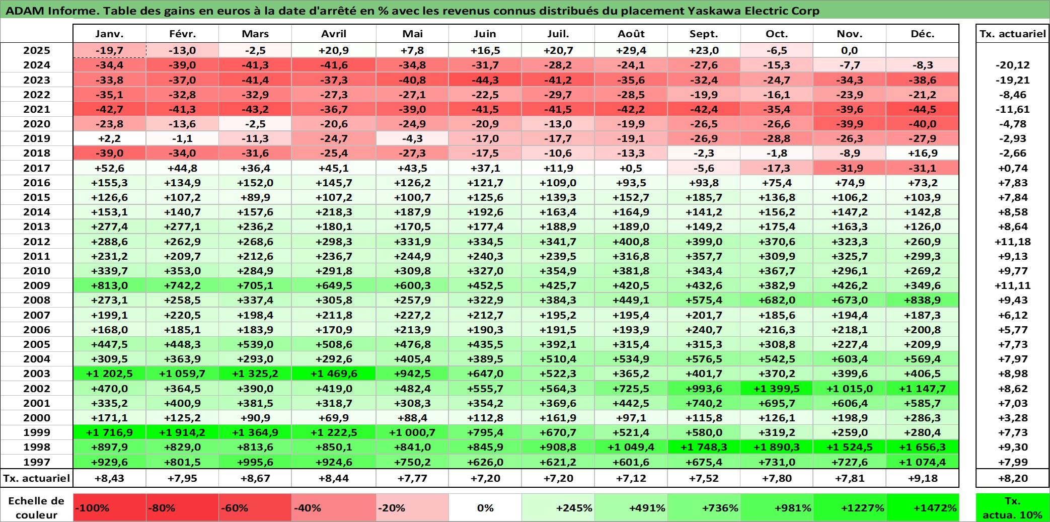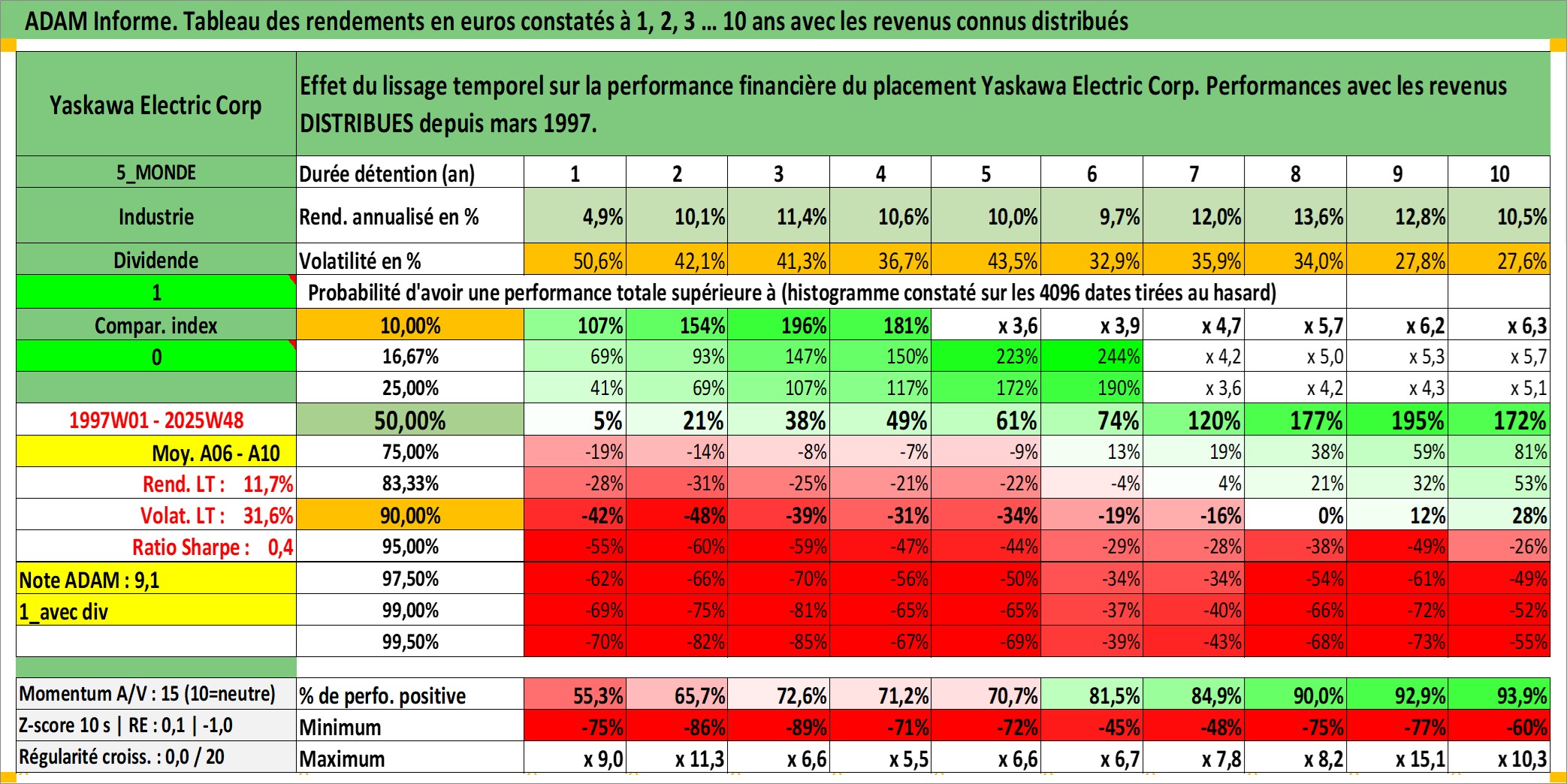 Site dédié aux investisseursPage dédiée sur site financeAnalyse des valorisations hebdomadaires de l'action Yaskawa Electric Corp. Cet actif est cote en JPY. Les valorisations sont en contrevaleur EURO et couvrent les semaines 1997W01 a 2025W48. Les revenus de cet actif financier sont pris en compte depuis la semaine 1997W11. La note ESG de cet actif n'est pas connue.