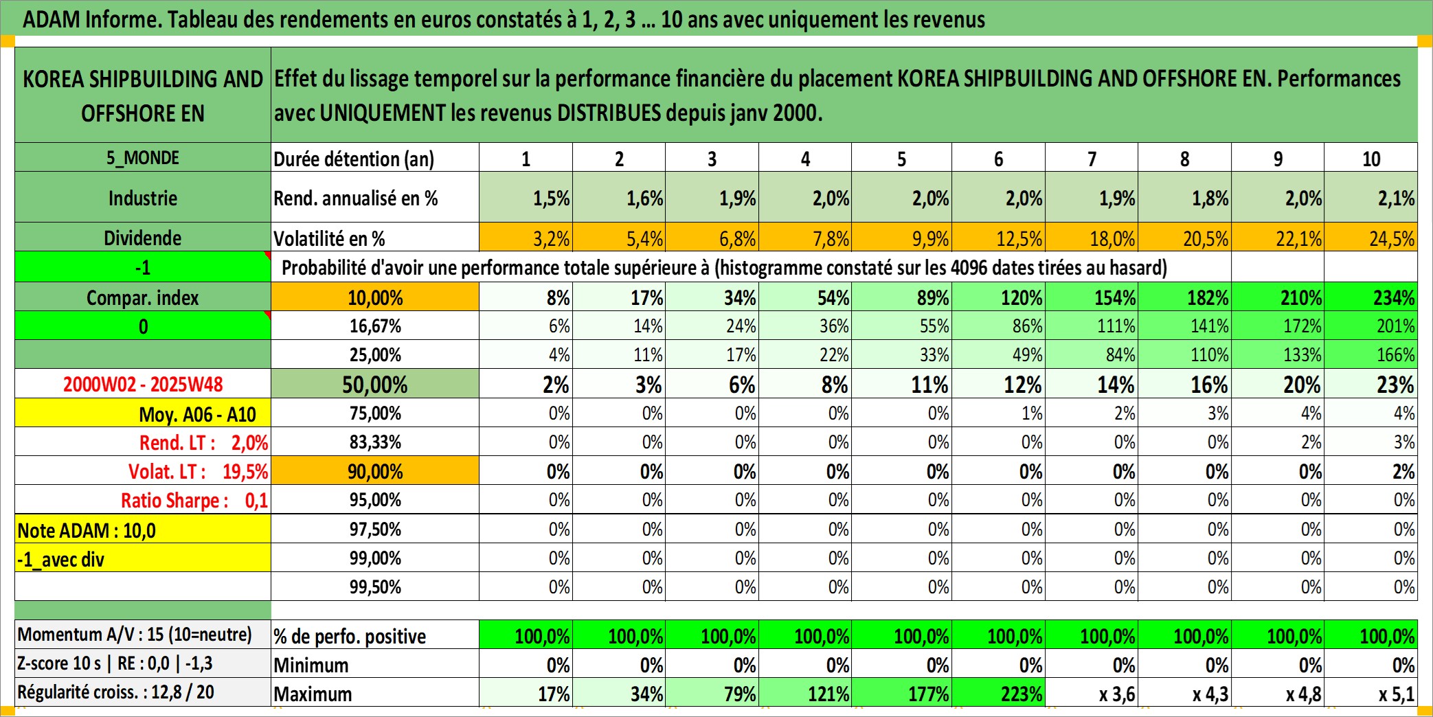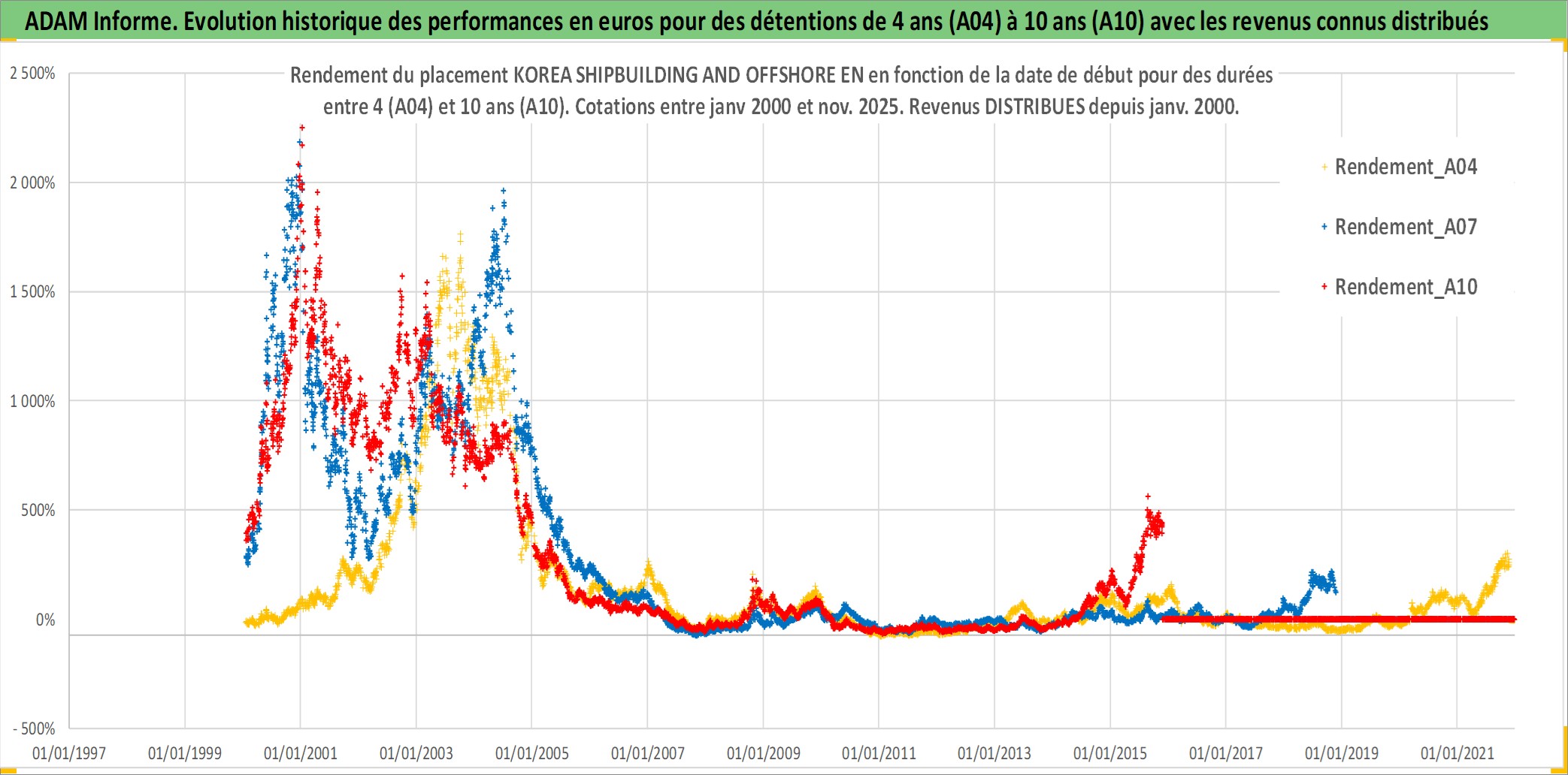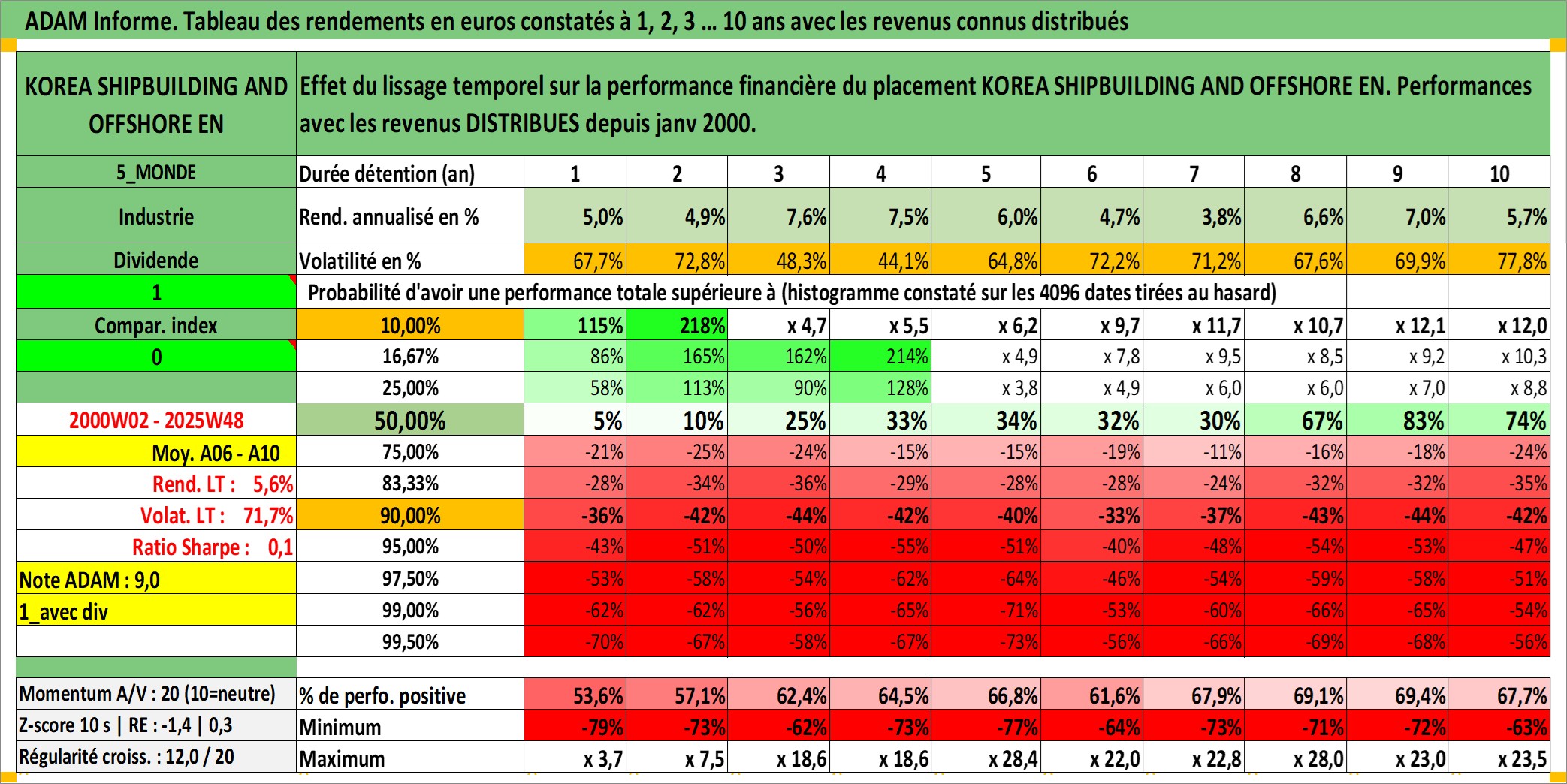 Site dédié aux investisseursPage dédiée sur site financeAnalyse des valorisations hebdomadaires de l'action KOREA SHIPBUILDING AND OFFSHORE EN. Cet actif est cote en KRW. Les valorisations sont en contrevaleur EURO et couvrent les semaines 2000W02 a 2025W48. Les revenus de cet actif financier sont pris en compte depuis la semaine 2000W01. La note globale ESG de cet actif est estimee a 6.0 (apres rebasage entre 0 et 20).