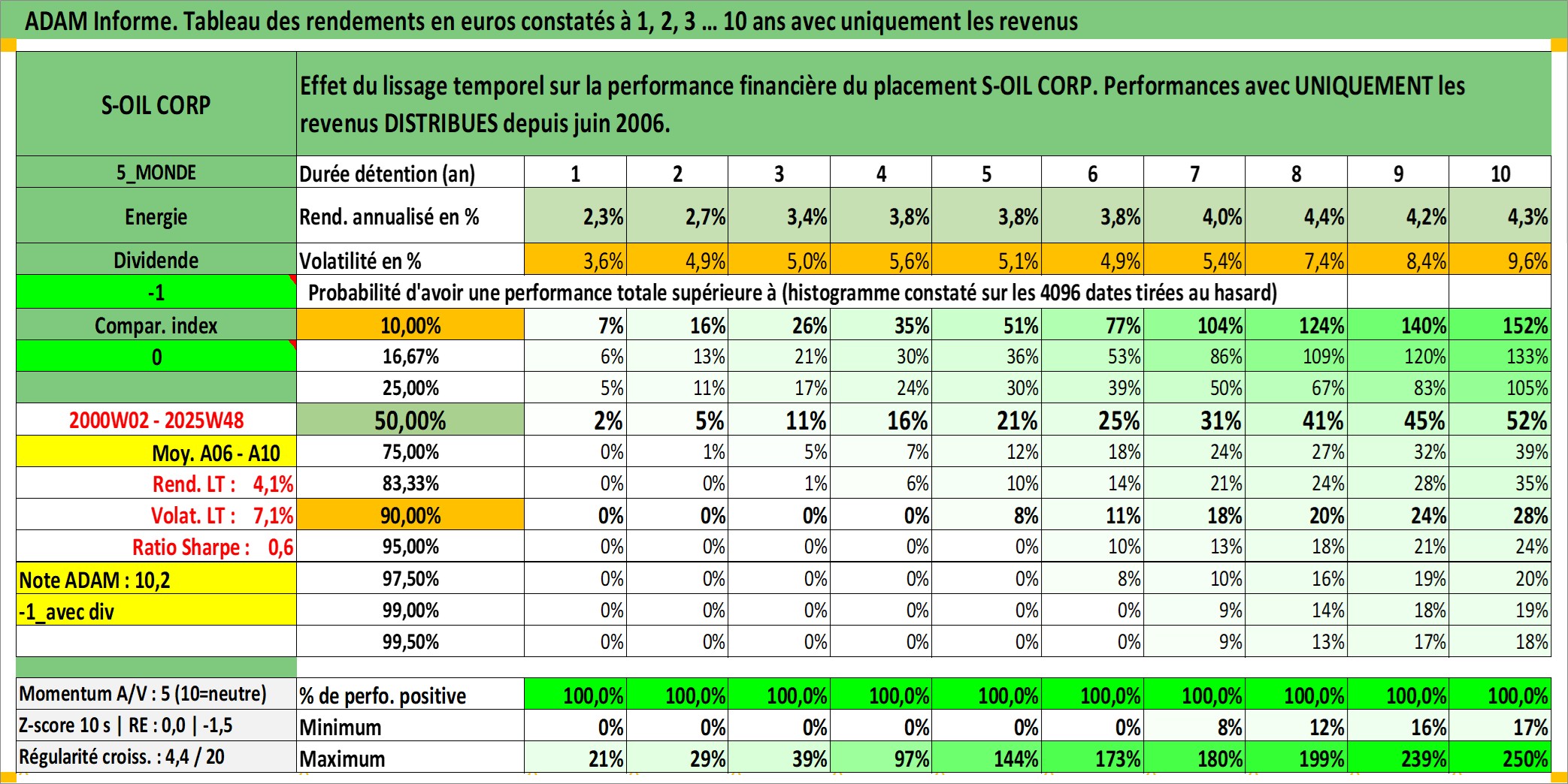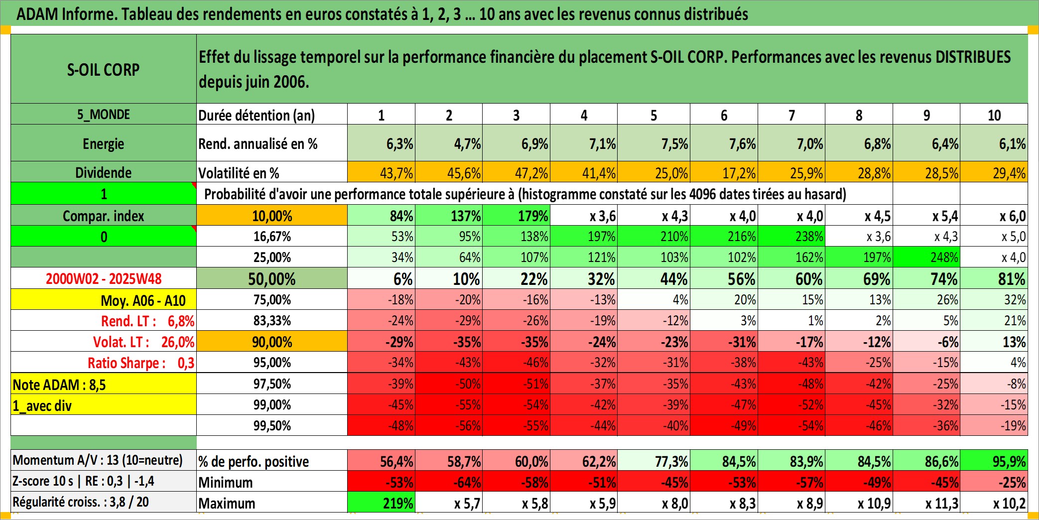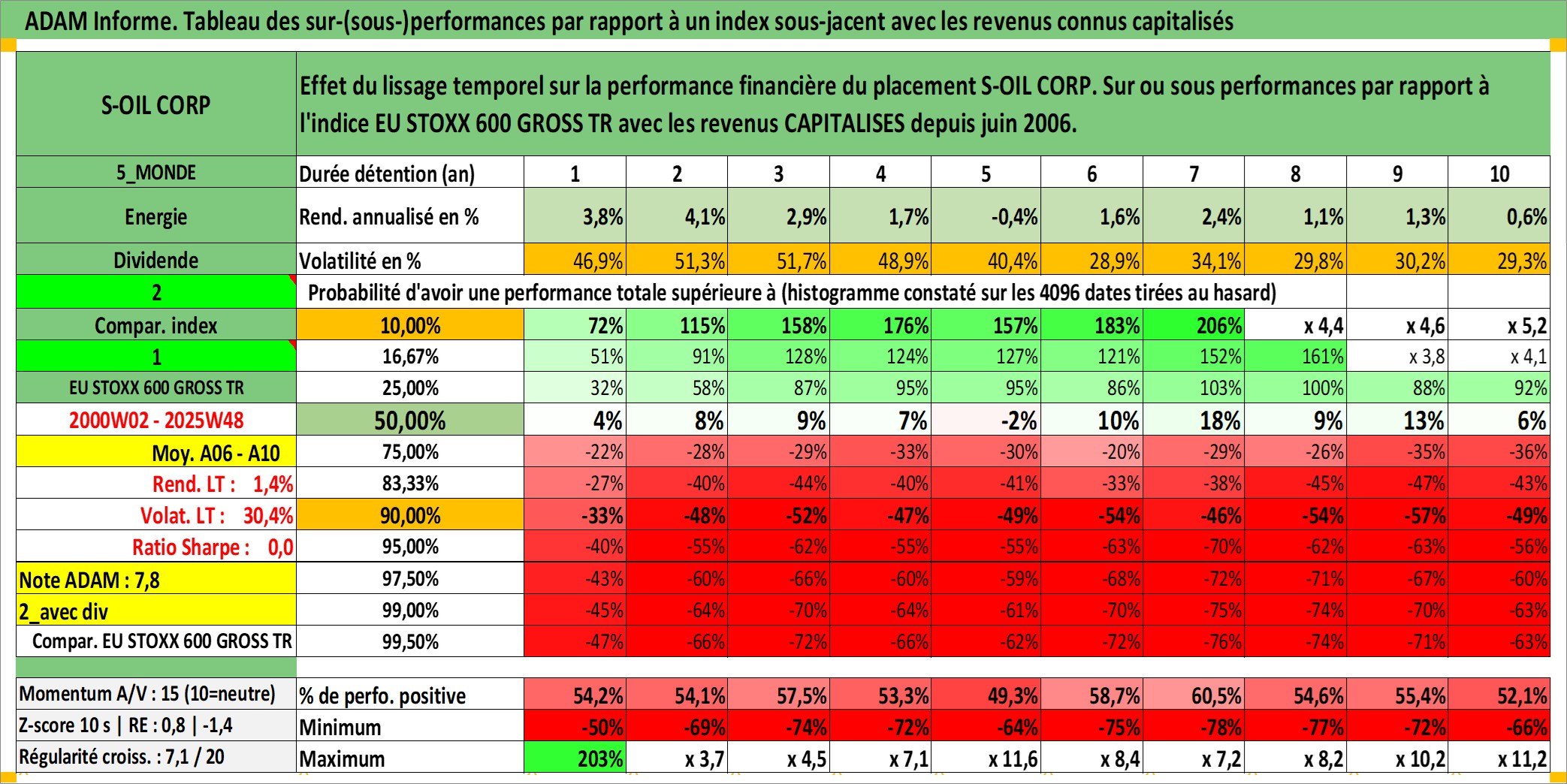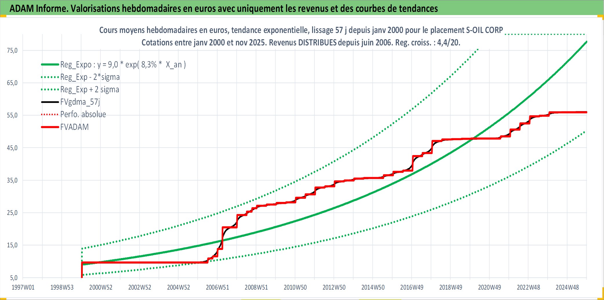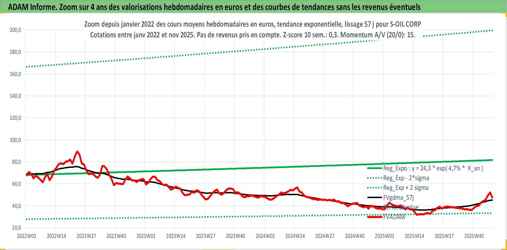 Site dédié aux investisseursPage dédiée sur site financeAnalyse des valorisations hebdomadaires de l'action S-OIL CORP. Cet actif est cote en KRW. Les valorisations sont en contrevaleur EURO et couvrent les semaines 2000W02 a 2025W48. Les revenus de cet actif financier sont pris en compte depuis la semaine 2006W26. La note globale ESG de cet actif est estimee a 4.0 (apres rebasage entre 0 et 20).