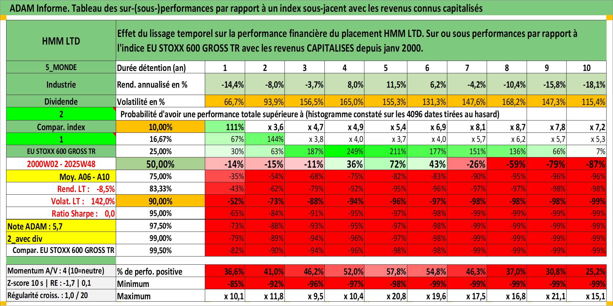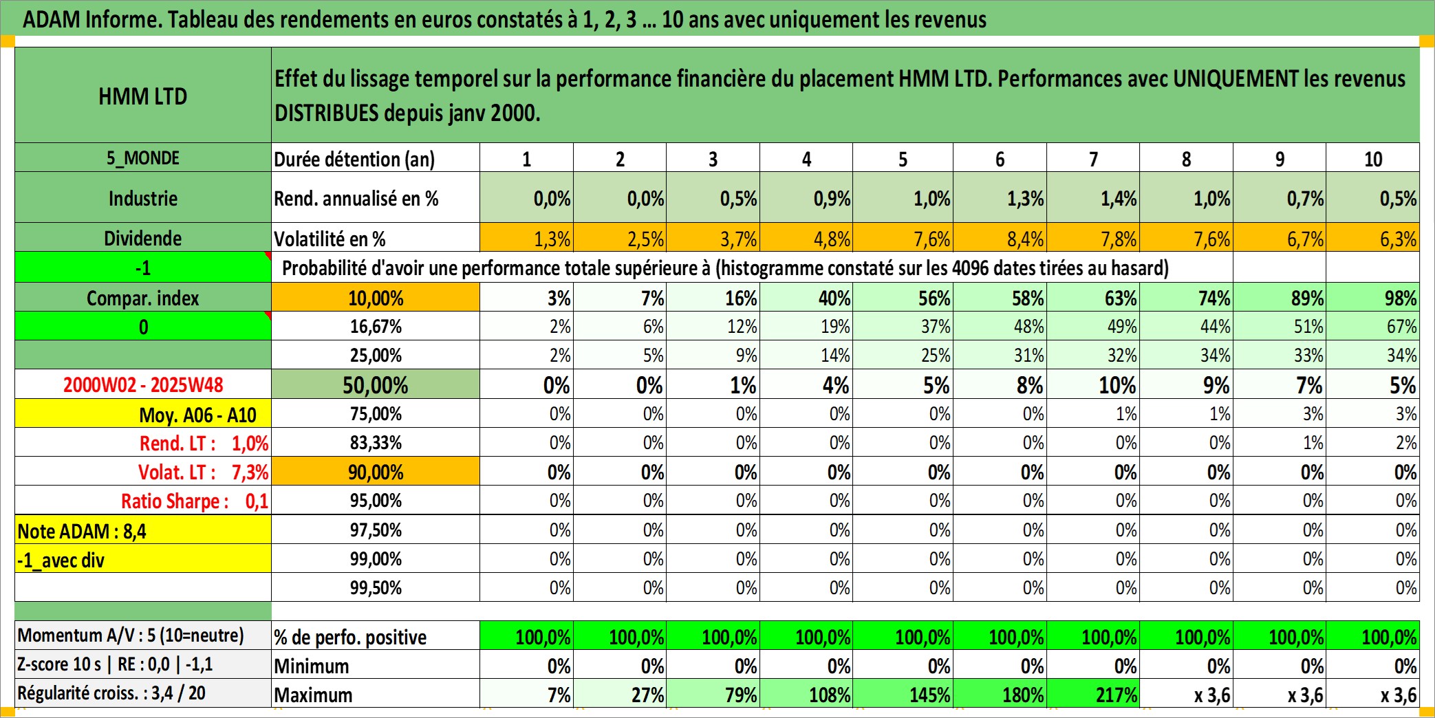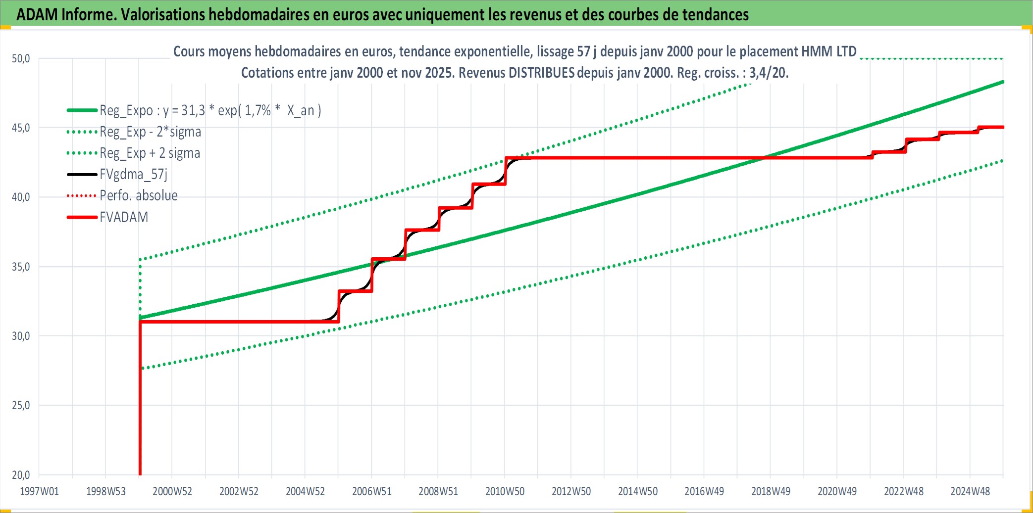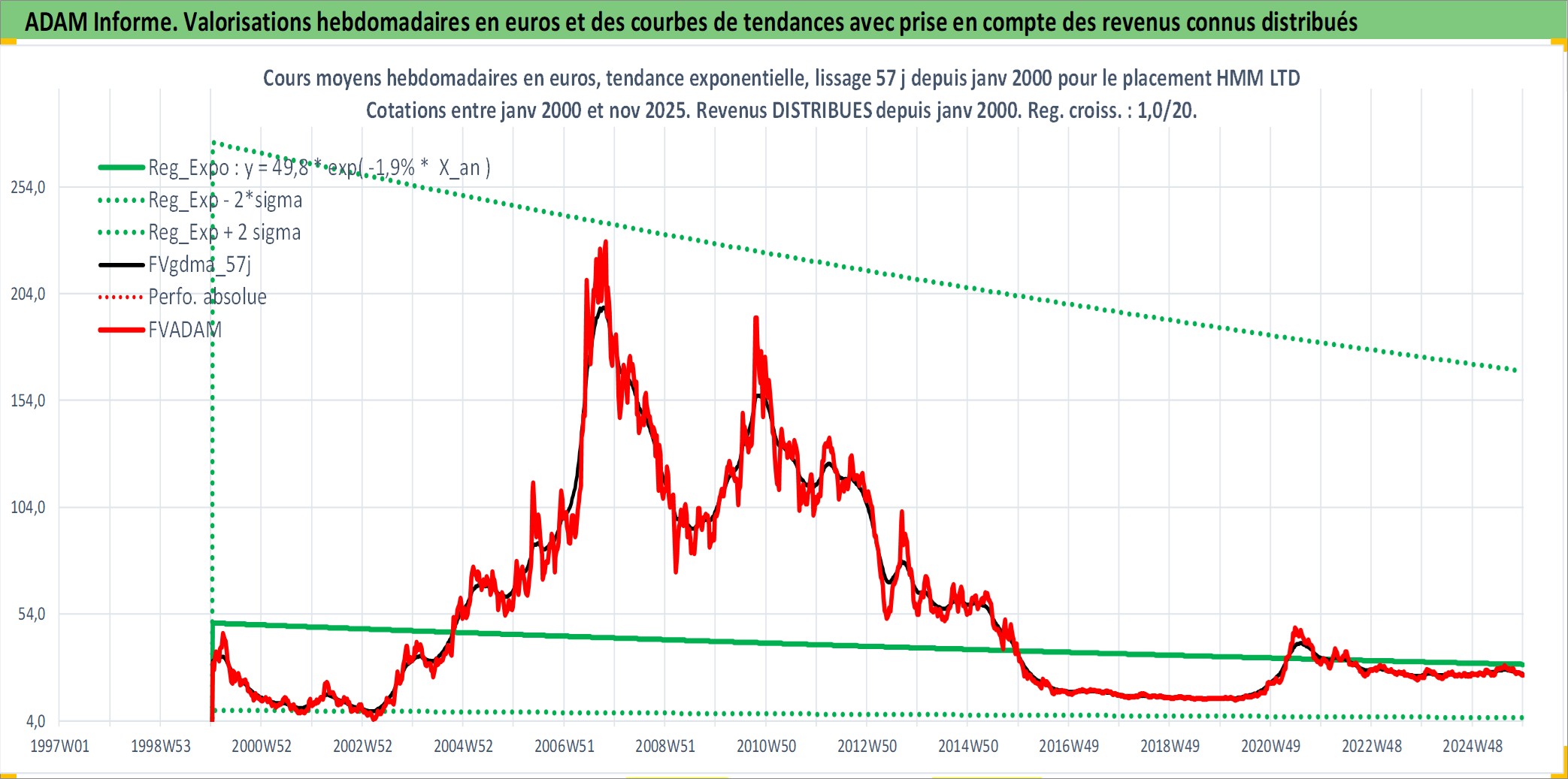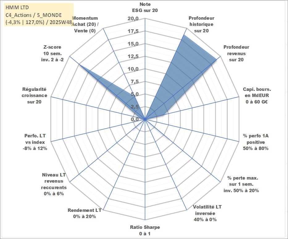 Site dédié aux investisseursPage dédiée sur site financeAnalyse des valorisations hebdomadaires de l'action HMM LTD. Cet actif est cote en KRW. Les valorisations sont en contrevaleur EURO et couvrent les semaines 2000W02 a 2025W48. Les revenus de cet actif financier sont pris en compte depuis la semaine 2000W01. La note ESG de cet actif n'est pas connue.