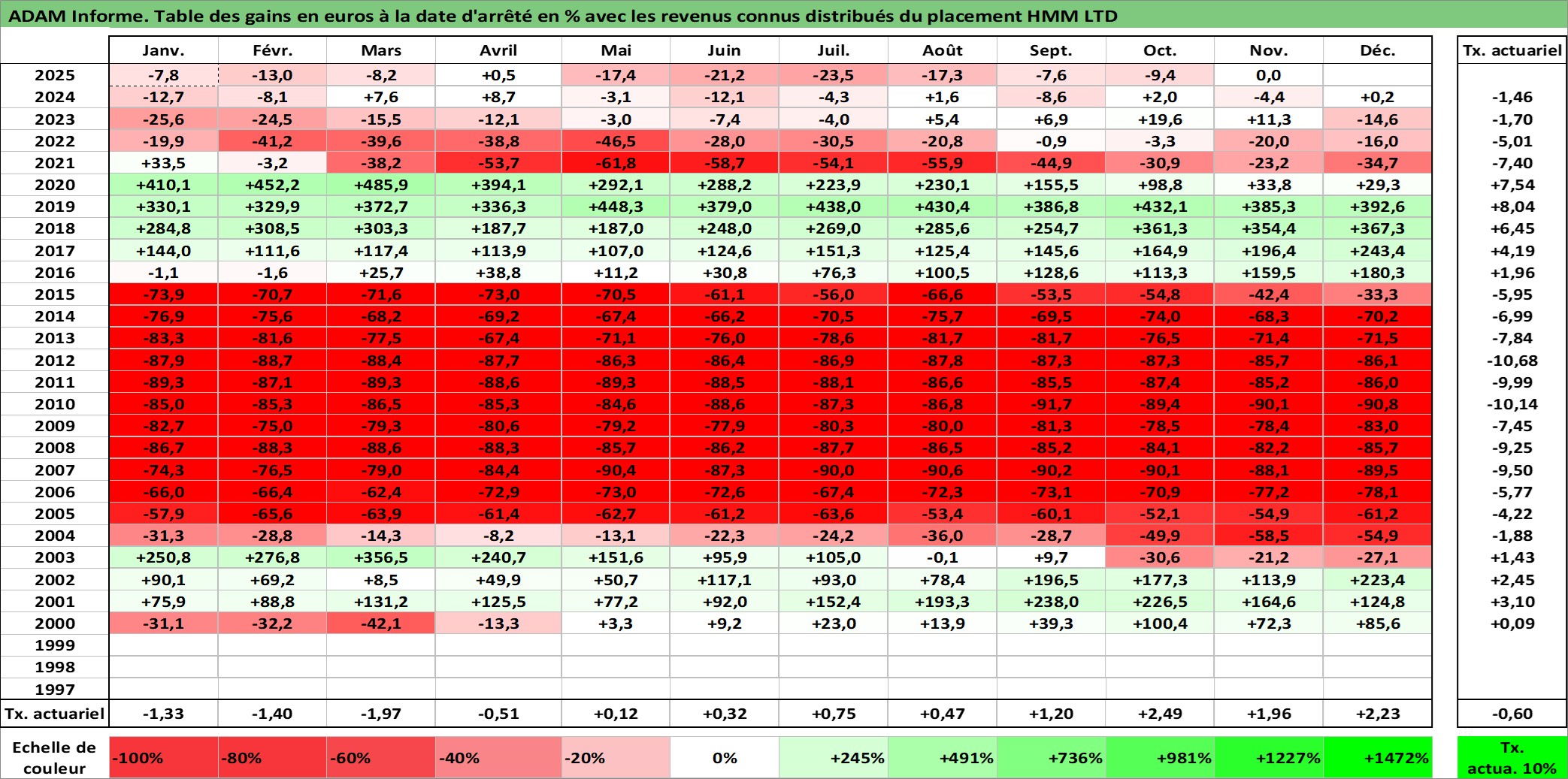 Dernière perfo 10 ans en %
