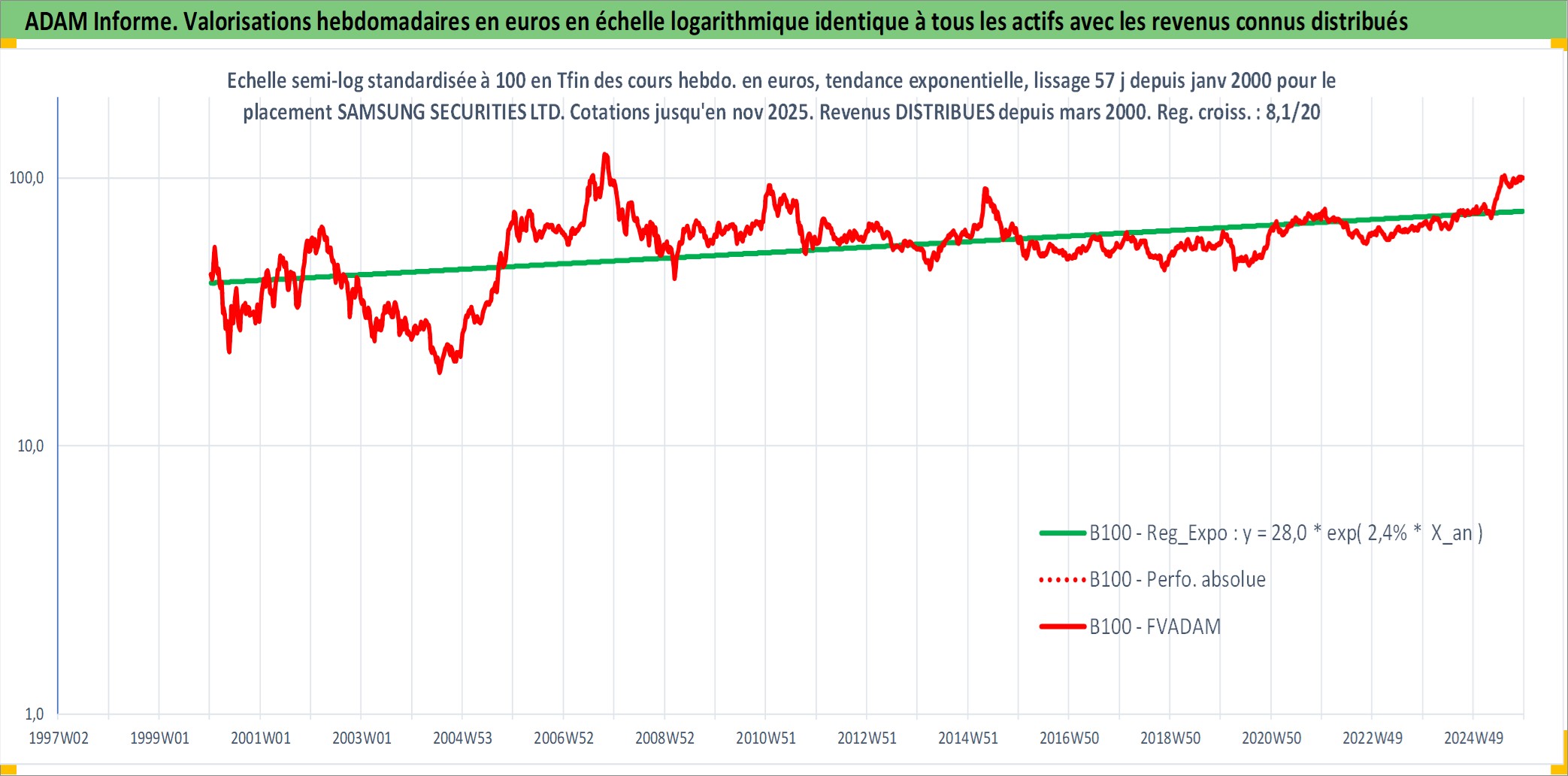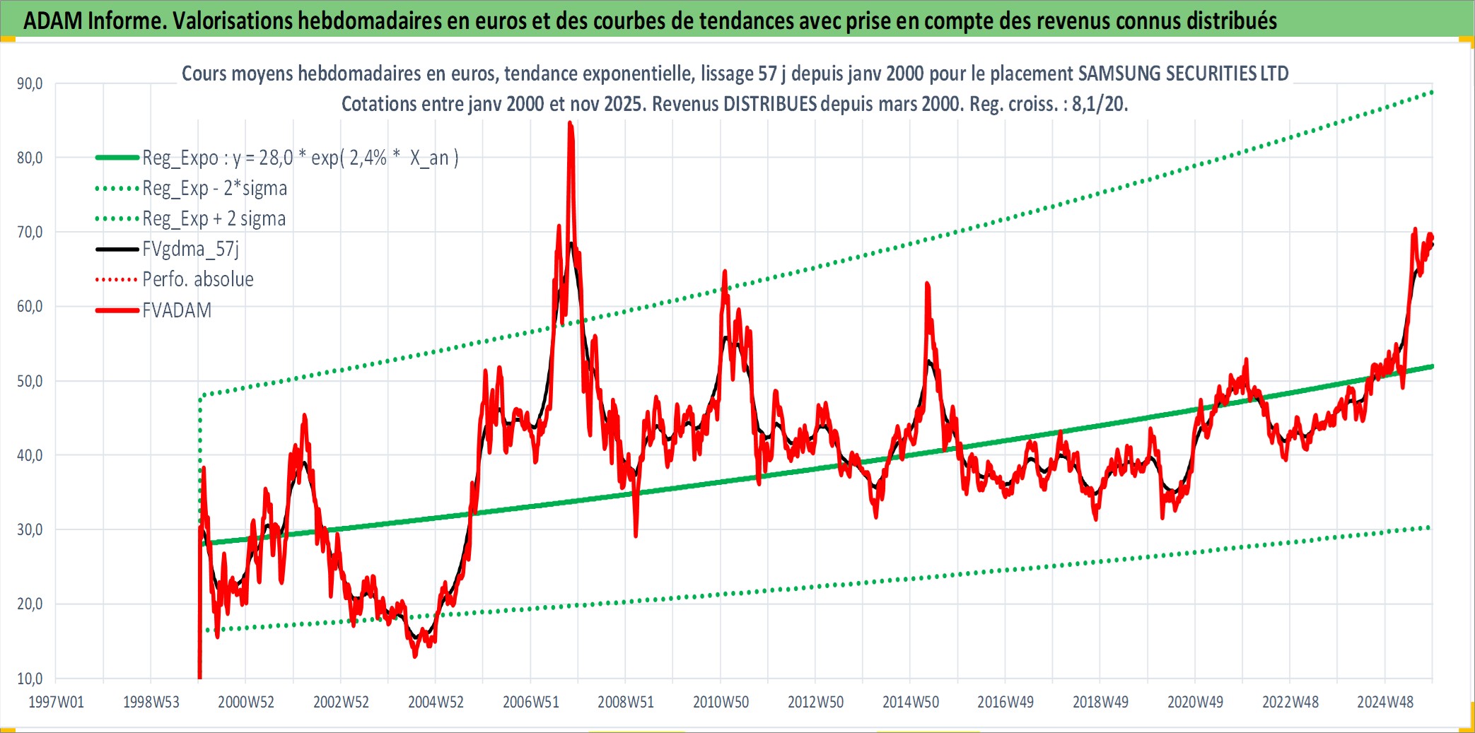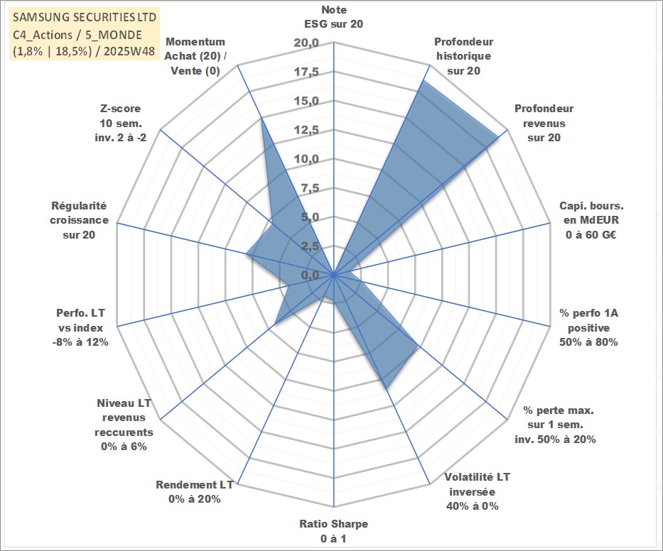 Site dédié aux investisseursPage dédiée sur site financeAnalyse des valorisations hebdomadaires de l'action SAMSUNG SECURITIES LTD. Cet actif est cote en KRW. Les valorisations sont en contrevaleur EURO et couvrent les semaines 2000W02 a 2025W48. Les revenus de cet actif financier sont pris en compte depuis la semaine 2000W13. La note ESG de cet actif n'est pas connue.