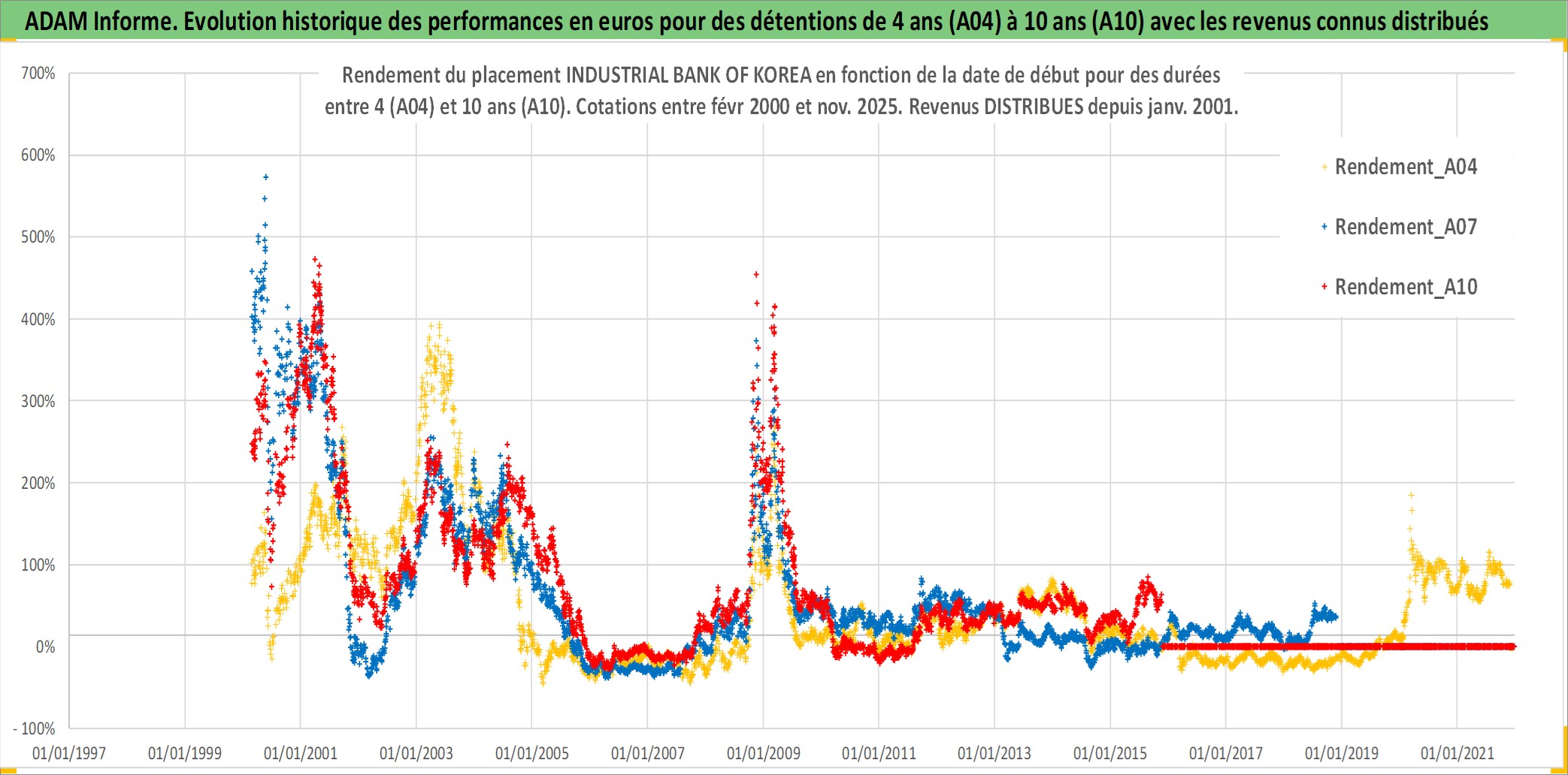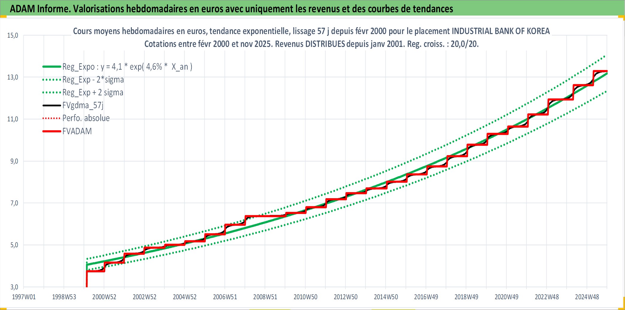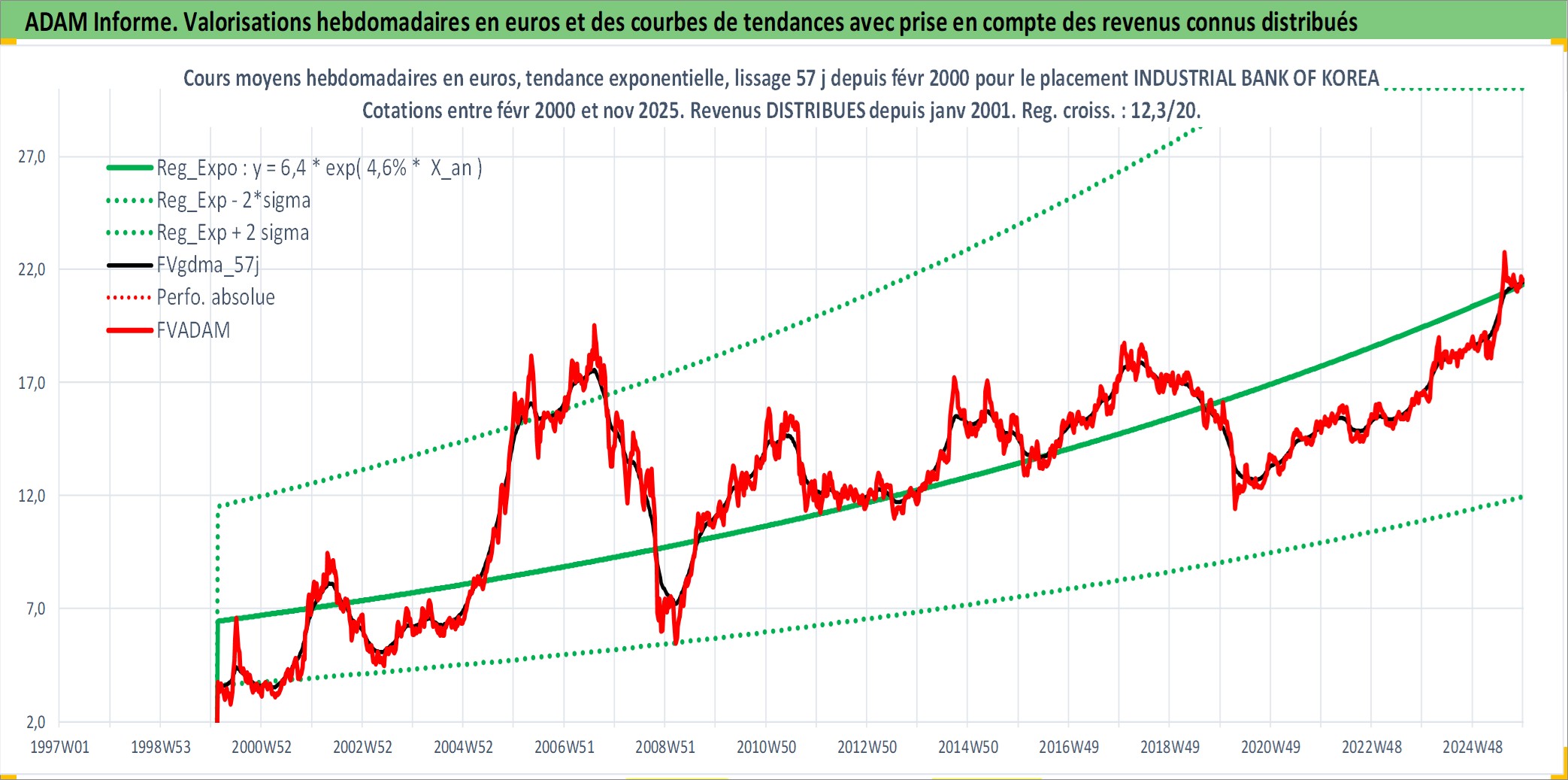Site dédié aux investisseursPage dédiée sur site financeAnalyse des valorisations hebdomadaires de l'action INDUSTRIAL BANK OF KOREA. Cet actif est cote en KRW. Les valorisations sont en contrevaleur EURO et couvrent les semaines 2000W07 a 2025W48. Les revenus de cet actif financier sont pris en compte depuis la semaine 2001W01. La note globale ESG de cet actif est estimee a 6.0 (apres rebasage entre 0 et 20).
