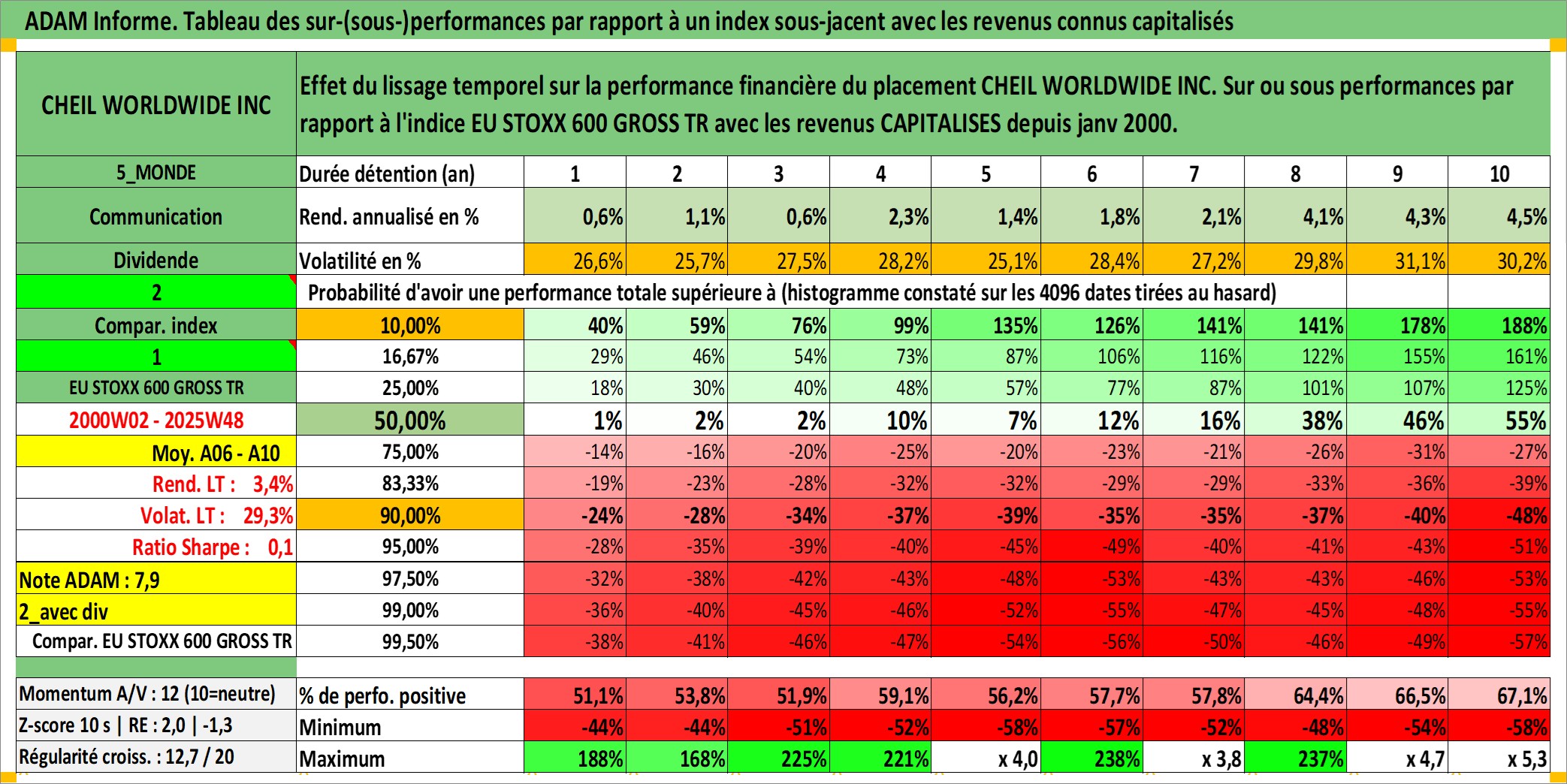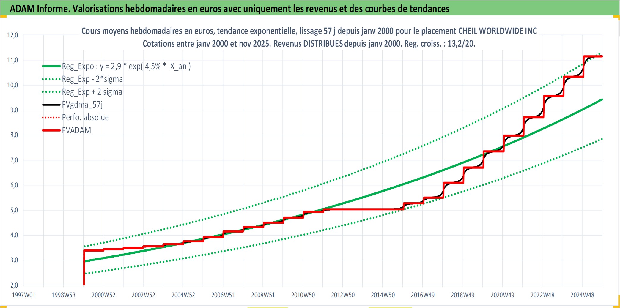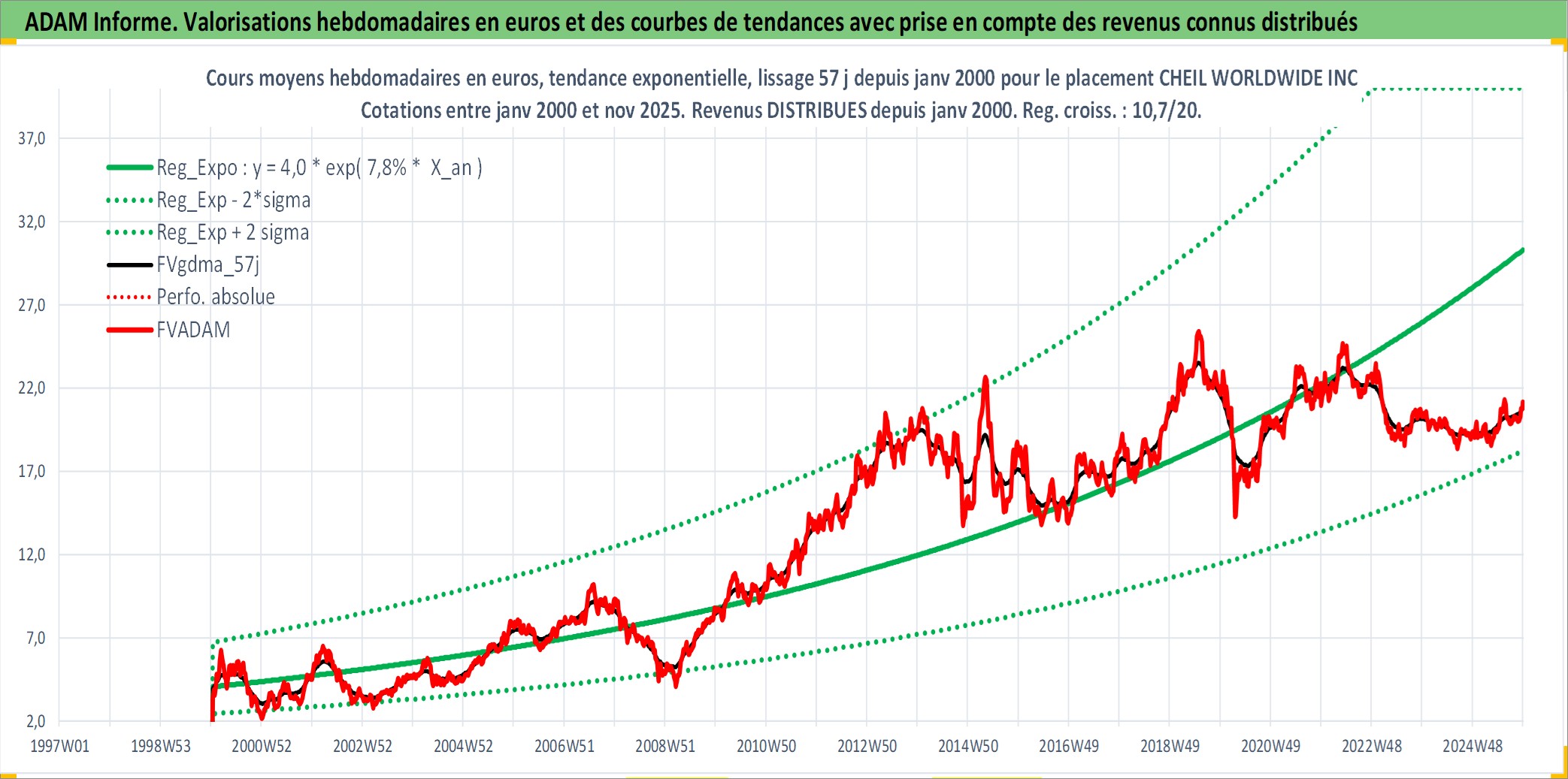 Site dédié aux investisseursPage dédiée sur site financeAnalyse des valorisations hebdomadaires de l'action CHEIL WORLDWIDE INC. Cet actif est cote en KRW. Les valorisations sont en contrevaleur EURO et couvrent les semaines 2000W02 a 2025W48. Les revenus de cet actif financier sont pris en compte depuis la semaine 2000W01. La note ESG de cet actif n'est pas connue.