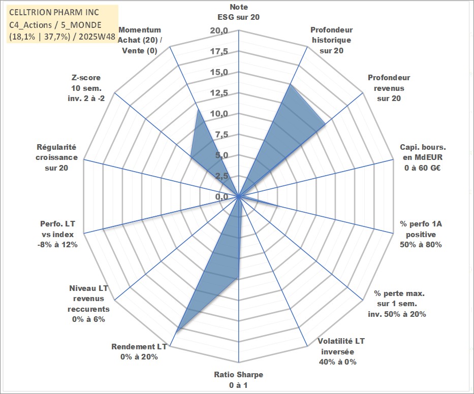 Site dédié aux investisseursPage dédiée sur site financeAnalyse des valorisations hebdomadaires de l'action CELLTRION PHARM INC. Cet actif est cote en KRW. Les valorisations sont en contrevaleur EURO et couvrent les semaines 2004W48 a 2025W48. Les revenus de cet actif financier sont pris en compte depuis la semaine 2006W52. La note ESG de cet actif n'est pas connue.