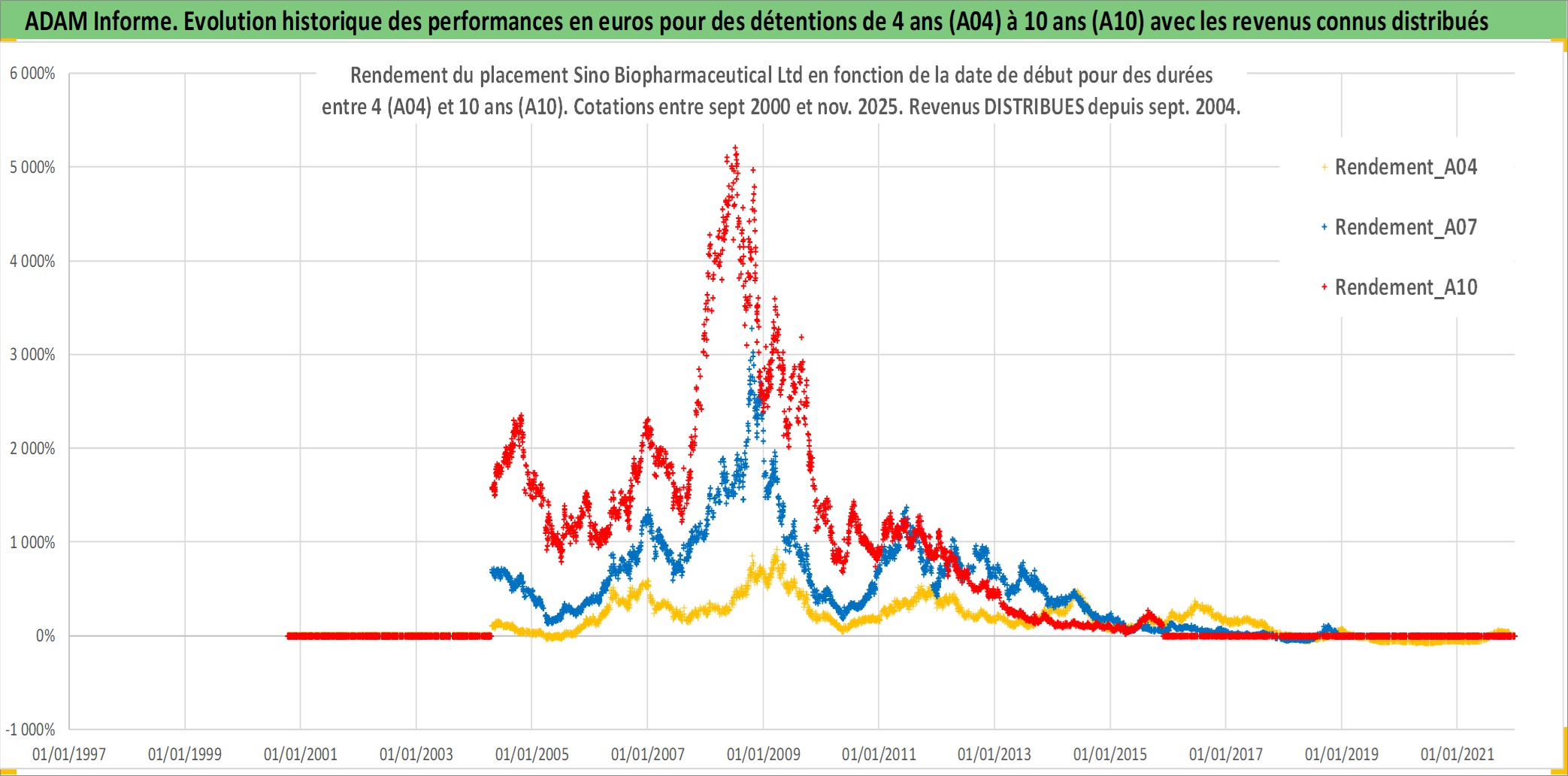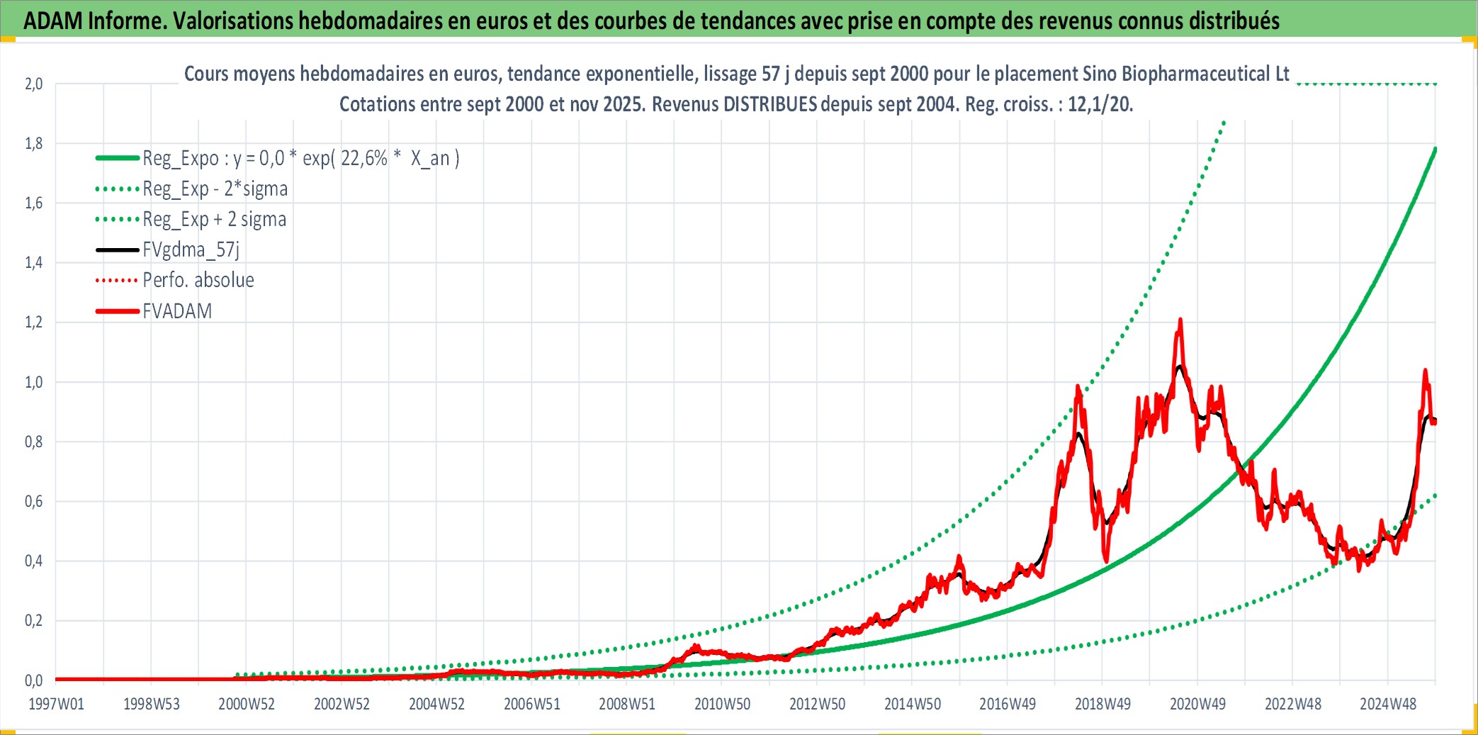 Site dédié aux investisseursPage dédiée sur site financeAnalyse des valorisations hebdomadaires de l'action Sino Biopharmaceutical Ltd. Cet actif est cote en HKD. Les valorisations sont en contrevaleur EURO et couvrent les semaines 2000W39 a 2025W48. Les revenus de cet actif financier sont pris en compte depuis la semaine 2004W38. La note globale ESG de cet actif est estimee a 2.0 (apres rebasage entre 0 et 20).