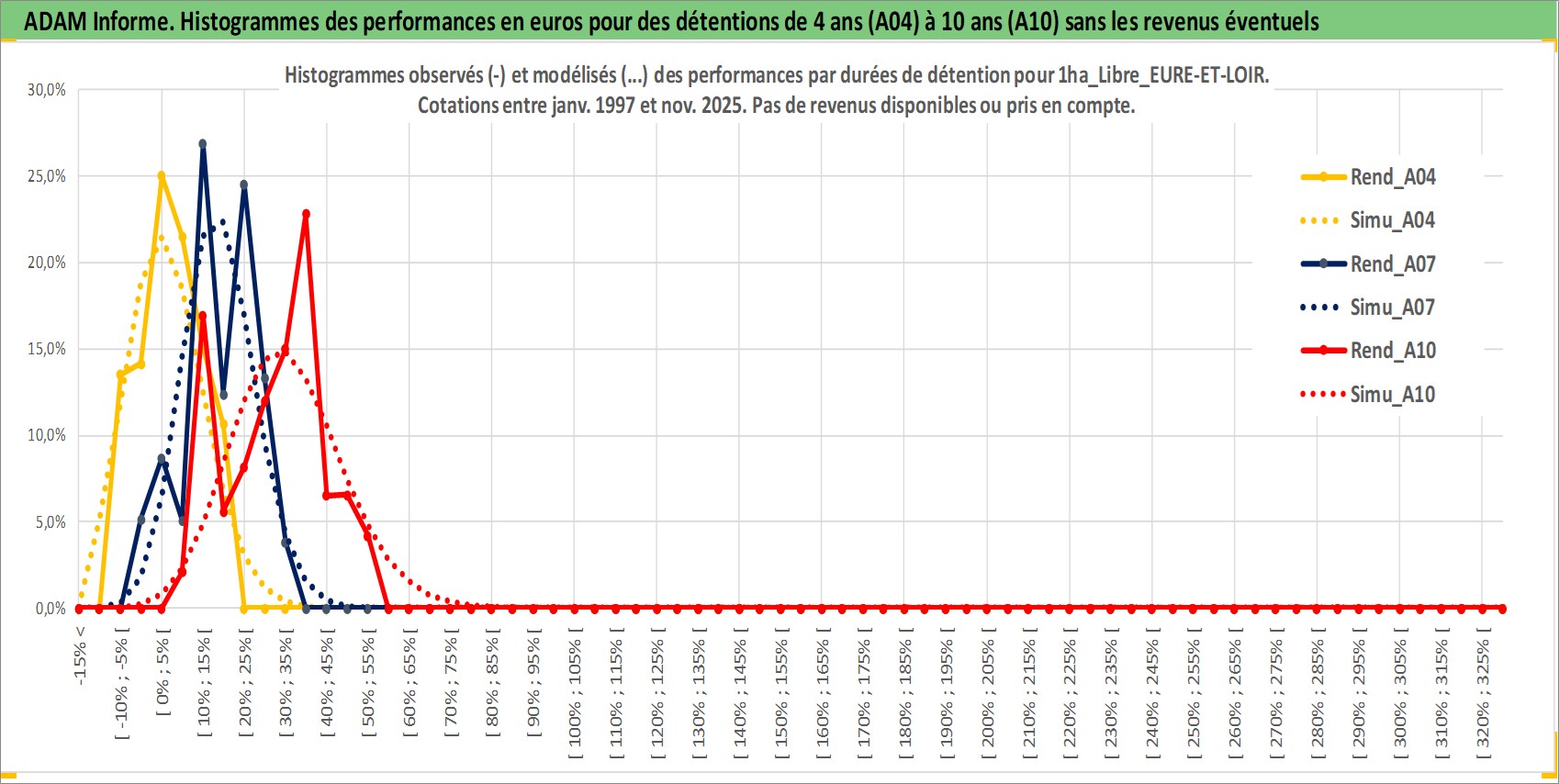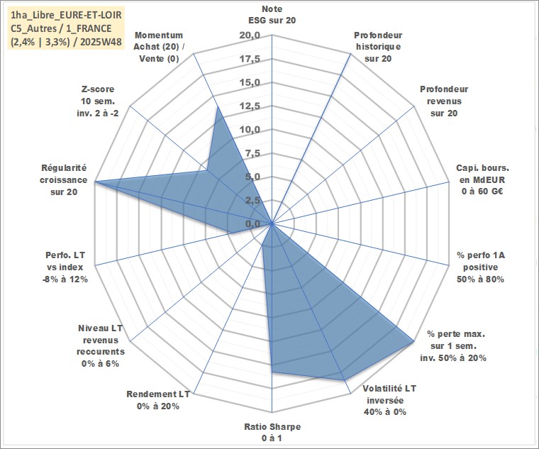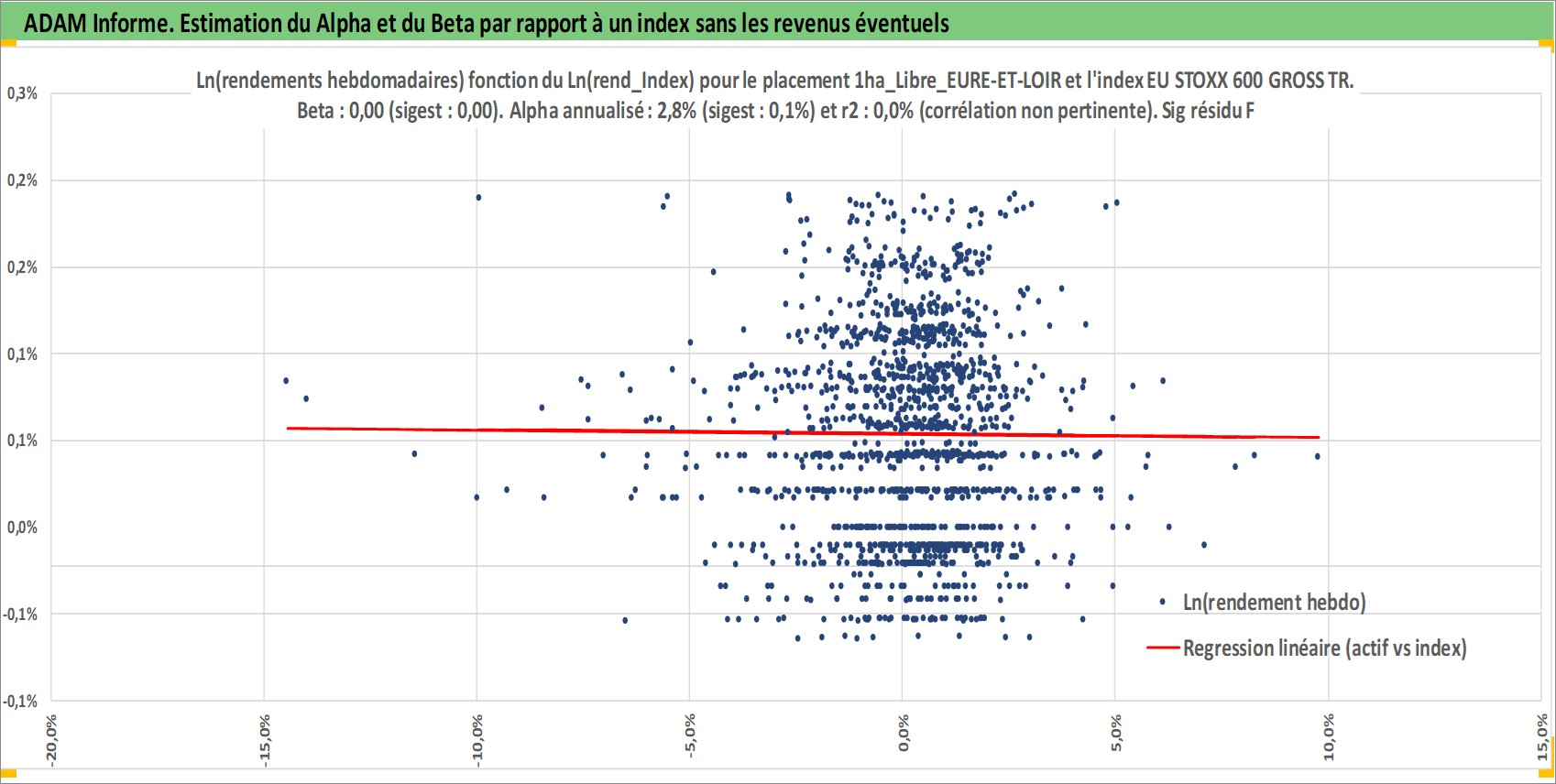 Site dédié aux investisseursPage dédiée sur site financeAnalyse des valorisations hebdomadaires de l'actif 1ha_Libre_EURE-ET-LOIR. Cet actif est cote en EUR. Les valorisations couvrent les semaines 1997W01 a 2025W48. Les fermages de ce bien foncier sont pris egaux a 2,5% annuels de la valeur venale du bien.