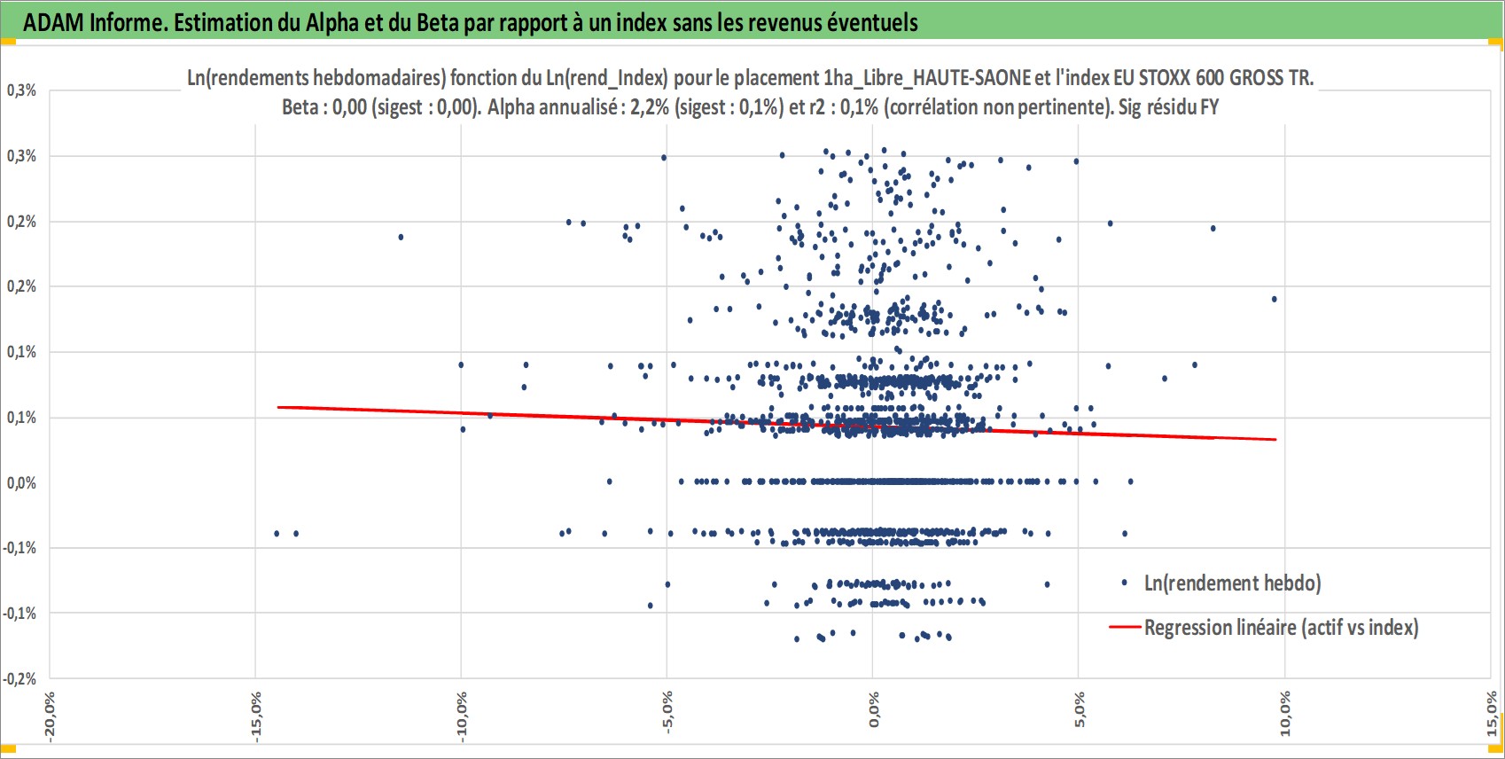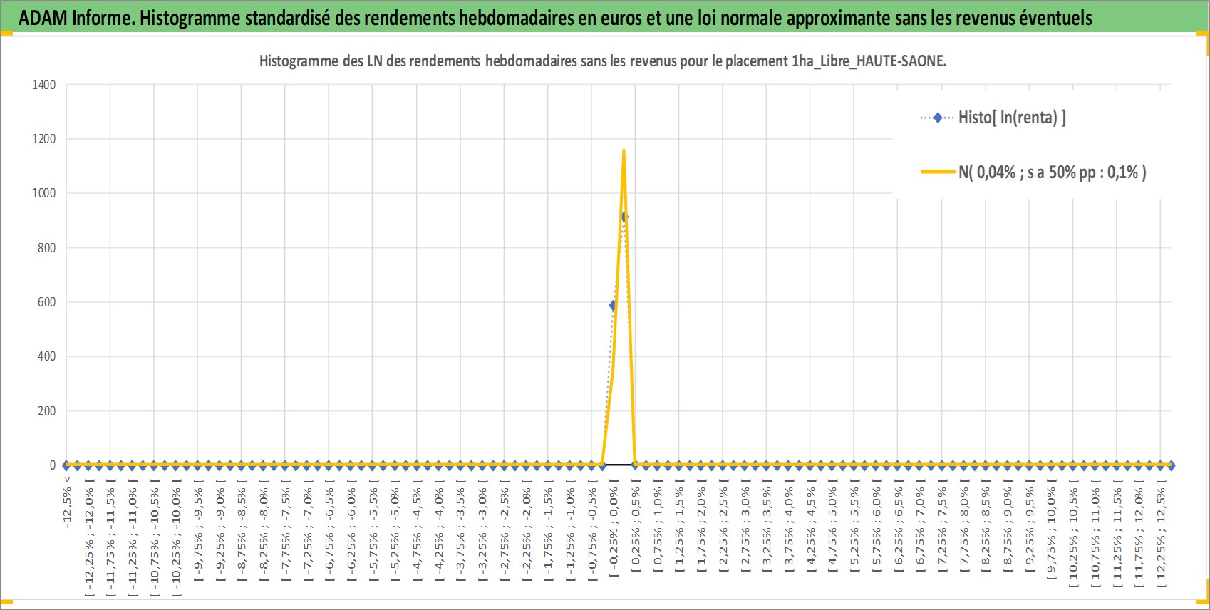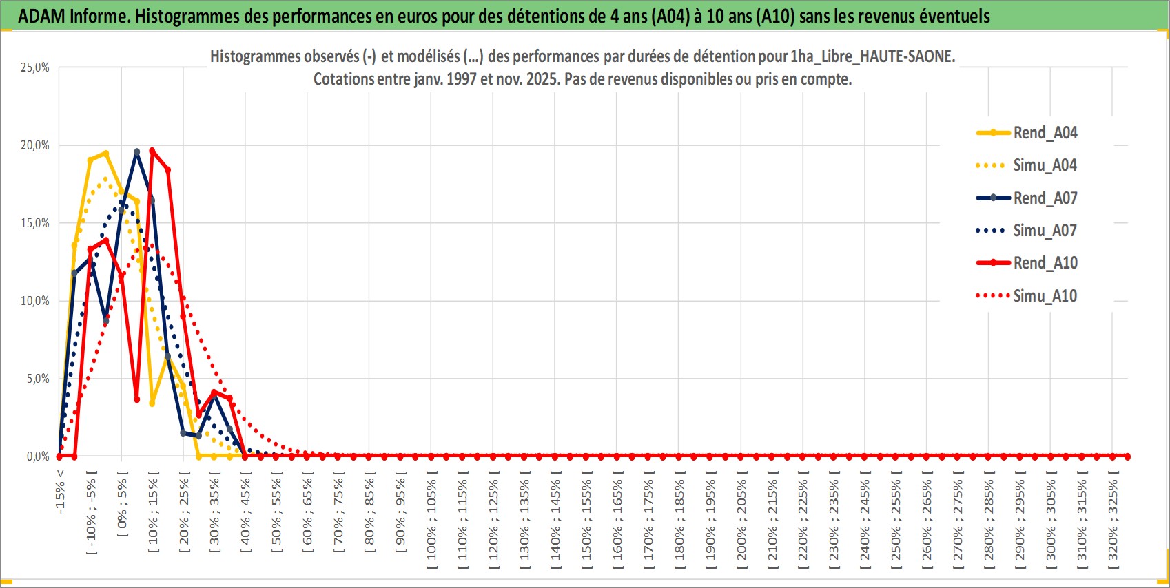 Site dédié aux investisseursPage dédiée sur site financeAnalyse des valorisations hebdomadaires de l'actif 1ha_Libre_HAUTE-SAONE. Cet actif est cote en EUR. Les valorisations couvrent les semaines 1997W01 a 2025W48. Les fermages de ce bien foncier sont pris egaux a 2,5% annuels de la valeur venale du bien.