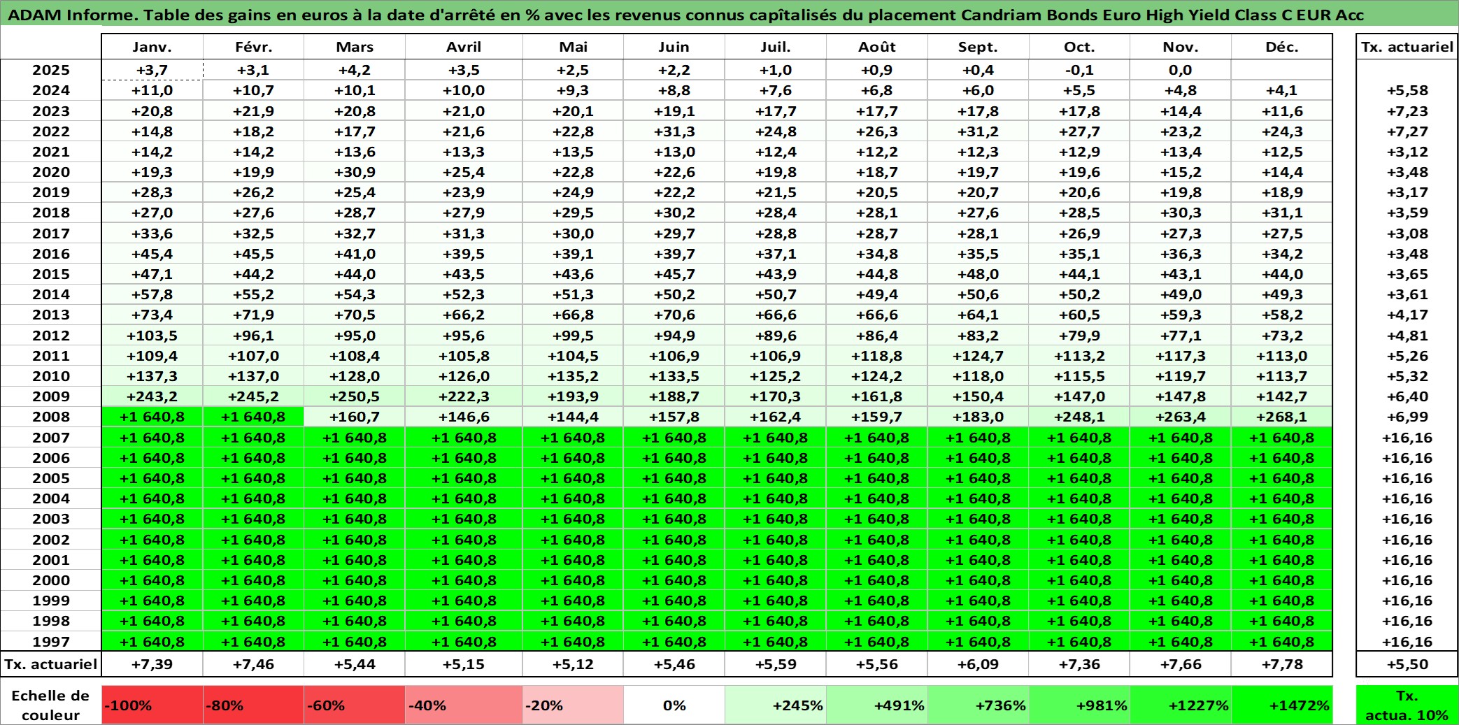 Site dédié aux investisseursPage dédiée sur site financeAnalyse des valorisations hebdomadaires du fonds Candriam Bonds Euro High Yield Class C EUR Acc. Cet actif est cote en EUR. Les valorisations couvrent les semaines 2008W12 a 2025W48. Les revenus de cet actif financier sont pris en compte depuis la semaine 2008W12. La note ESG de cet actif n'est pas connue.