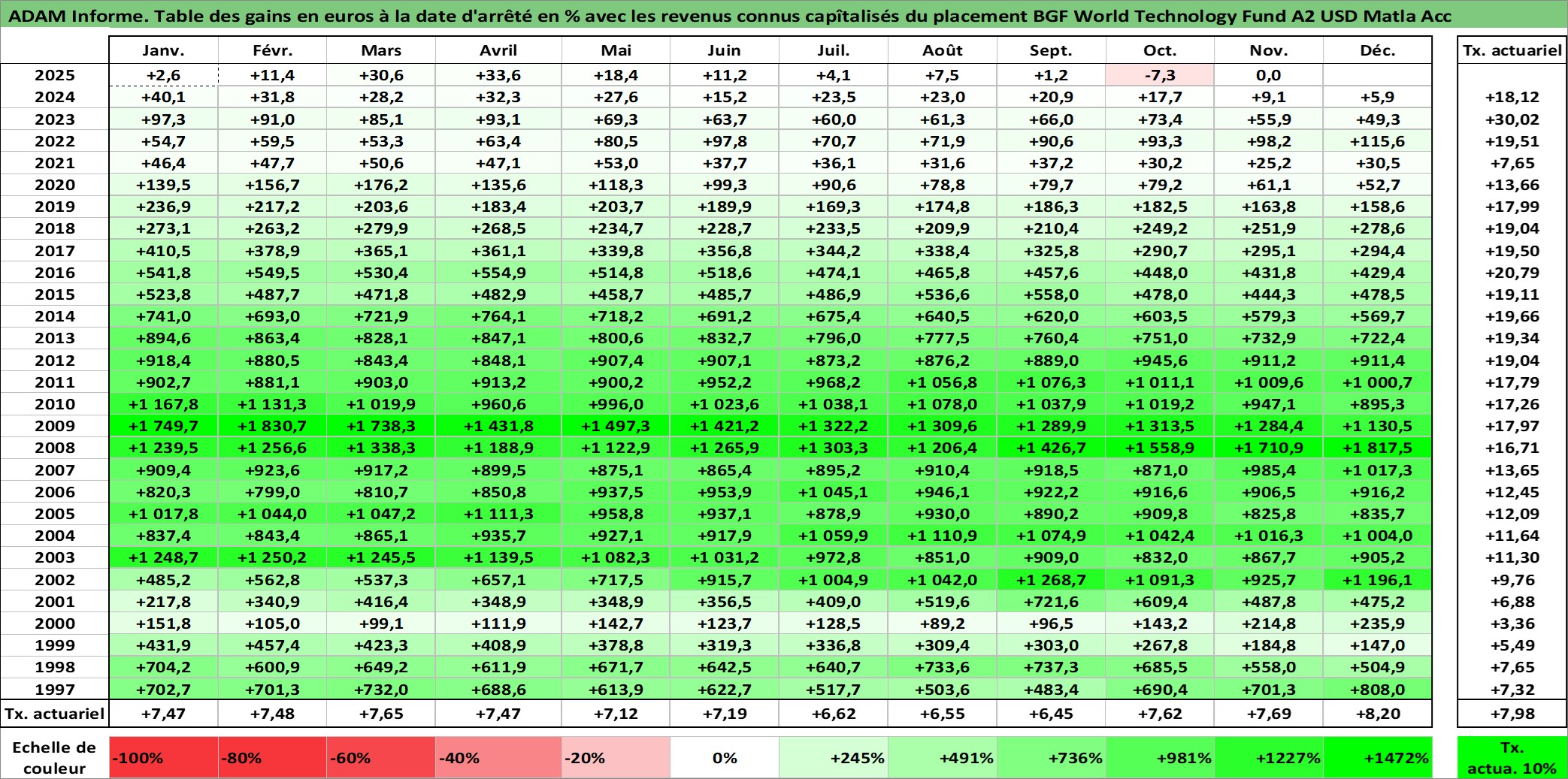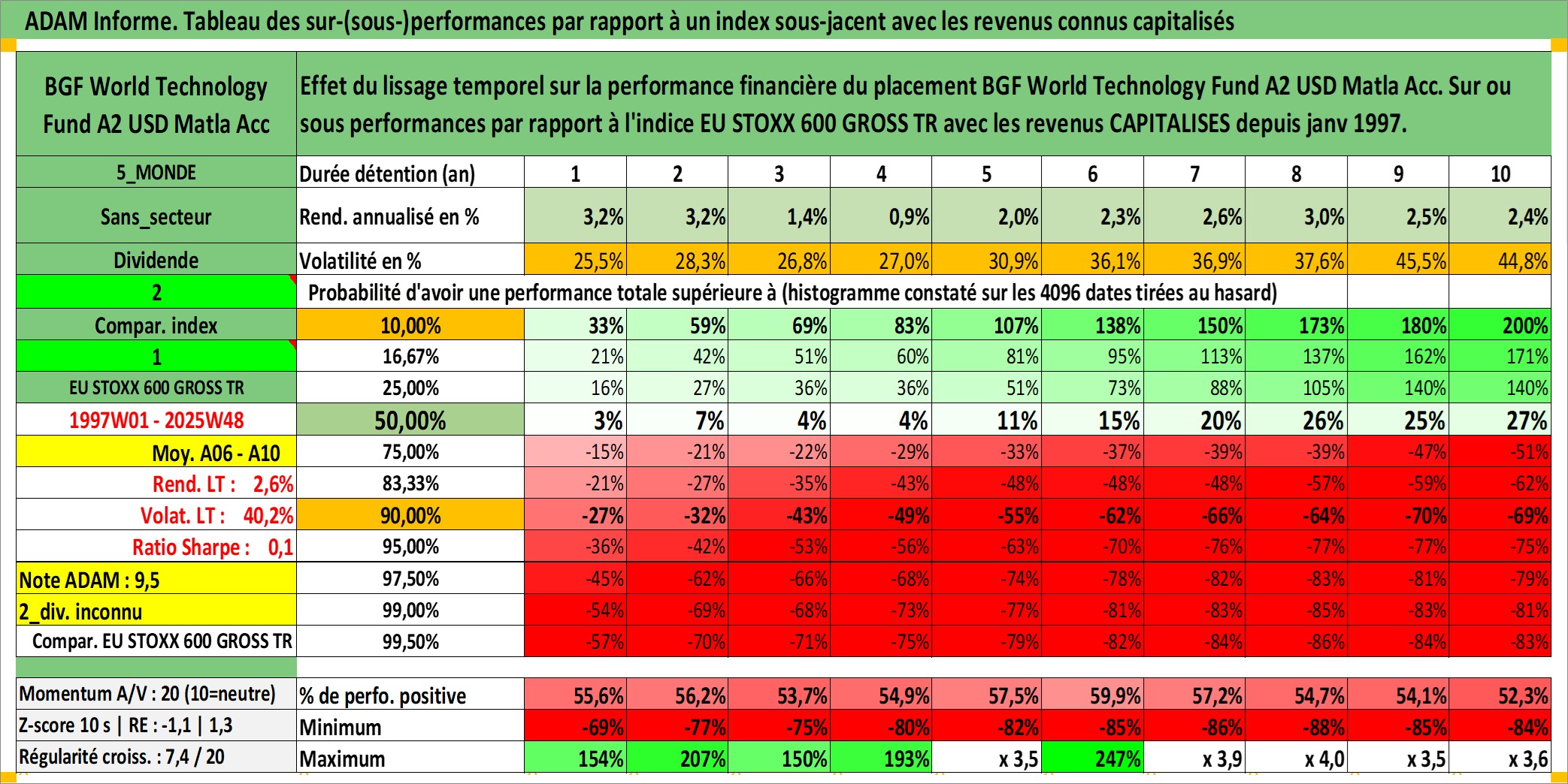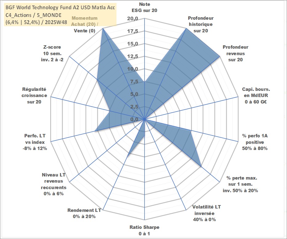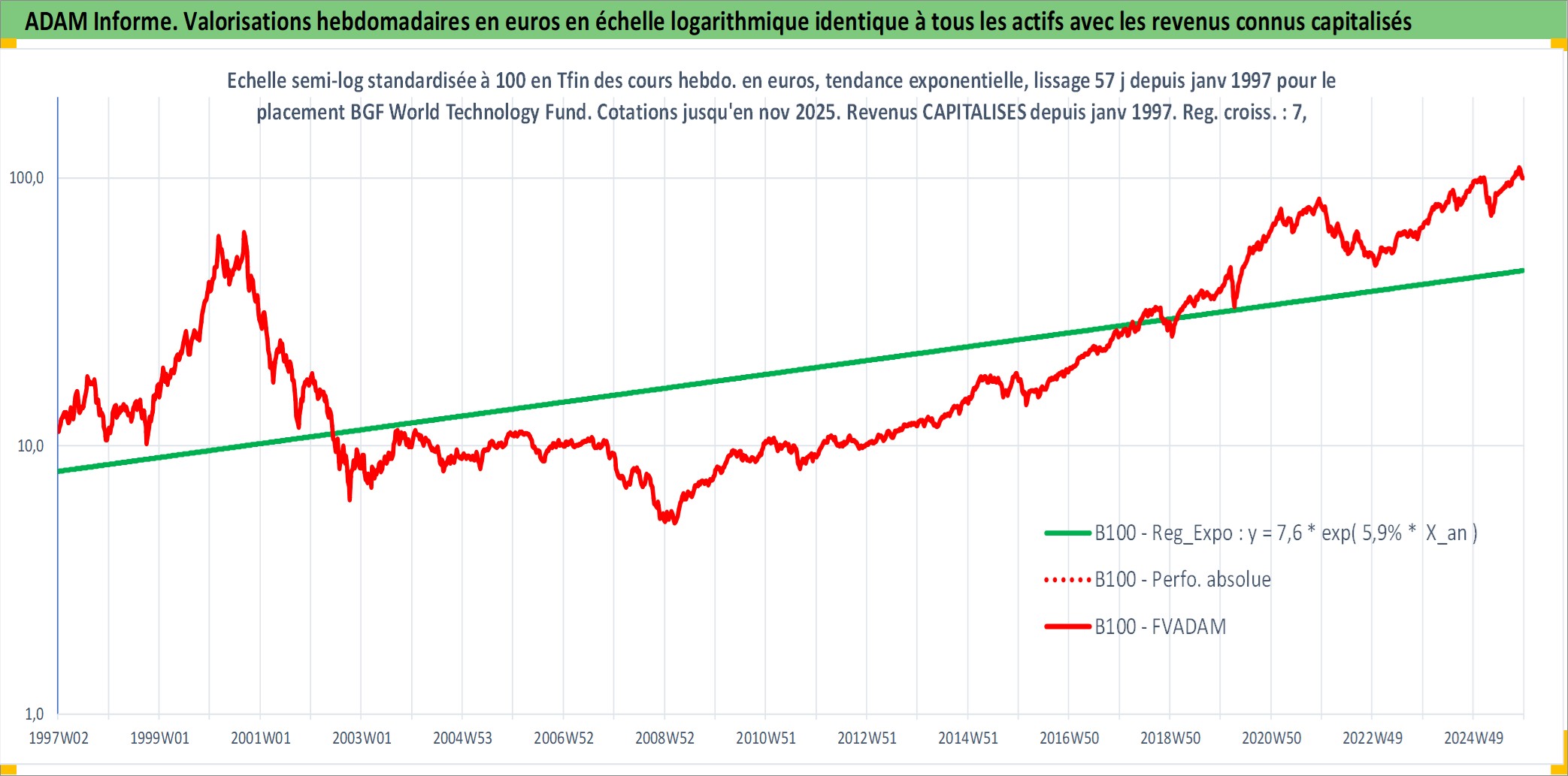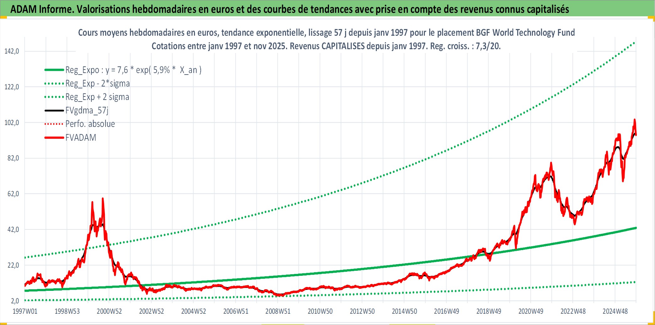 Site dédié aux investisseursPage dédiée sur site financeAnalyse des valorisations hebdomadaires du fonds BGF World Technology Fund A2 USD Matla Acc. Cet actif est cote en USD. Les valorisations sont en contrevaleur EURO et couvrent les semaines 1997W01 a 2025W48. Les revenus de cet actif financier sont pris en compte depuis la semaine 1997W01. La note globale ESG de cet actif est estimee a 7.2 (apres rebasage entre 0 et 20).