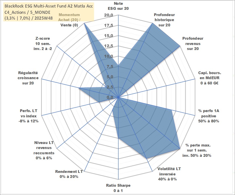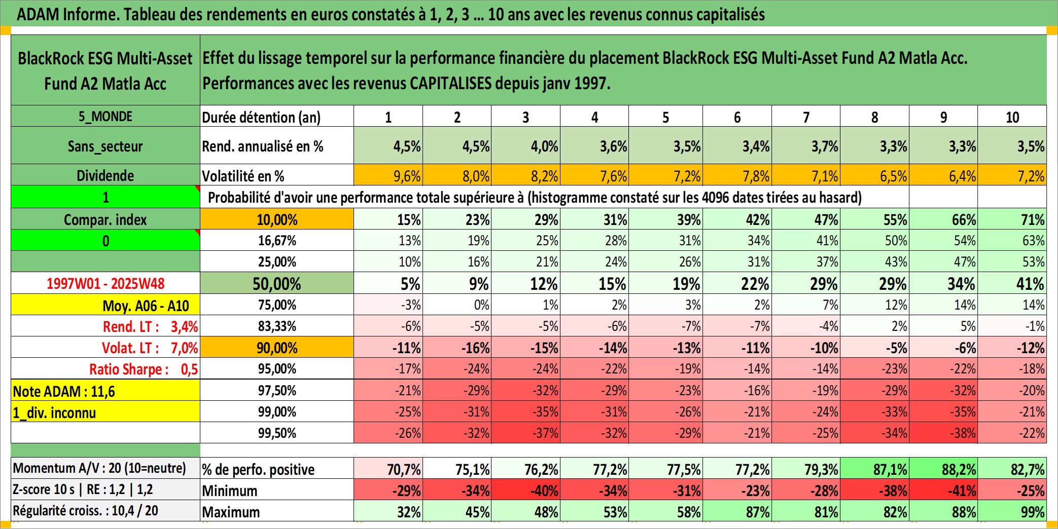 Site dédié aux investisseursPage dédiée sur site financeAnalyse des valorisations hebdomadaires du fonds BlackRock ESG Multi-Asset Fund A2 Matla Acc. Cet actif est cote en EUR. Les valorisations couvrent les semaines 1997W01 a 2025W48. Les revenus de cet actif financier sont pris en compte depuis la semaine 1997W01. La note globale ESG de cet actif est estimee a 7.7 (apres rebasage entre 0 et 20).