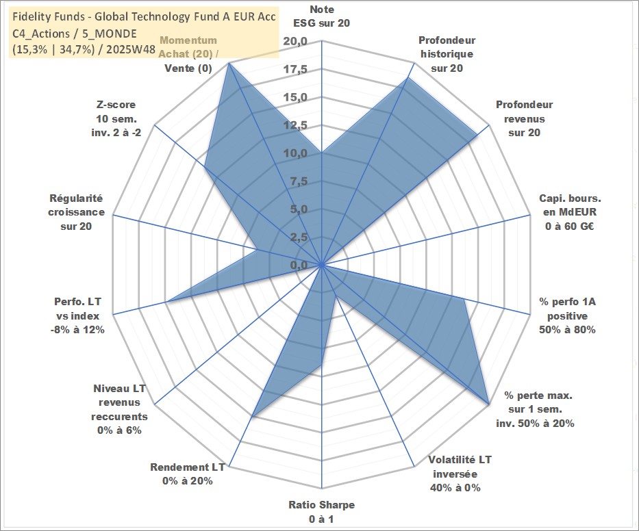 Site dédié aux investisseursPage dédiée sur site financeAnalyse des valorisations hebdomadaires du fonds Fidelity Funds - Global Technology Fund A EUR Acc. Cet actif est cote en EUR. Les valorisations couvrent les semaines 1999W39 a 2025W48. Les revenus de cet actif financier sont pris en compte depuis la semaine 1999W39. La note globale ESG de cet actif est estimee a 10.0 (apres rebasage entre 0 et 20).