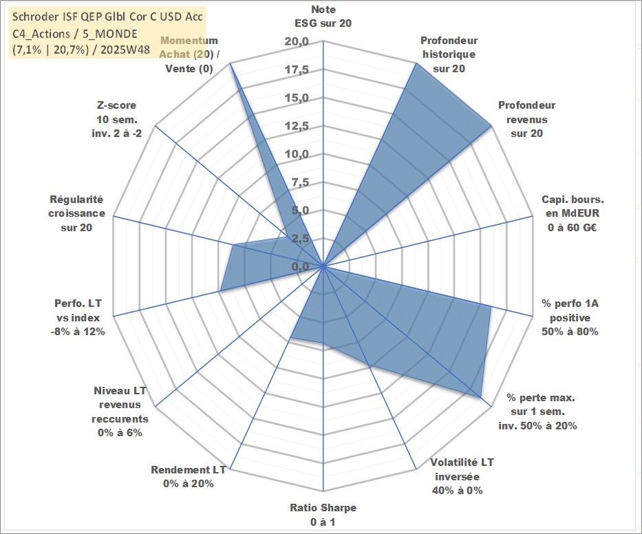 Site dédié aux investisseursPage dédiée sur site financeAnalyse des valorisations hebdomadaires du fonds Schroder ISF QEP Glbl Cor C USD Acc. Cet actif est cote en USD. Les valorisations sont en contrevaleur EURO et couvrent les semaines 1997W01 a 2025W48. Les revenus de cet actif financier sont pris en compte depuis la semaine 1997W01. La note ESG de cet actif n'est pas connue.
