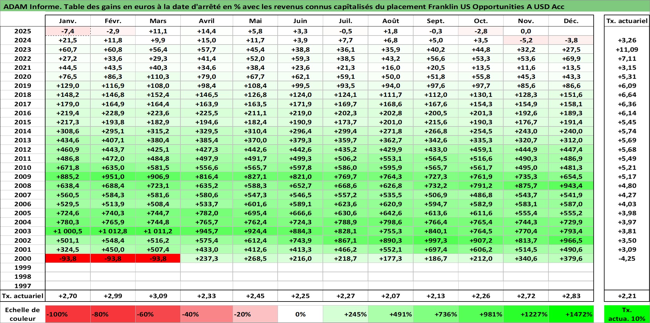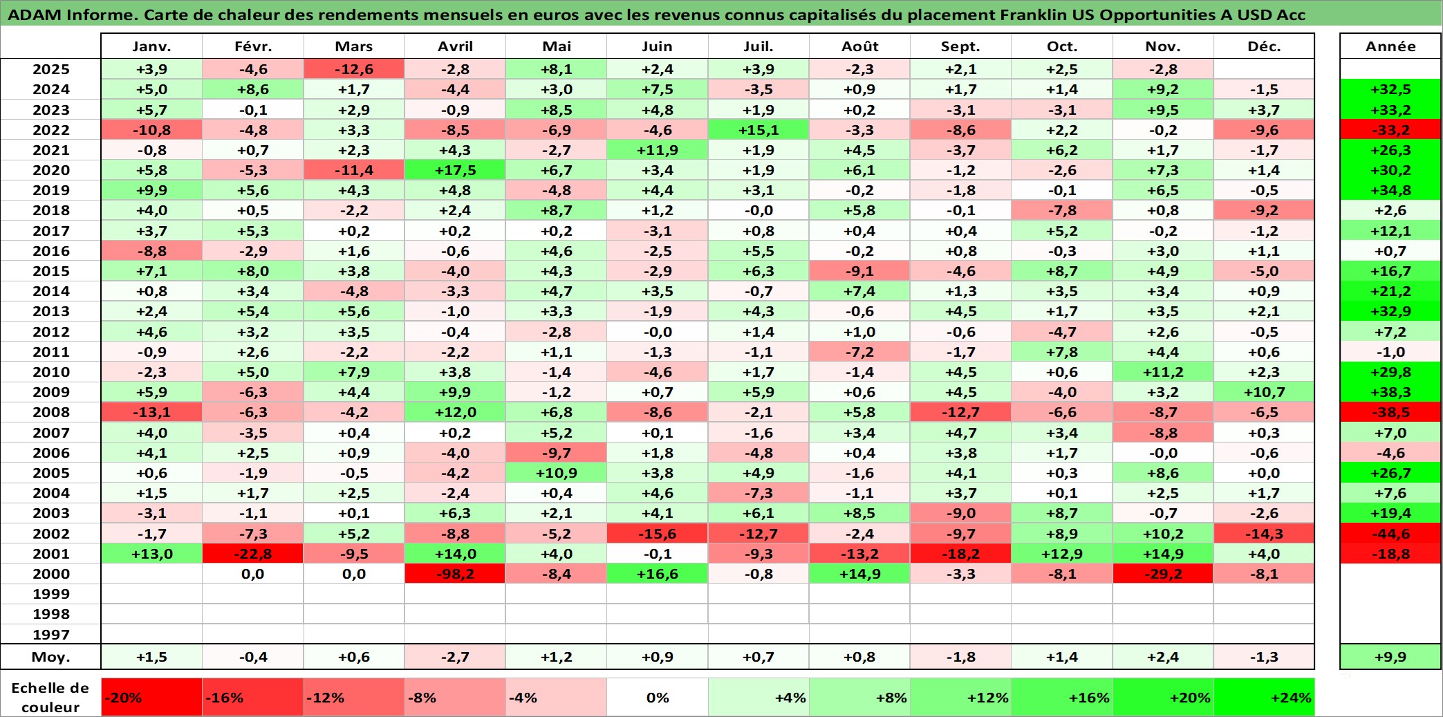 Site dédié aux investisseursPage dédiée sur site financeAnalyse des valorisations hebdomadaires du fonds Franklin US Opportunities A USD Acc. Cet actif est cote en USD. Les valorisations sont en contrevaleur EURO et couvrent les semaines 2000W18 a 2025W48. Les revenus de cet actif financier sont pris en compte depuis la semaine 2000W18. La note ESG de cet actif n'est pas connue.