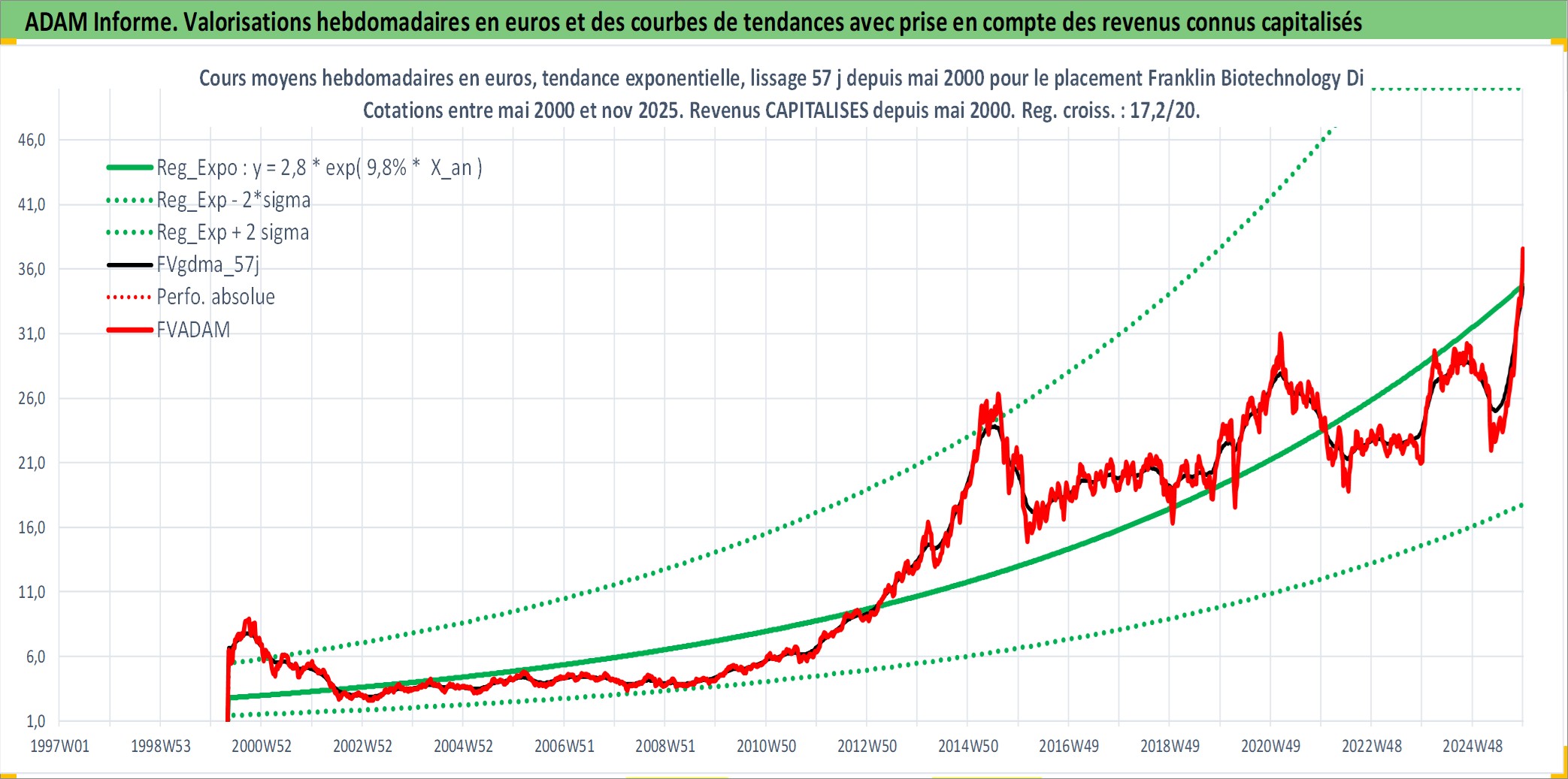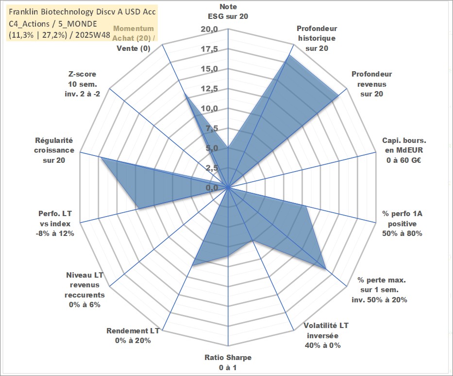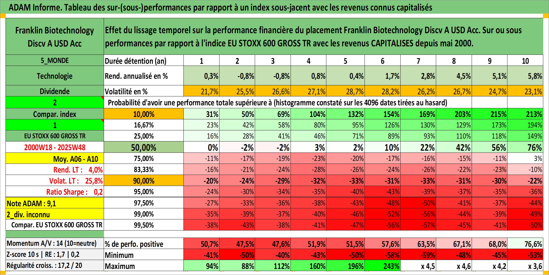 Site dédié aux investisseursPage dédiée sur site financeAnalyse des valorisations hebdomadaires du fonds Franklin Biotechnology Discv A USD Acc. Cet actif est cote en SGD. Les valorisations sont en contrevaleur EURO et couvrent les semaines 2000W18 a 2025W48. Les revenus de cet actif financier sont pris en compte depuis la semaine 2000W18. La note globale ESG de cet actif est estimee a 5.0 (apres rebasage entre 0 et 20).