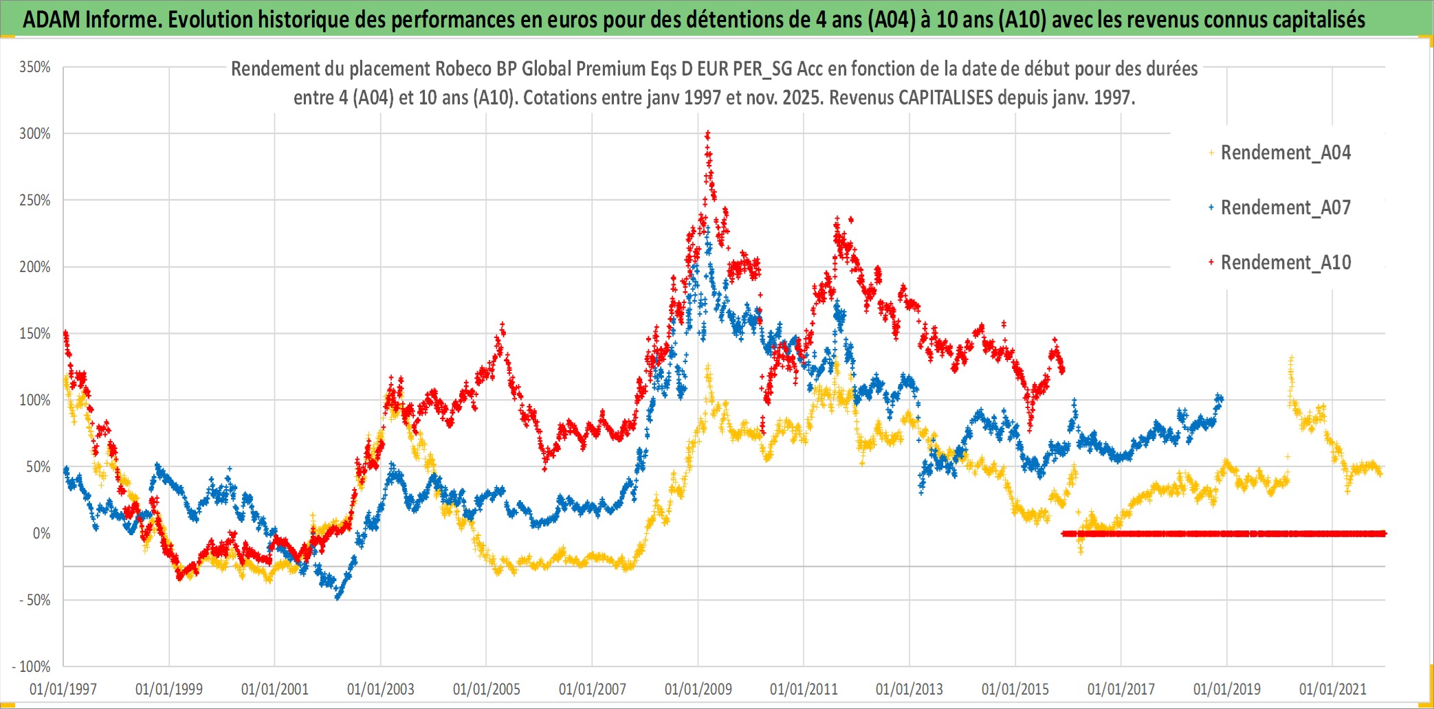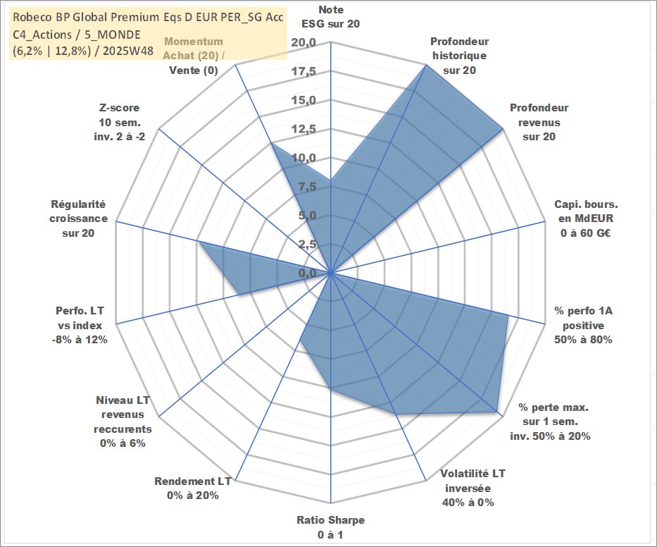 Site dédié aux investisseursPage dédiée sur site financeAnalyse des valorisations hebdomadaires du fonds Robeco BP Global Premium Eqs D EUR PER_SG Acc. Cet actif est cote en EUR. Les valorisations couvrent les semaines 1997W01 a 2025W48. Les revenus de cet actif financier sont pris en compte depuis la semaine 1997W01. La note globale ESG de cet actif est estimee a 8.0 (apres rebasage entre 0 et 20).