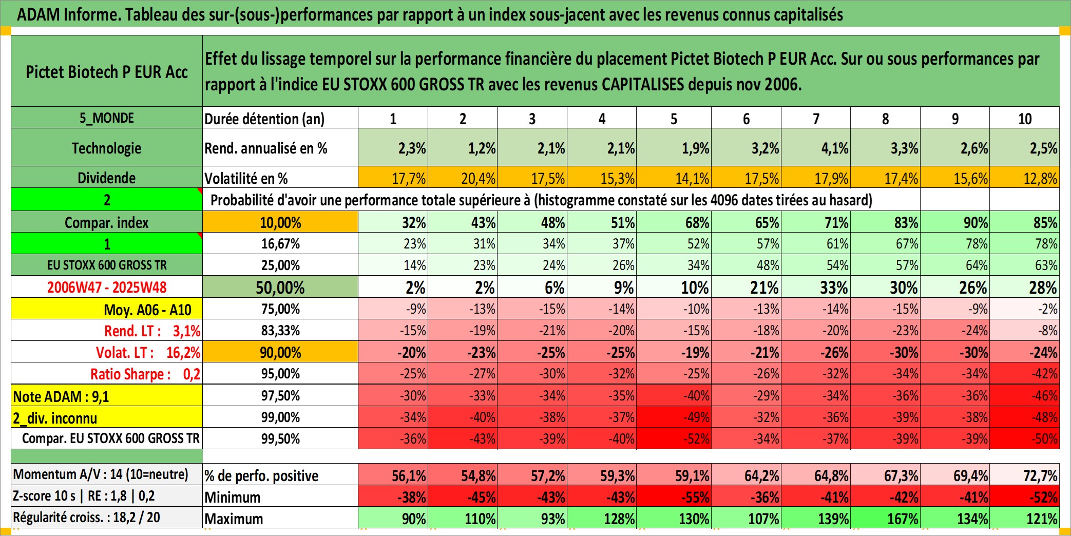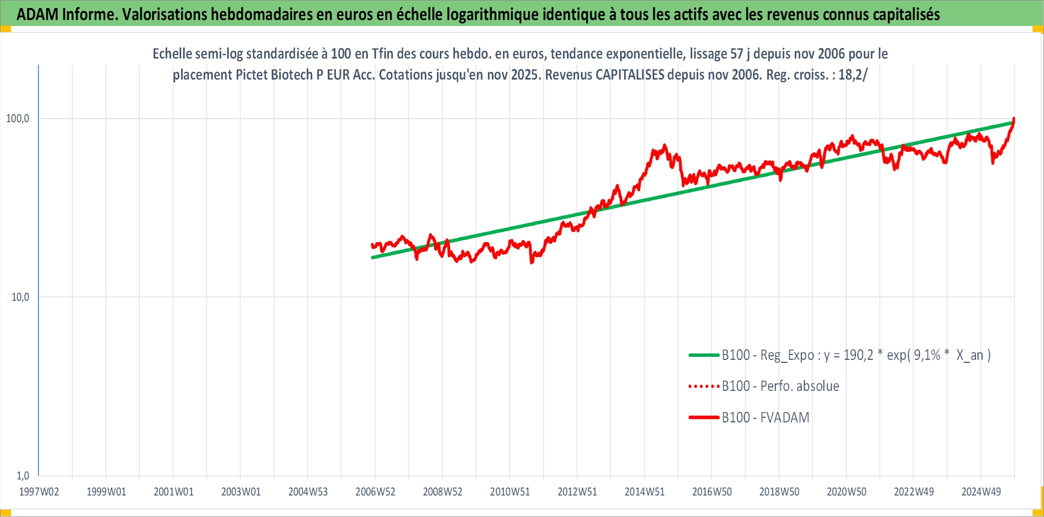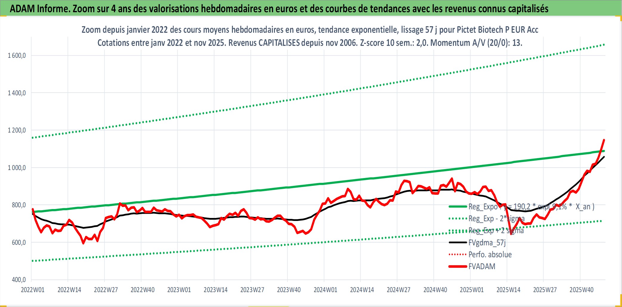 Site dédié aux investisseursPage dédiée sur site financeAnalyse des valorisations hebdomadaires du fonds Pictet Biotech P EUR Acc. Cet actif est cote en EUR. Les valorisations couvrent les semaines 2006W47 a 2025W48. Les revenus de cet actif financier sont pris en compte depuis la semaine 2006W47. La note globale ESG de cet actif est estimee a 5.0 (apres rebasage entre 0 et 20).
