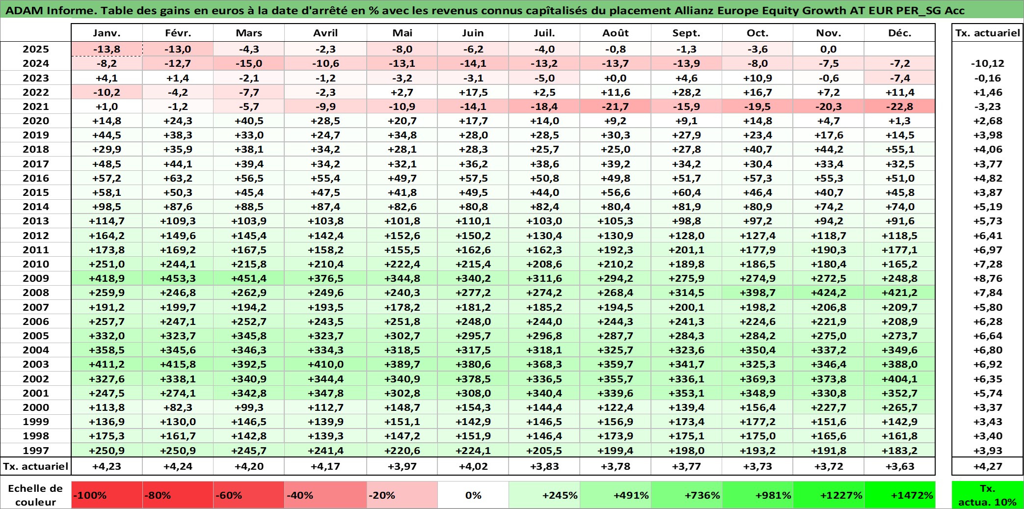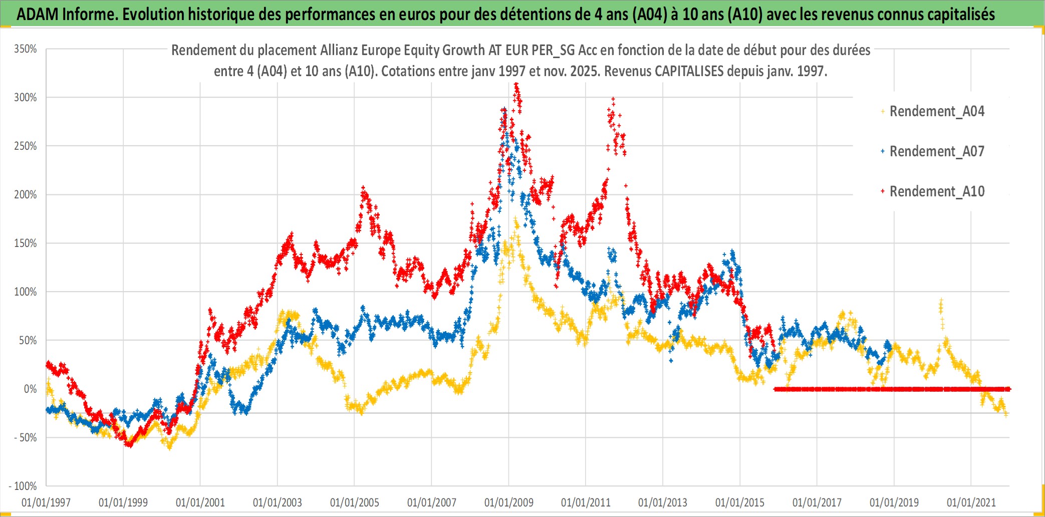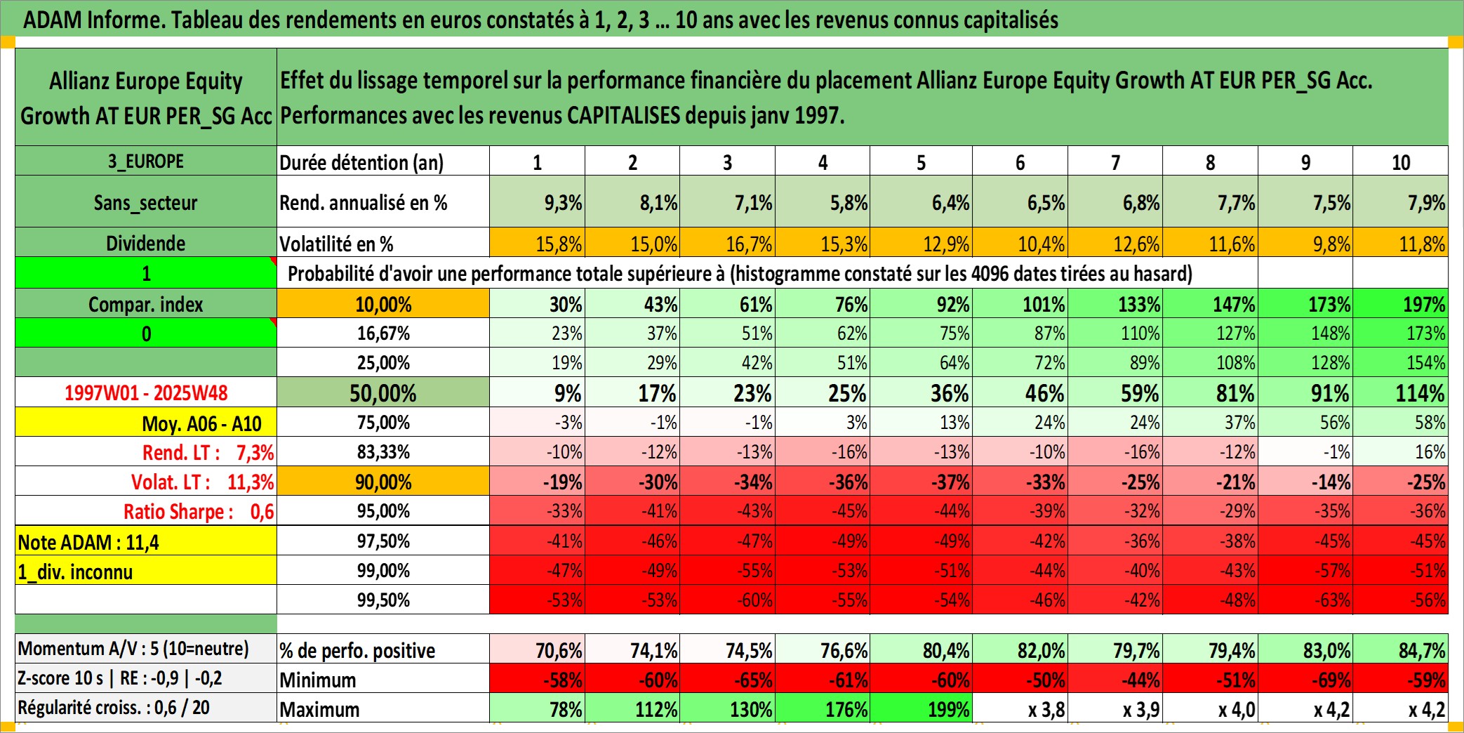 Site dédié aux investisseursPage dédiée sur site financeAnalyse des valorisations hebdomadaires du fonds Allianz Europe Equity Growth AT EUR PER_SG Acc. Cet actif est cote en EUR. Les valorisations couvrent les semaines 1997W01 a 2025W48. Les revenus de cet actif financier sont pris en compte depuis la semaine 1997W01. La note globale ESG de cet actif est estimee a 11.0 (apres rebasage entre 0 et 20).