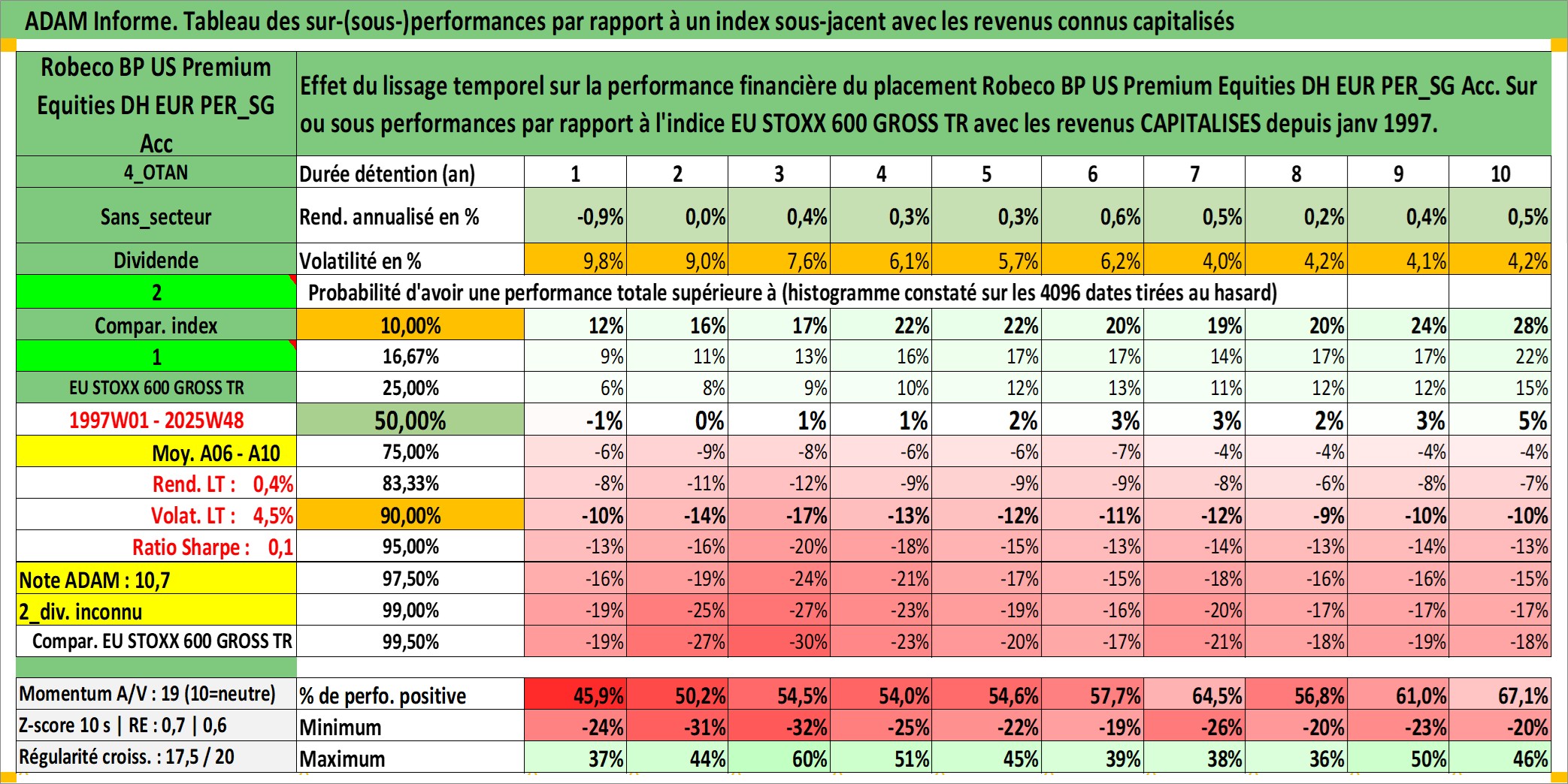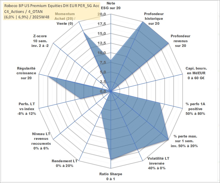 Site dédié aux investisseursPage dédiée sur site financeAnalyse des valorisations hebdomadaires du fonds Robeco BP US Premium Equities DH EUR PER_SG Acc. Cet actif est cote en EUR. Les valorisations couvrent les semaines 1997W01 a 2025W48. Les revenus de cet actif financier sont pris en compte depuis la semaine 1997W01. La note globale ESG de cet actif est estimee a 8.0 (apres rebasage entre 0 et 20).