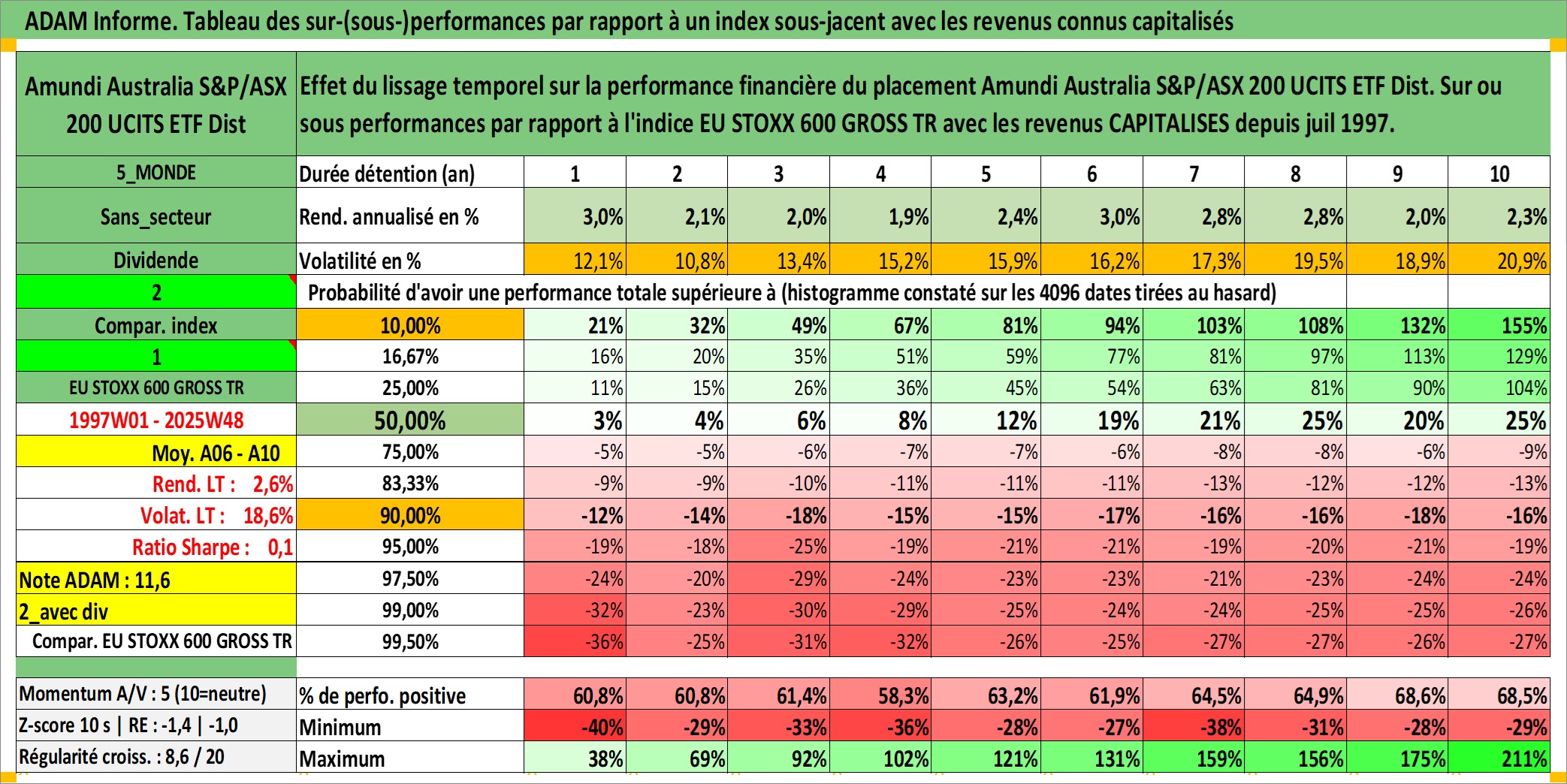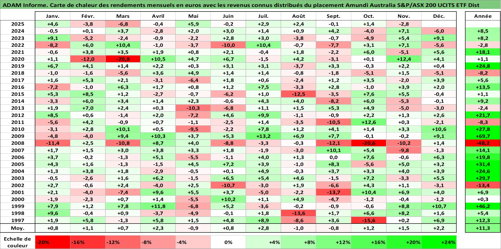 Site dédié aux investisseursPage dédiée sur site financeAnalyse des valorisations hebdomadaires du fonds Amundi Australia S&P/ASX 200 UCITS ETF Dist. Cet actif est cote en EUR. Les valorisations couvrent les semaines 1997W01 a 2025W48. Les revenus de cet actif financier sont pris en compte depuis la semaine 1997W28. La note ESG de cet actif n'est pas connue.