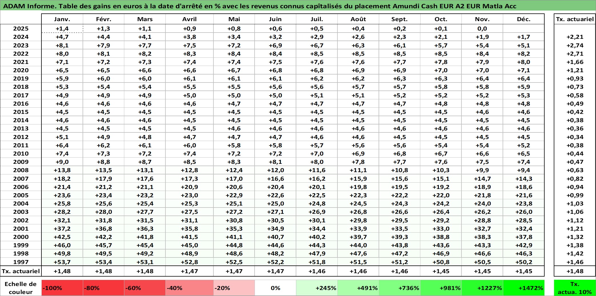 Dernière perfo 10 ans en %