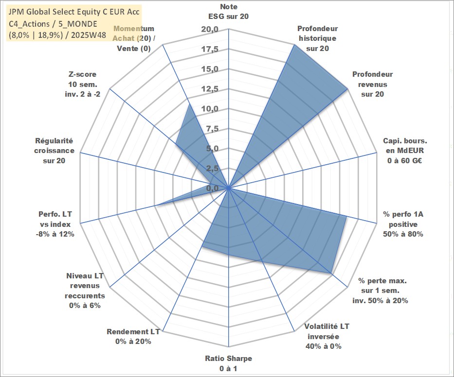 Site dédié aux investisseursPage dédiée sur site financeAnalyse des valorisations hebdomadaires du fonds JPM Global Select Equity C EUR Acc. Cet actif est cote en EUR. Les valorisations couvrent les semaines 1997W01 a 2025W48. Les revenus de cet actif financier sont pris en compte depuis la semaine 1997W01. La note ESG de cet actif n'est pas connue.