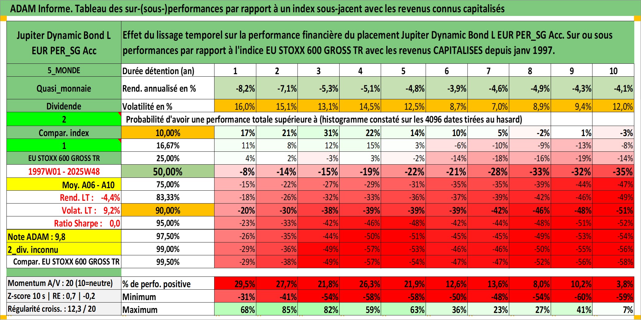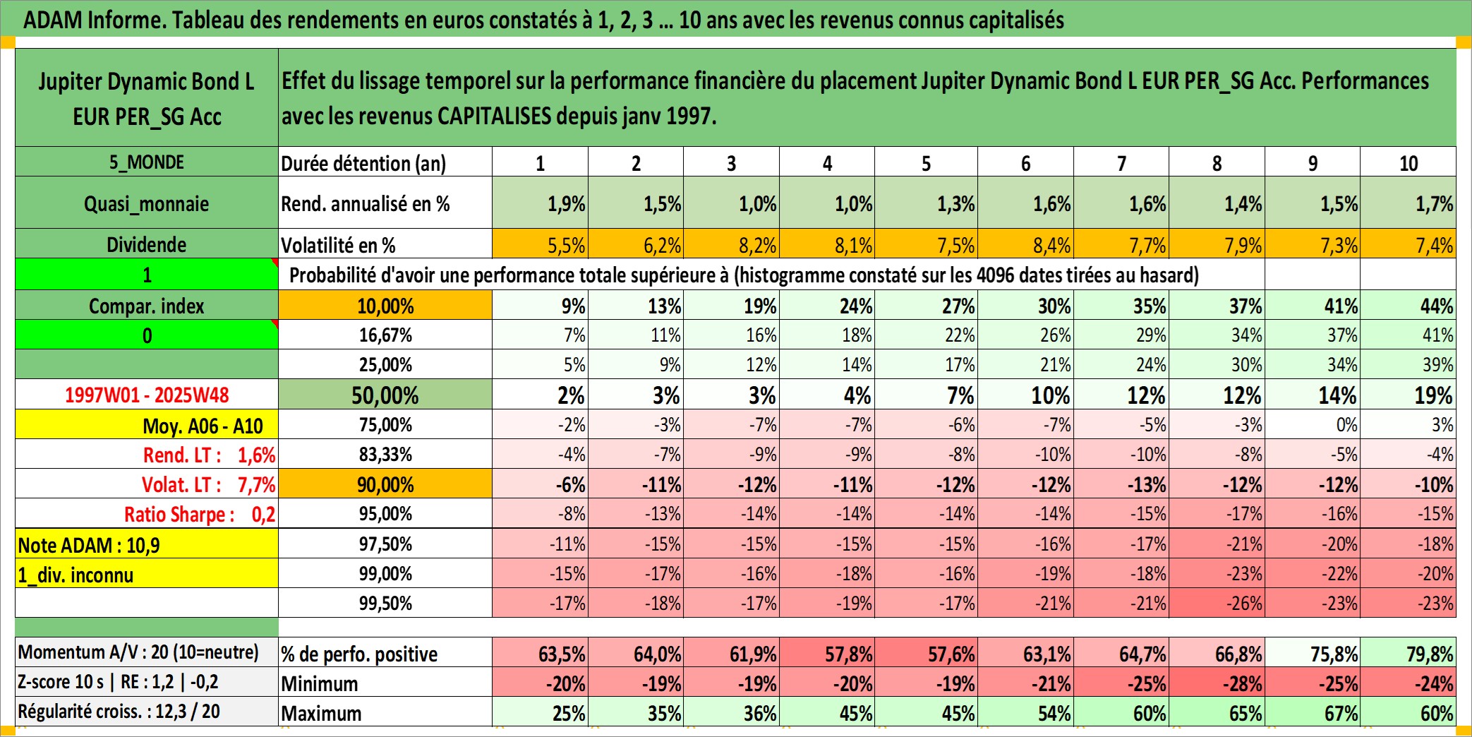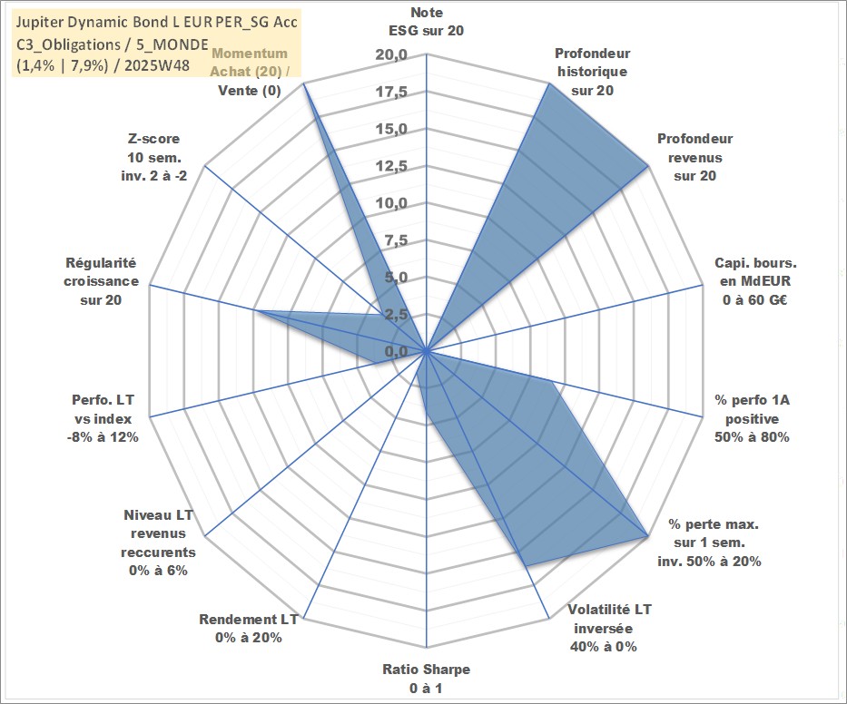 Site dédié aux investisseursPage dédiée sur site financeAnalyse des valorisations hebdomadaires du fonds Jupiter Dynamic Bond L EUR PER_SG Acc. Cet actif est cote en EUR. Les valorisations couvrent les semaines 1997W01 a 2025W48. Les revenus de cet actif financier sont pris en compte depuis la semaine 1997W01. La note ESG de cet actif n'est pas connue.