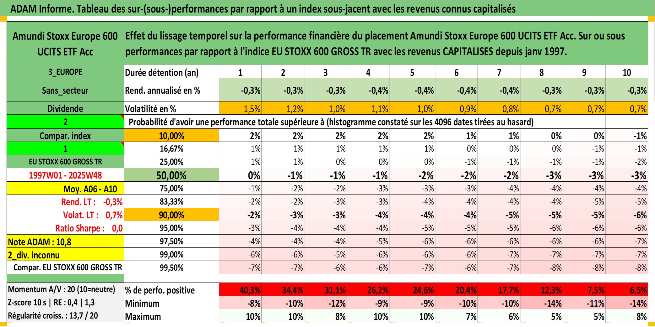 Site dédié aux investisseursPage dédiée sur site financeAnalyse des valorisations hebdomadaires du fonds Amundi Stoxx Europe 600 UCITS ETF Acc. Cet actif est cote en EUR. Les valorisations couvrent les semaines 1997W01 a 2025W48. Les revenus de cet actif financier sont pris en compte depuis la semaine 1997W01. La note ESG de cet actif n'est pas connue.