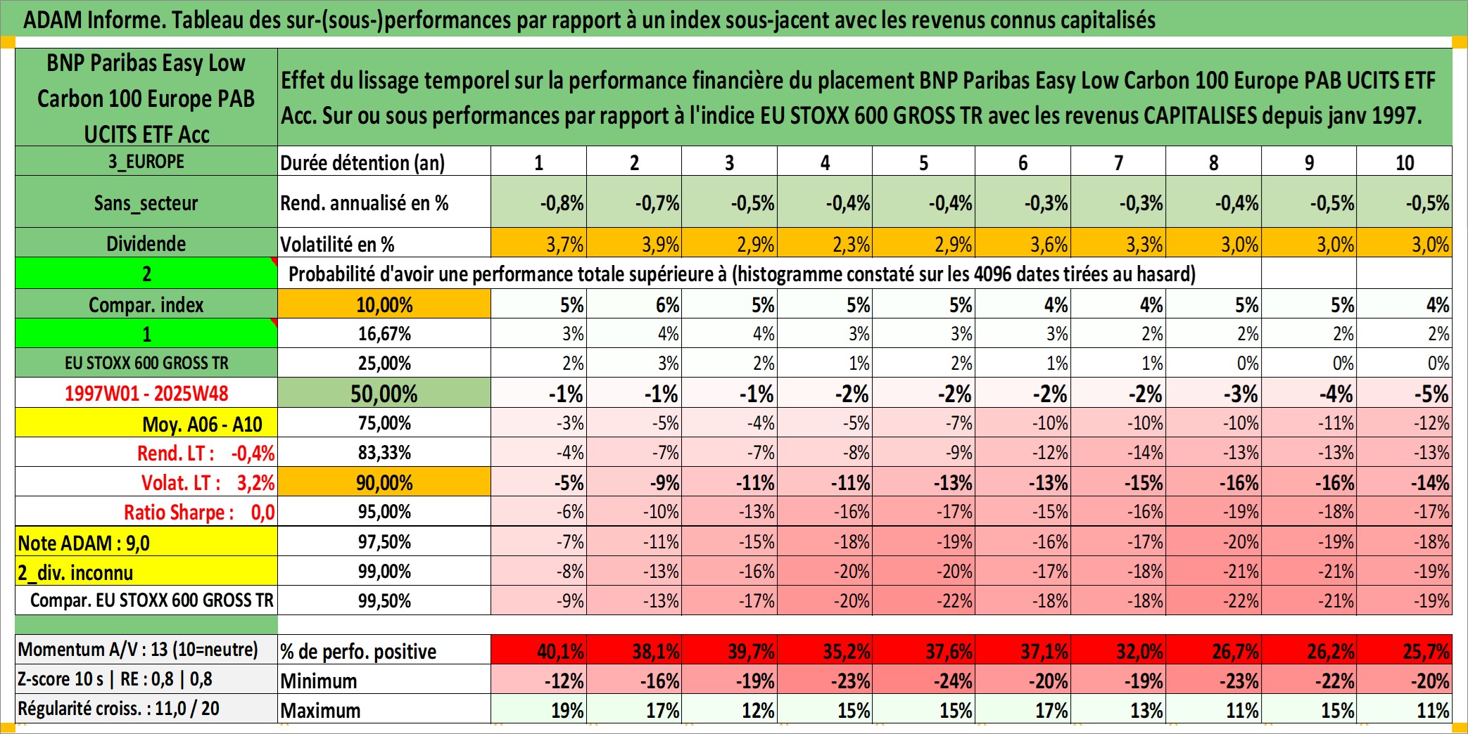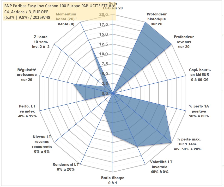 Site dédié aux investisseursPage dédiée sur site financeAnalyse des valorisations hebdomadaires du fonds BNP Paribas Easy Low Carbon 100 Europe PAB UCITS ETF Acc. Cet actif est cote en EUR. Les valorisations couvrent les semaines 1997W01 a 2025W48. Les revenus de cet actif financier sont pris en compte depuis la semaine 1997W01. La note ESG de cet actif n'est pas connue.