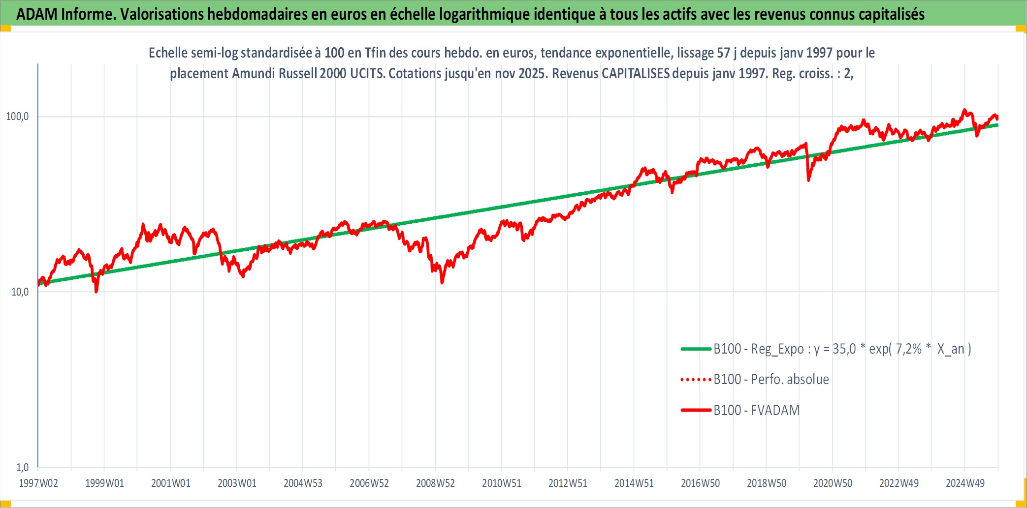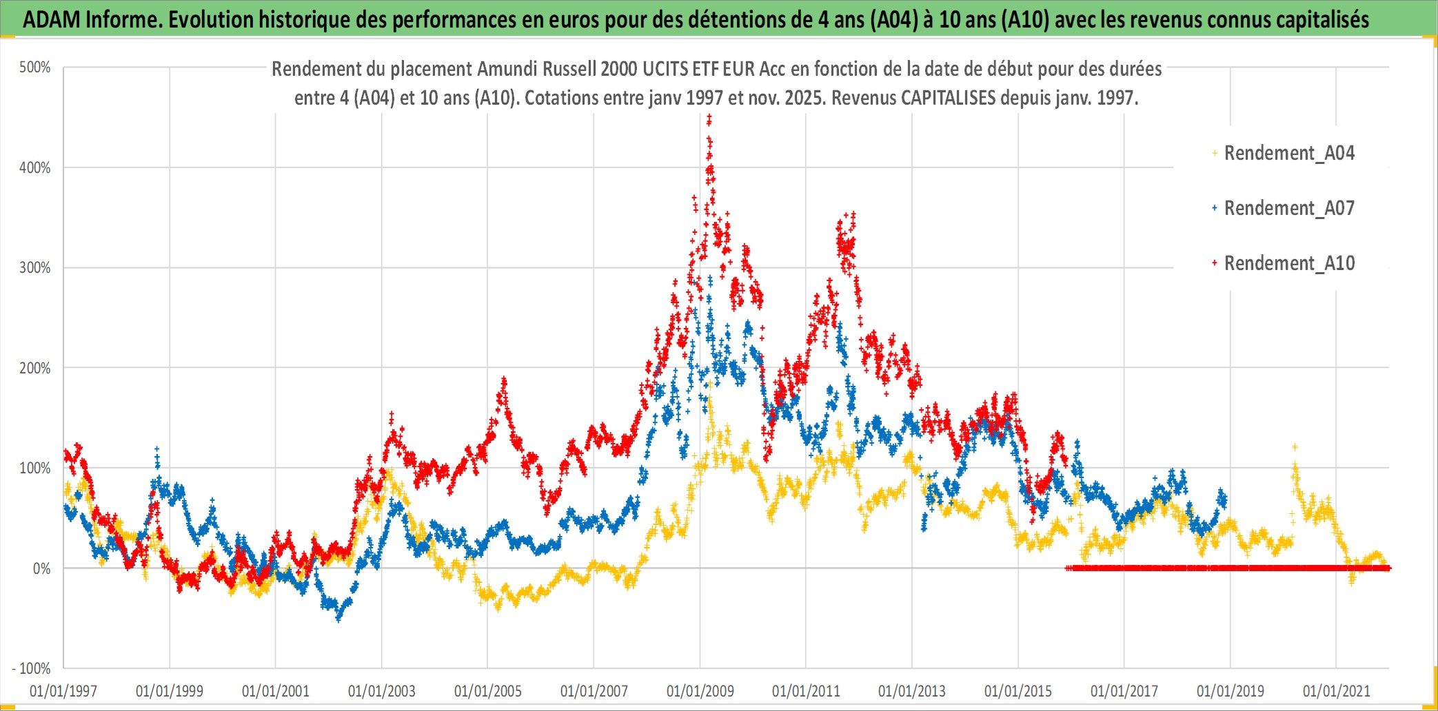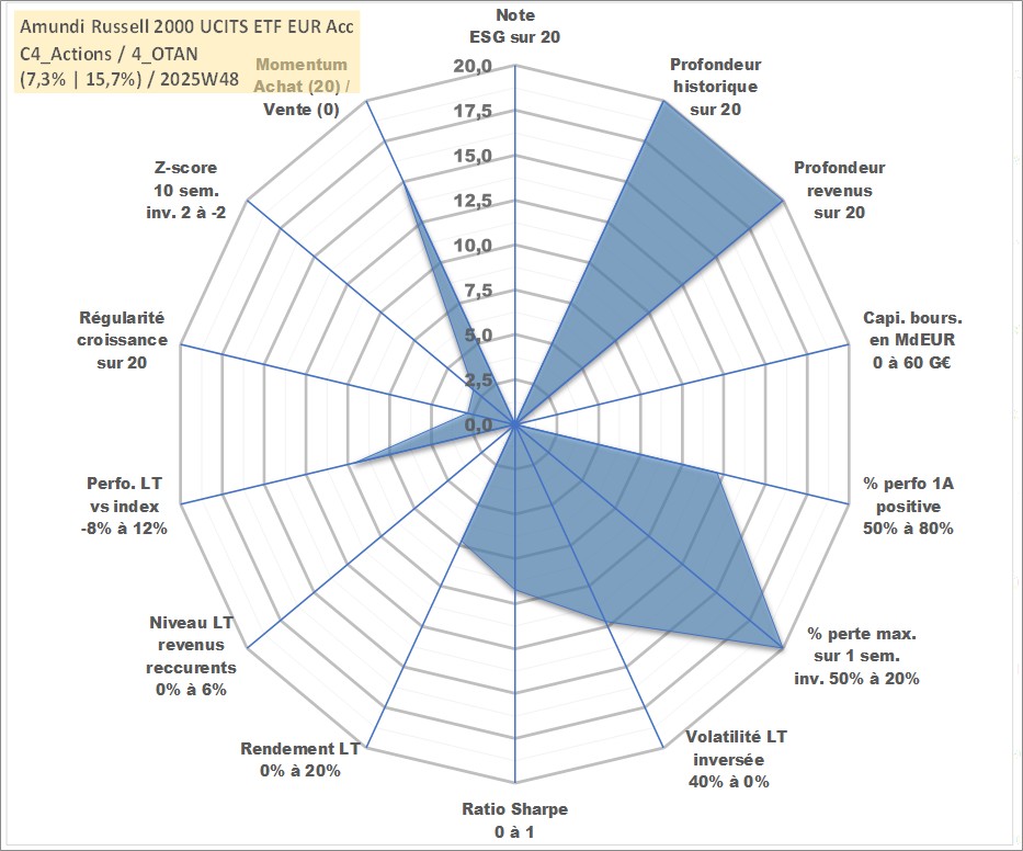 Site dédié aux investisseursPage dédiée sur site financeAnalyse des valorisations hebdomadaires du fonds Amundi Russell 2000 UCITS ETF EUR Acc. Cet actif est cote en EUR. Les valorisations couvrent les semaines 1997W01 a 2025W48. Les revenus de cet actif financier sont pris en compte depuis la semaine 1997W01. La note ESG de cet actif n'est pas connue.