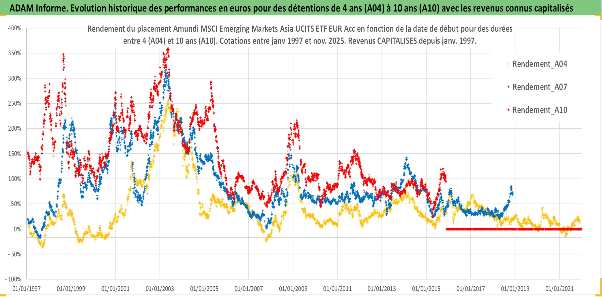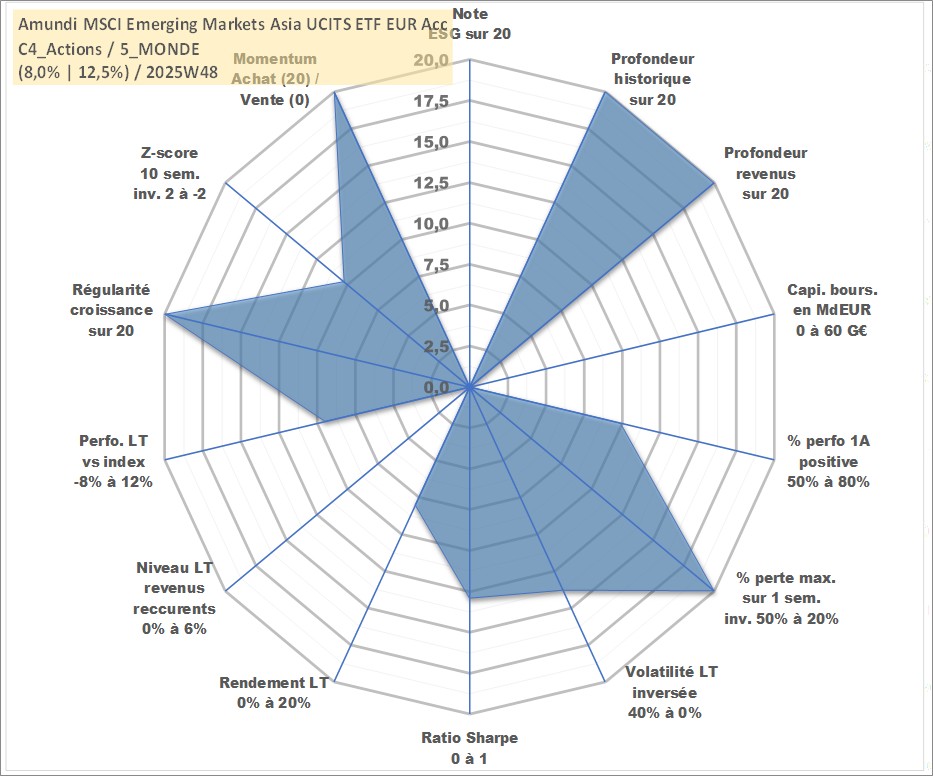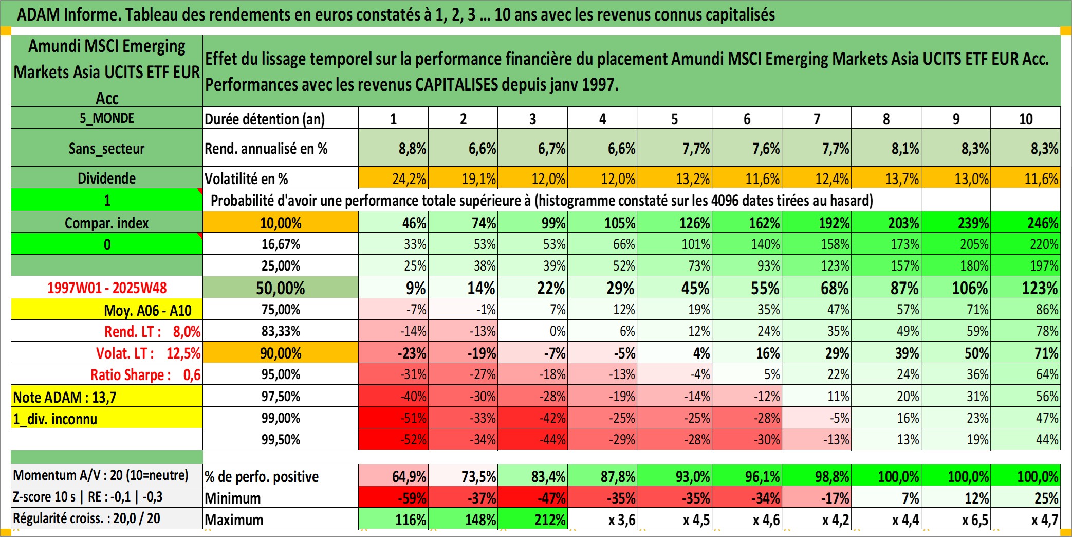 Site dédié aux investisseursPage dédiée sur site financeAnalyse des valorisations hebdomadaires du fonds Amundi MSCI Emerging Markets Asia UCITS ETF EUR Acc. Cet actif est cote en EUR. Les valorisations couvrent les semaines 1997W01 a 2025W48. Les revenus de cet actif financier sont pris en compte depuis la semaine 1997W01. La note ESG de cet actif n'est pas connue.
