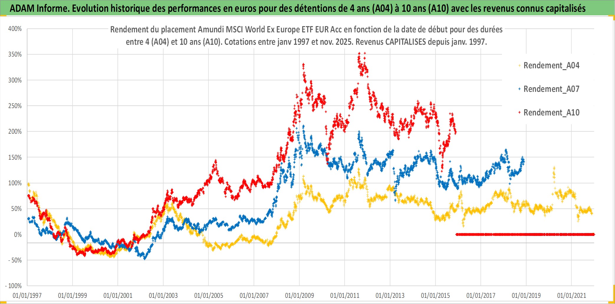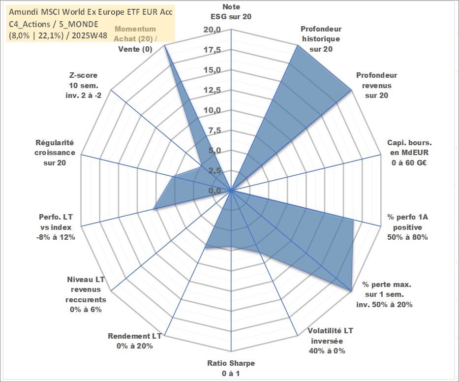 Site dédié aux investisseursPage dédiée sur site financeAnalyse des valorisations hebdomadaires du fonds Amundi MSCI World Ex Europe ETF EUR Acc. Cet actif est cote en EUR. Les valorisations couvrent les semaines 1997W01 a 2025W48. Les revenus de cet actif financier sont pris en compte depuis la semaine 1997W01. La note ESG de cet actif n'est pas connue.