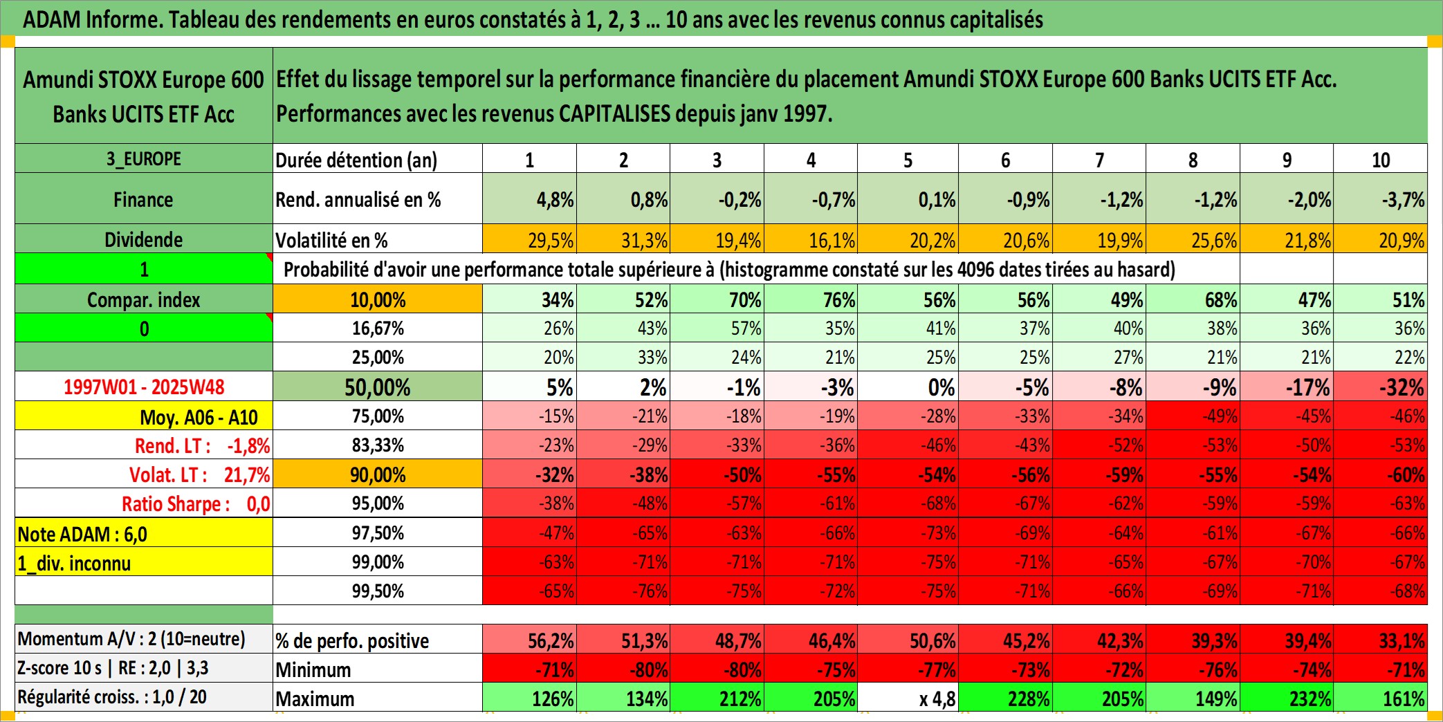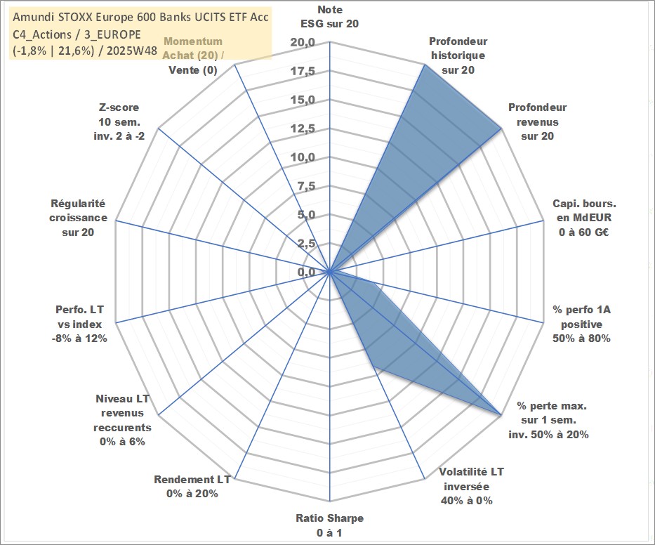 Site dédié aux investisseursPage dédiée sur site financeAnalyse des valorisations hebdomadaires du fonds Amundi STOXX Europe 600 Banks UCITS ETF Acc. Cet actif est cote en EUR. Les valorisations couvrent les semaines 1997W01 a 2025W48. Les revenus de cet actif financier sont pris en compte depuis la semaine 1997W01. La note ESG de cet actif n'est pas connue.
