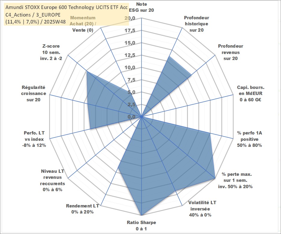 Site dédié aux investisseursPage dédiée sur site financeAnalyse des valorisations hebdomadaires du fonds Amundi STOXX Europe 600 Technology UCITS ETF Acc. Cet actif est cote en EUR. Les valorisations couvrent les semaines 2006W38 a 2025W48. Les revenus de cet actif financier sont pris en compte depuis la semaine 2006W38. La note ESG de cet actif n'est pas connue.