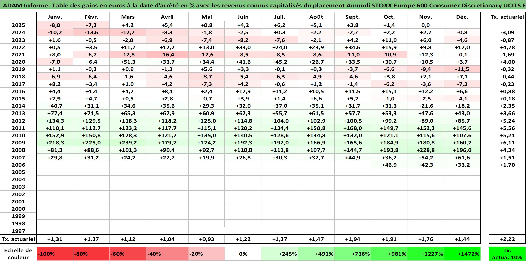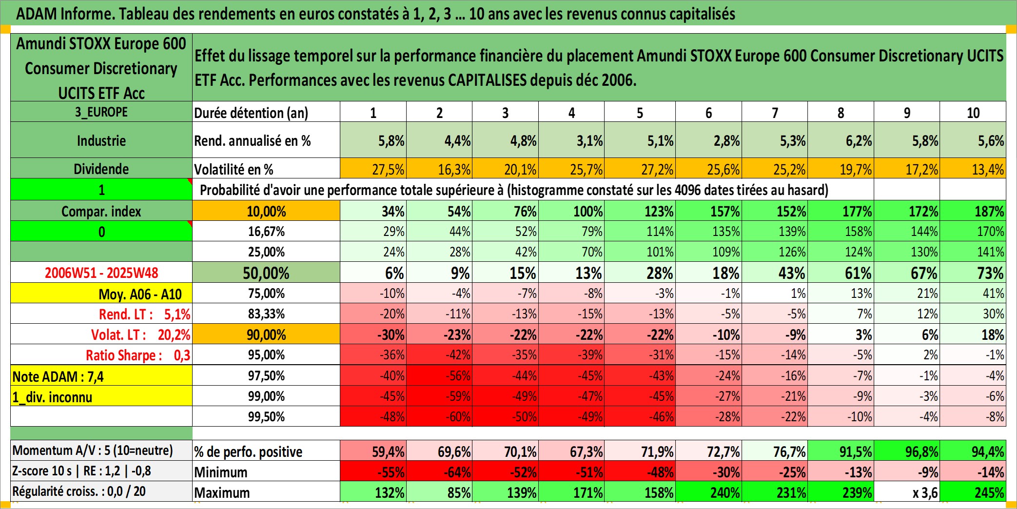 Site dédié aux investisseursPage dédiée sur site financeAnalyse des valorisations hebdomadaires du fonds Amundi STOXX Europe 600 Consumer Discretionary UCITS ETF Acc. Cet actif est cote en EUR. Les valorisations couvrent les semaines 2006W51 a 2025W48. Les revenus de cet actif financier sont pris en compte depuis la semaine 2006W51. La note ESG de cet actif n'est pas connue.