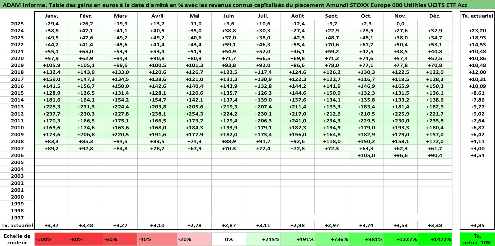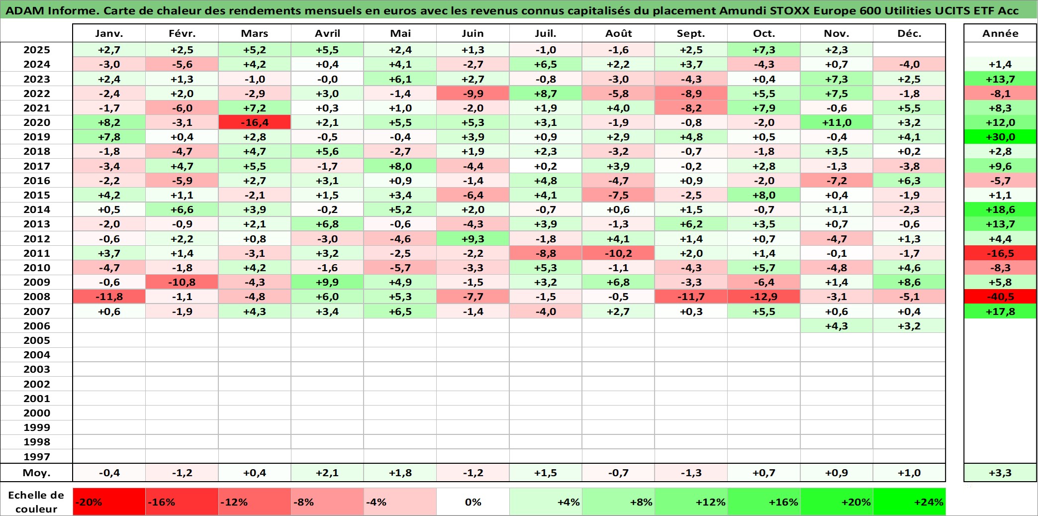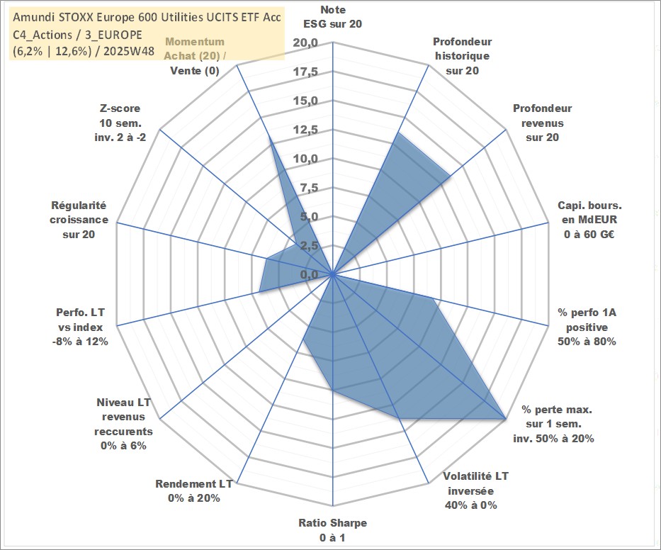 Site dédié aux investisseursPage dédiée sur site financeAnalyse des valorisations hebdomadaires du fonds Amundi STOXX Europe 600 Utilities UCITS ETF Acc. Cet actif est cote en EUR. Les valorisations couvrent les semaines 2006W40 a 2025W48. Les revenus de cet actif financier sont pris en compte depuis la semaine 2006W40. La note ESG de cet actif n'est pas connue.