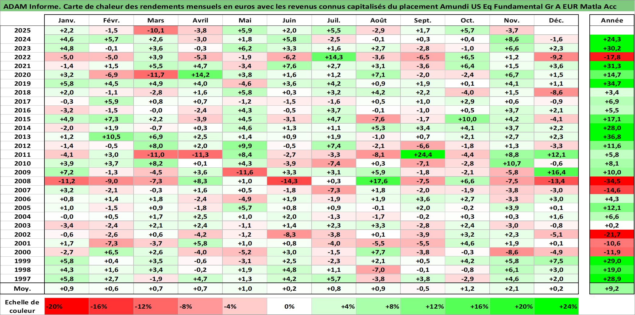Site dédié aux investisseursPage dédiée sur site financeAnalyse des valorisations hebdomadaires du fonds Amundi US Eq Fundamental Gr A EUR Matla Acc. Cet actif est cote en EUR. Les valorisations couvrent les semaines 1997W01 a 2025W48. Les revenus de cet actif financier sont pris en compte depuis la semaine 1997W01. La note ESG de cet actif n'est pas connue.