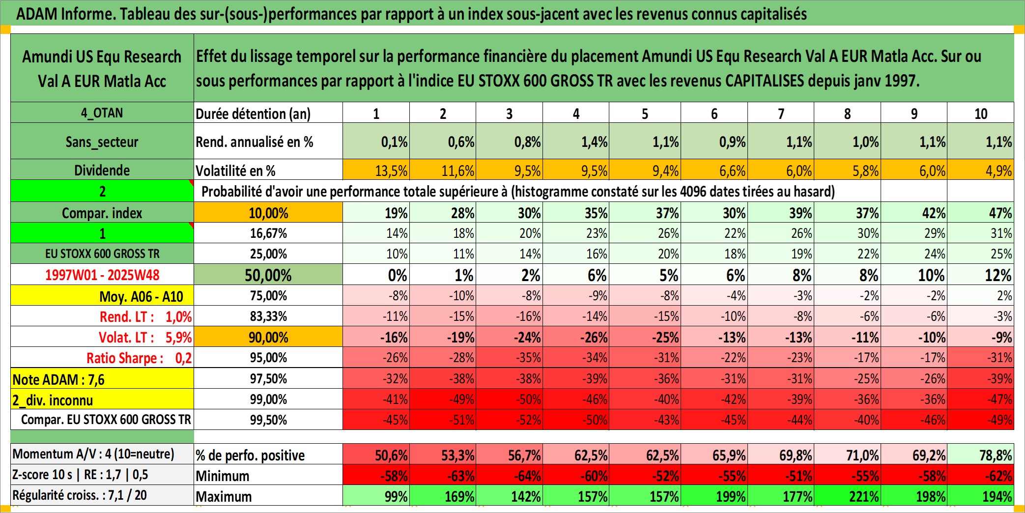 Site dédié aux investisseursPage dédiée sur site financeAnalyse des valorisations hebdomadaires du fonds Amundi US Equ Research Val A EUR Matla Acc. Cet actif est cote en EUR. Les valorisations couvrent les semaines 1997W01 a 2025W48. Les revenus de cet actif financier sont pris en compte depuis la semaine 1997W01. La note ESG de cet actif n'est pas connue.