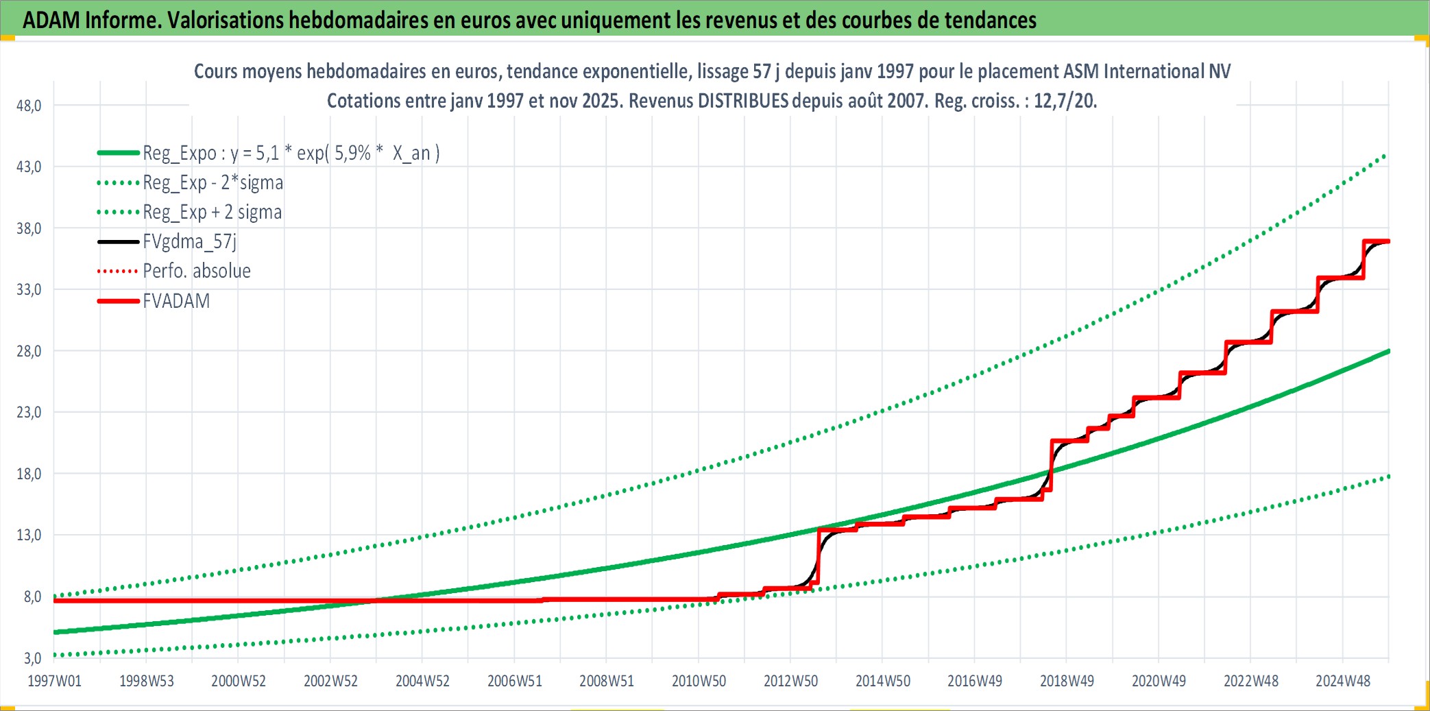 Site dédié aux investisseursPage dédiée sur site financeAnalyse des valorisations hebdomadaires de l'action ASM International NV. Cet actif est cote en EUR. Les valorisations couvrent les semaines 1997W01 a 2025W48. Les revenus de cet actif financier sont pris en compte depuis la semaine 2007W31. La note ESG de cet actif n'est pas connue.