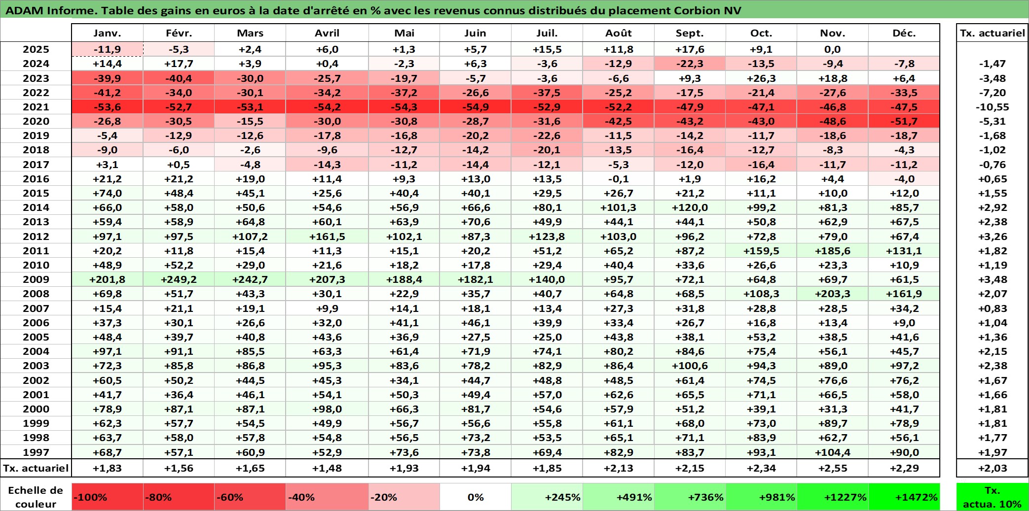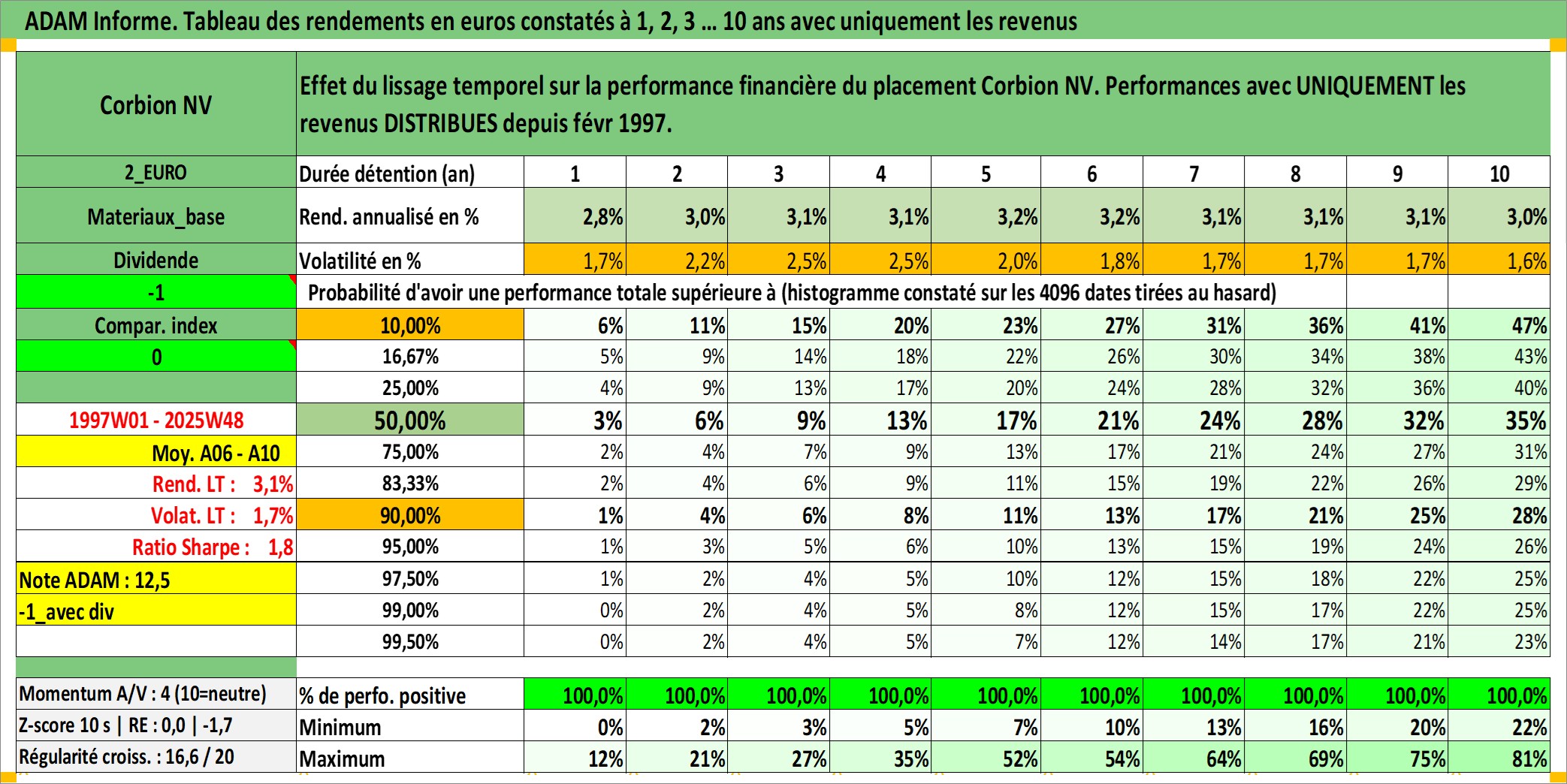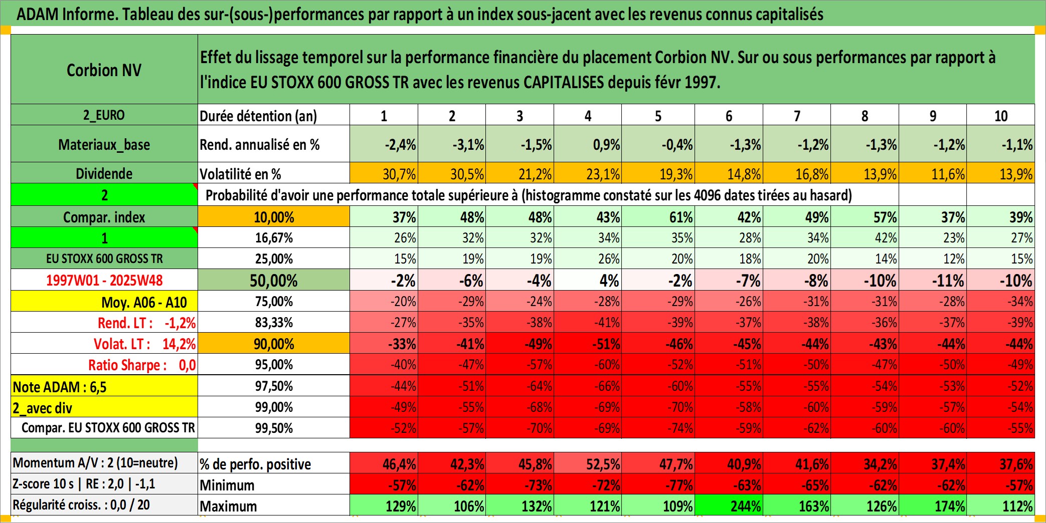 Site dédié aux investisseursPage dédiée sur site financeAnalyse des valorisations hebdomadaires de l'action Corbion NV. Cet actif est cote en EUR. Les valorisations couvrent les semaines 1997W01 a 2025W48. Les revenus de cet actif financier sont pris en compte depuis la semaine 1997W08. La note ESG de cet actif n'est pas connue.