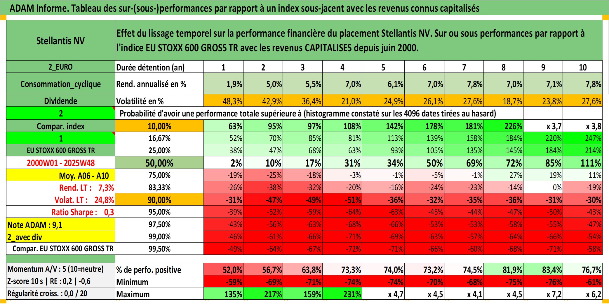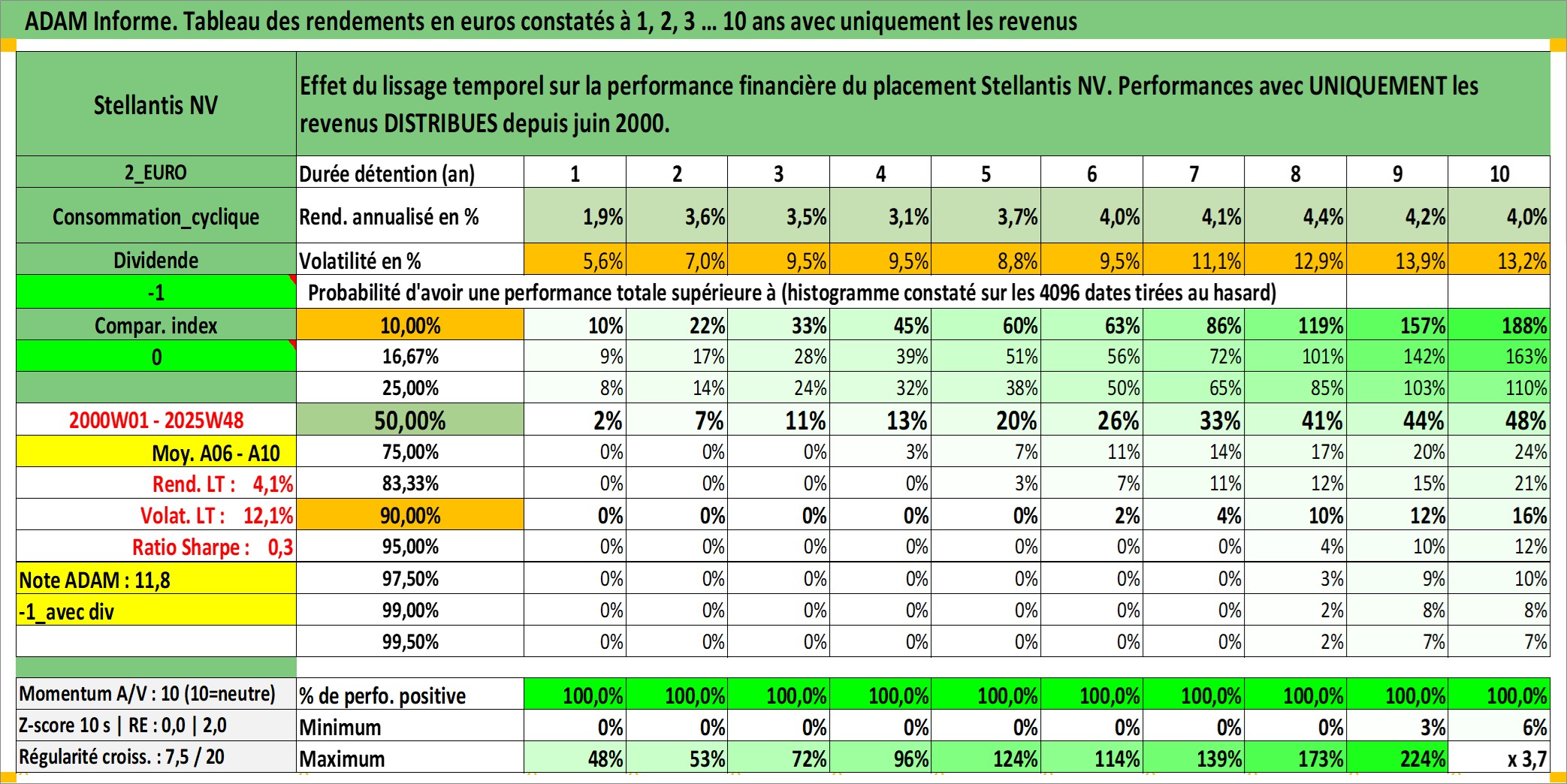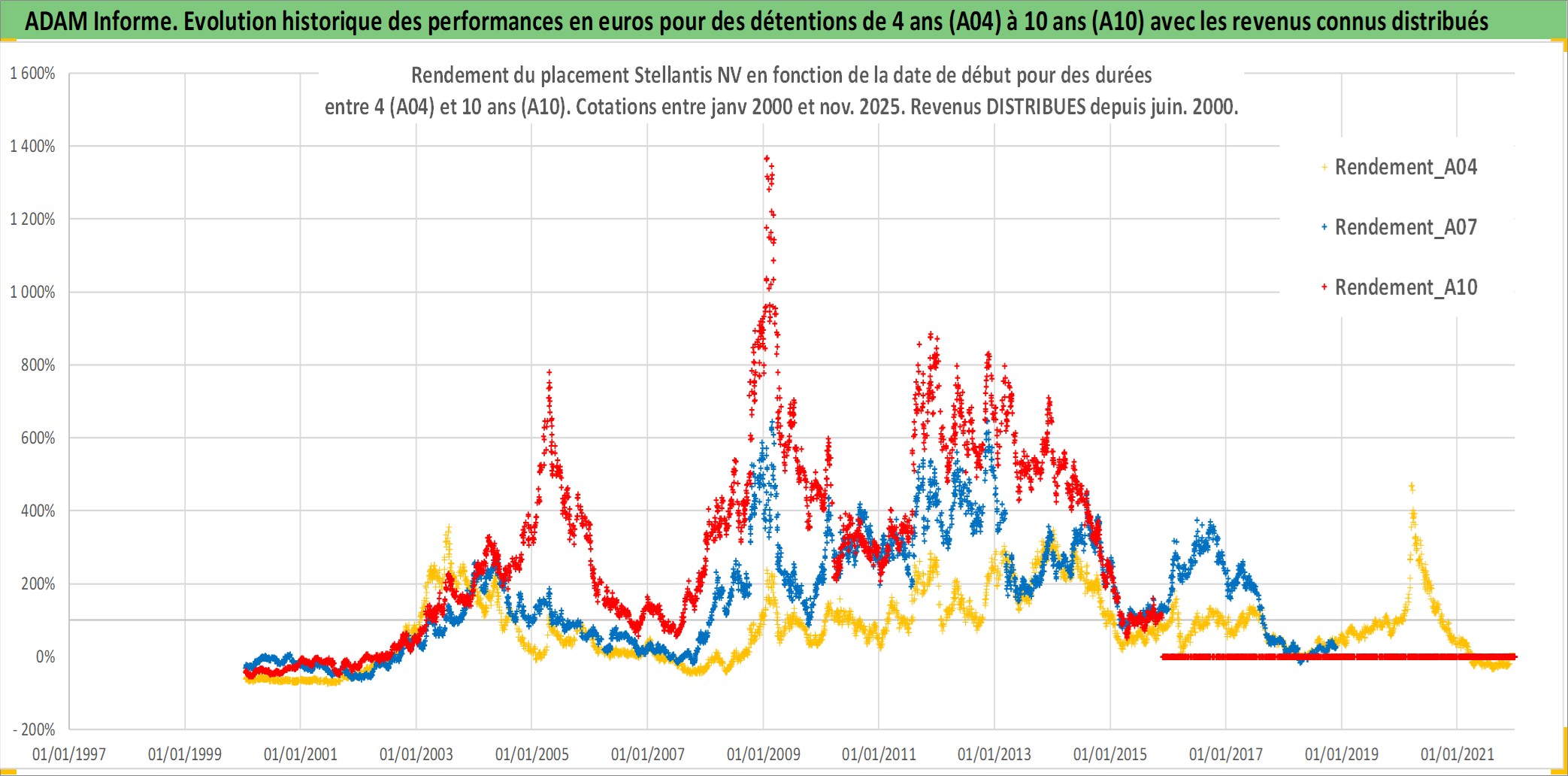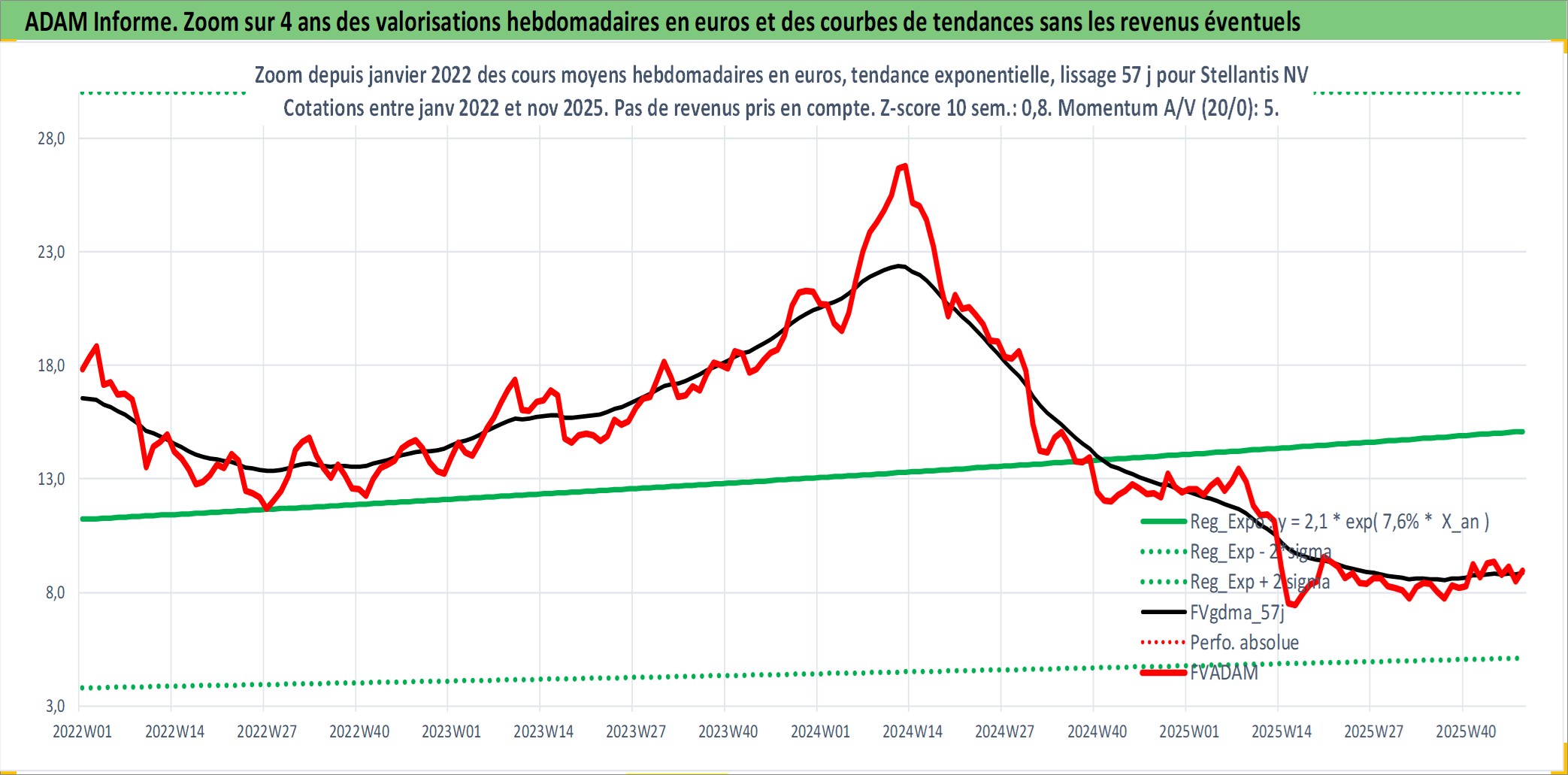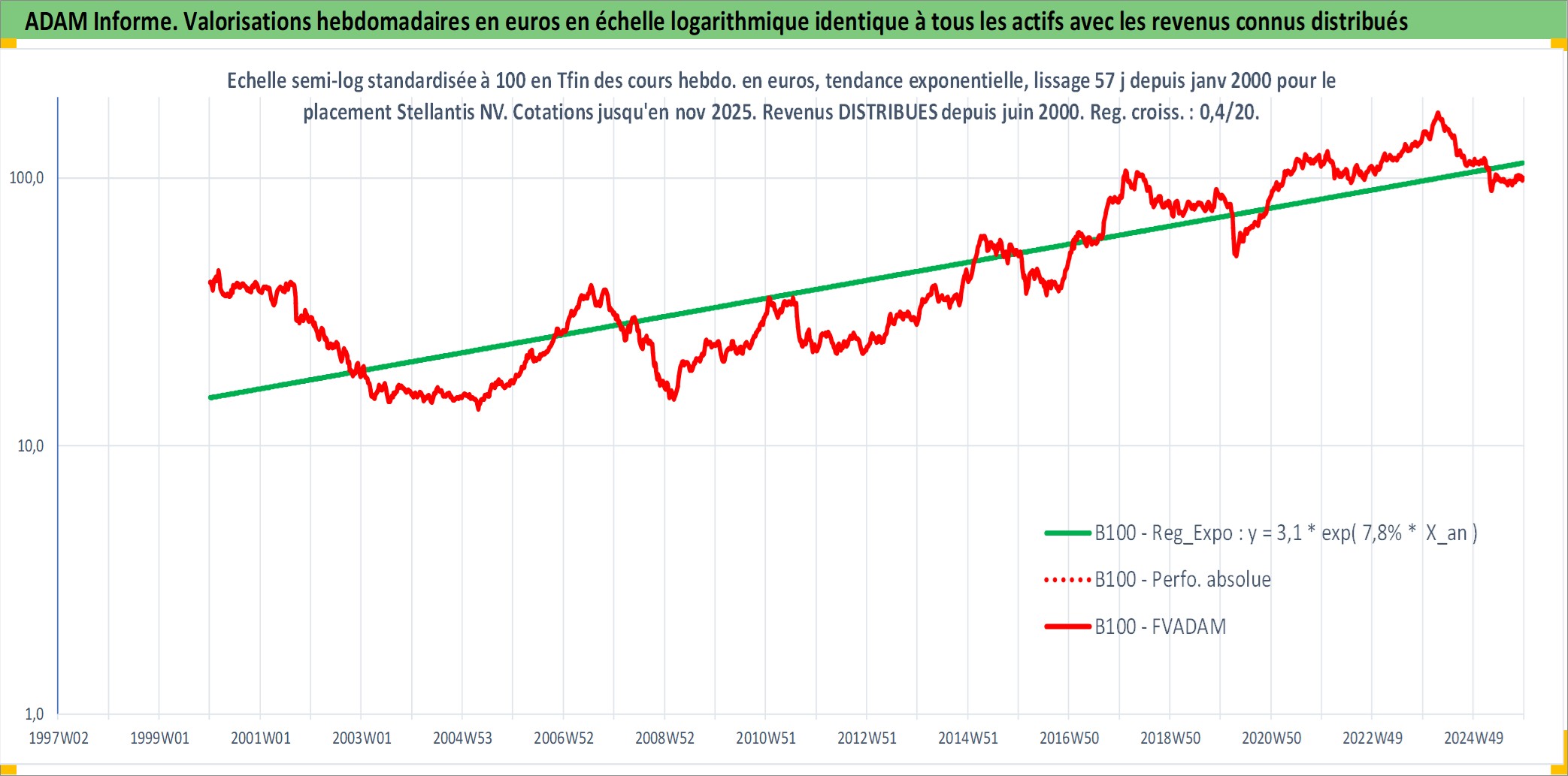Site dédié aux investisseursPage dédiée sur site financeAnalyse des valorisations hebdomadaires de l'action Stellantis NV. Cet actif est cote en EUR. Les valorisations couvrent les semaines 2000W01 a 2025W48. Les revenus de cet actif financier sont pris en compte depuis la semaine 2000W25. La note ESG de cet actif n'est pas connue.