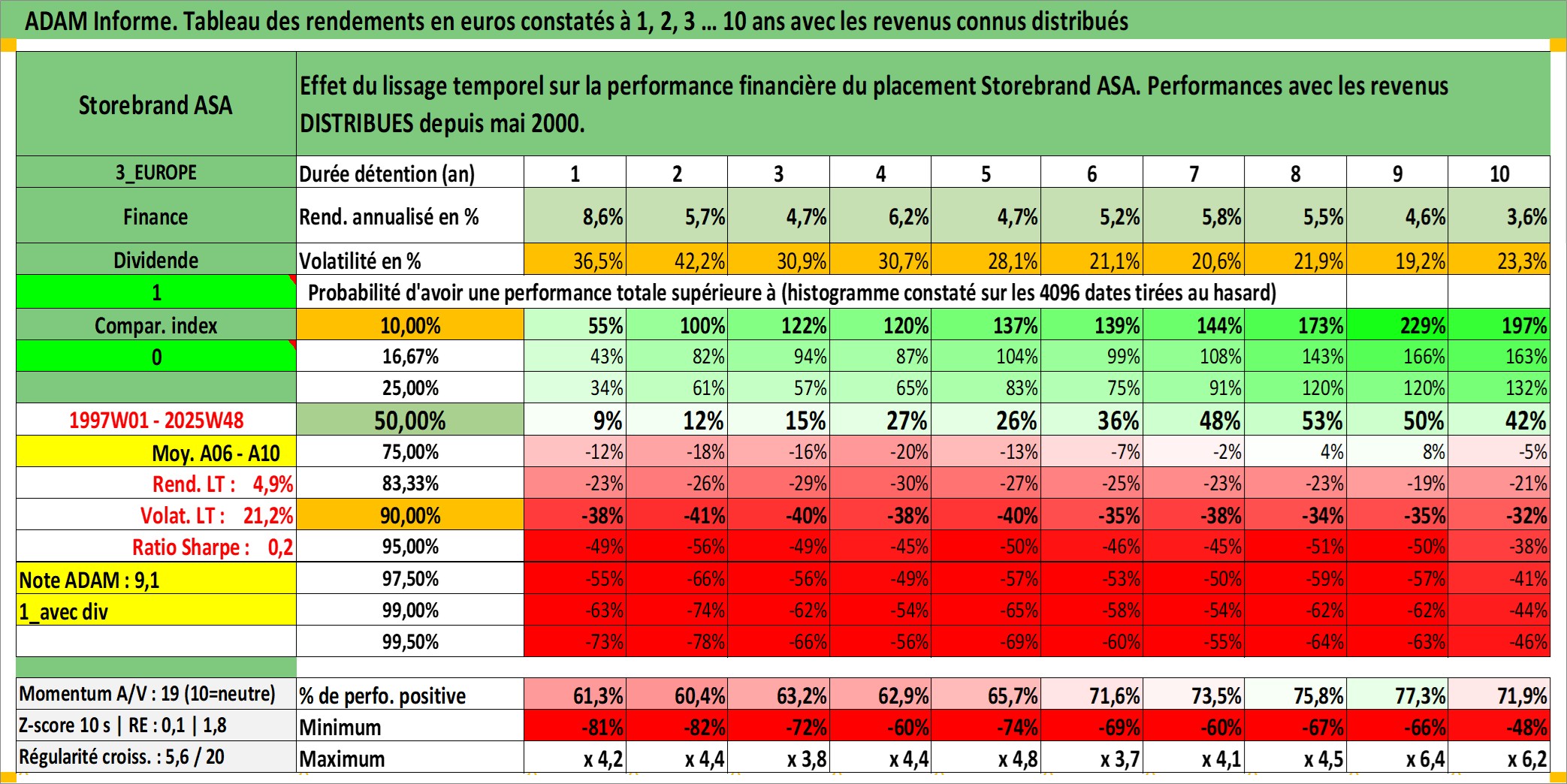 Site dédié aux investisseursPage dédiée sur site financeAnalyse des valorisations hebdomadaires de l'action Storebrand ASA. Cet actif est cote en NOK. Les valorisations sont en contrevaleur EURO et couvrent les semaines 1997W01 a 2025W48. Les revenus de cet actif financier sont pris en compte depuis la semaine 2000W18. La note ESG de cet actif n'est pas connue.