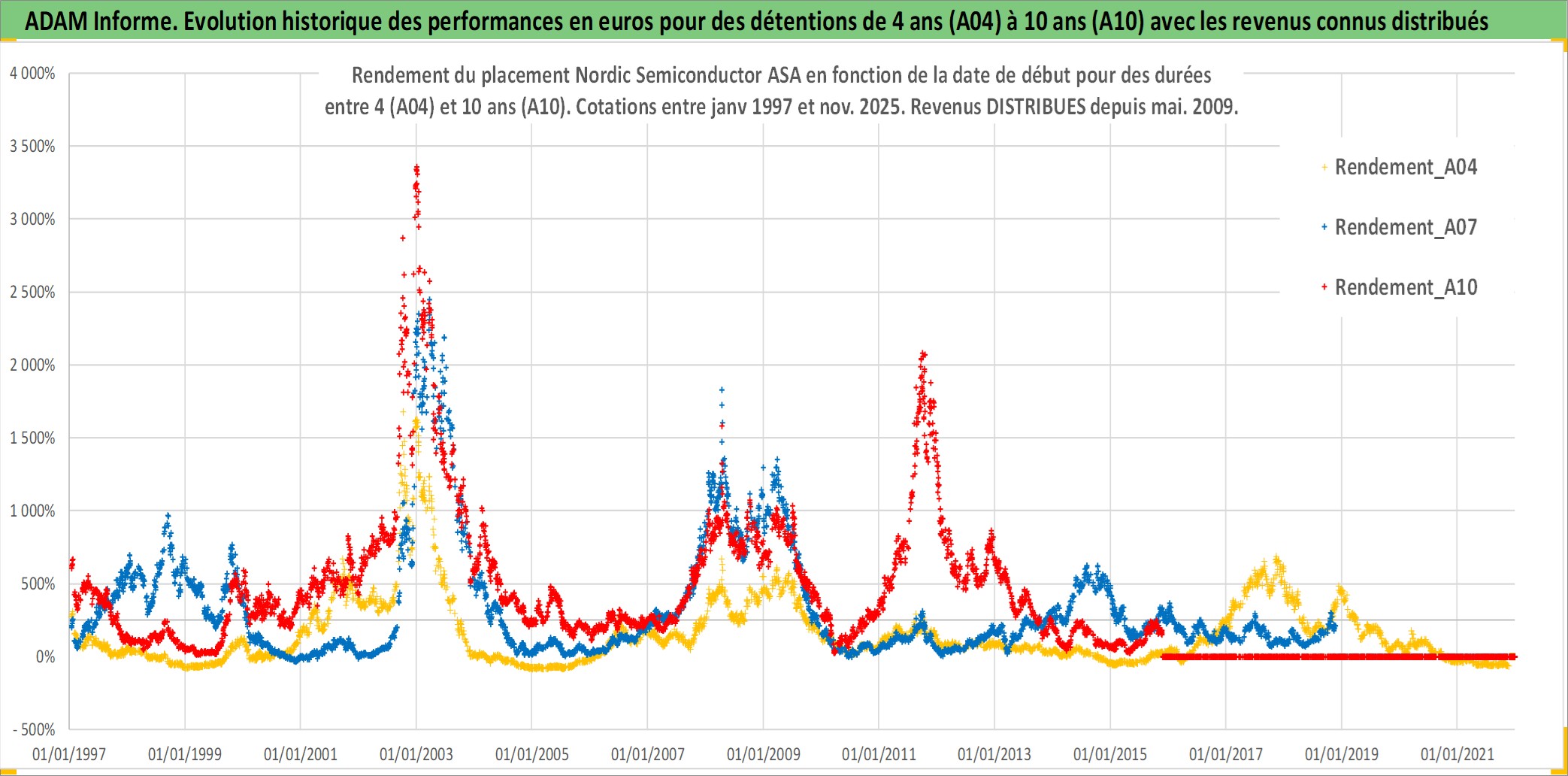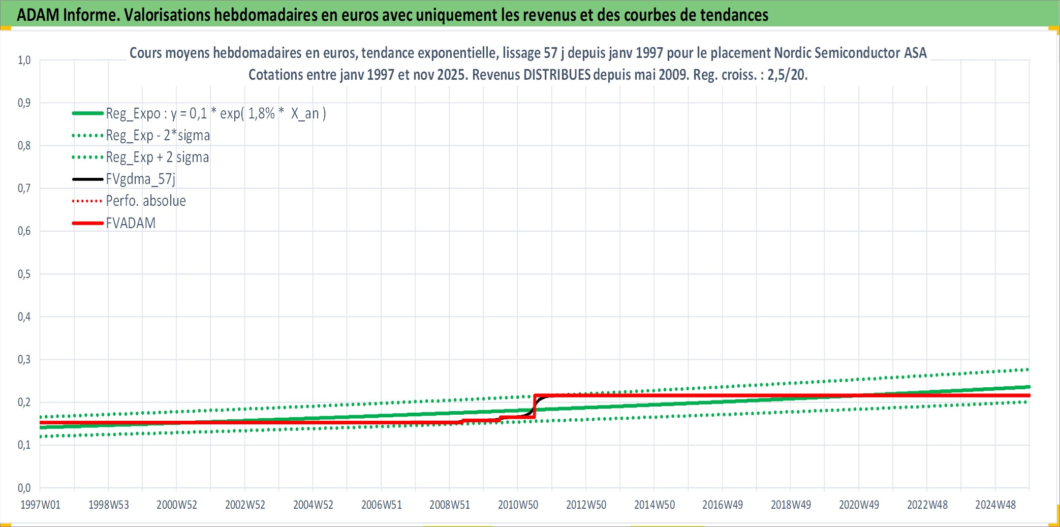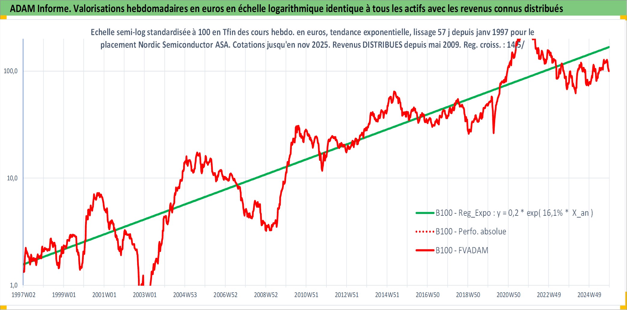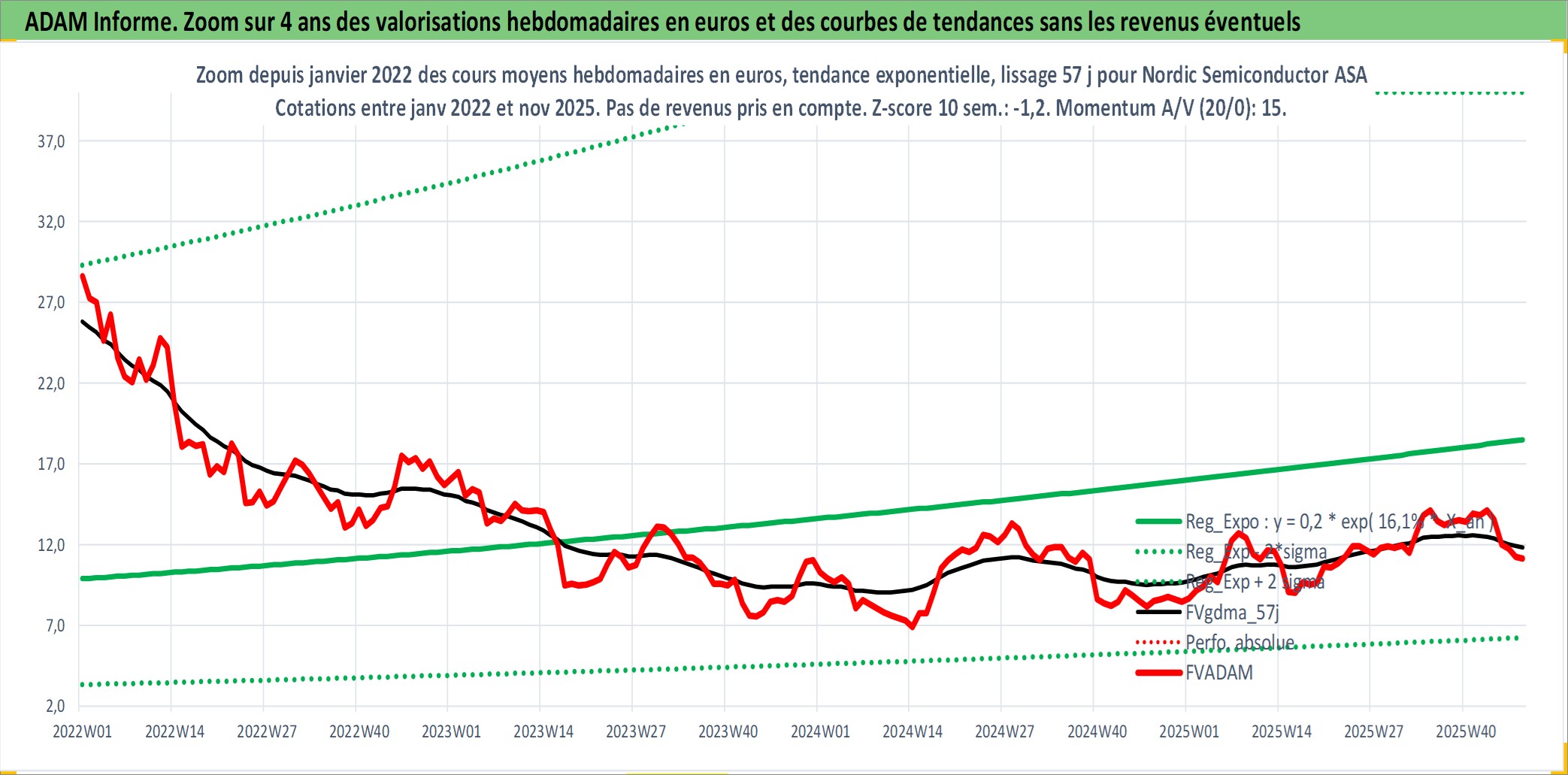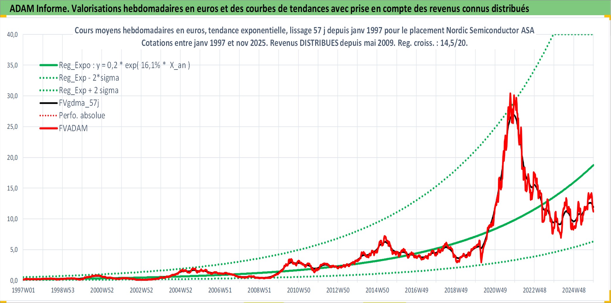 Site dédié aux investisseursPage dédiée sur site financeAnalyse des valorisations hebdomadaires de l'action Nordic Semiconductor ASA. Cet actif est cote en NOK. Les valorisations sont en contrevaleur EURO et couvrent les semaines 1997W01 a 2025W48. Les revenus de cet actif financier sont pris en compte depuis la semaine 2009W19. La note ESG de cet actif n'est pas connue.