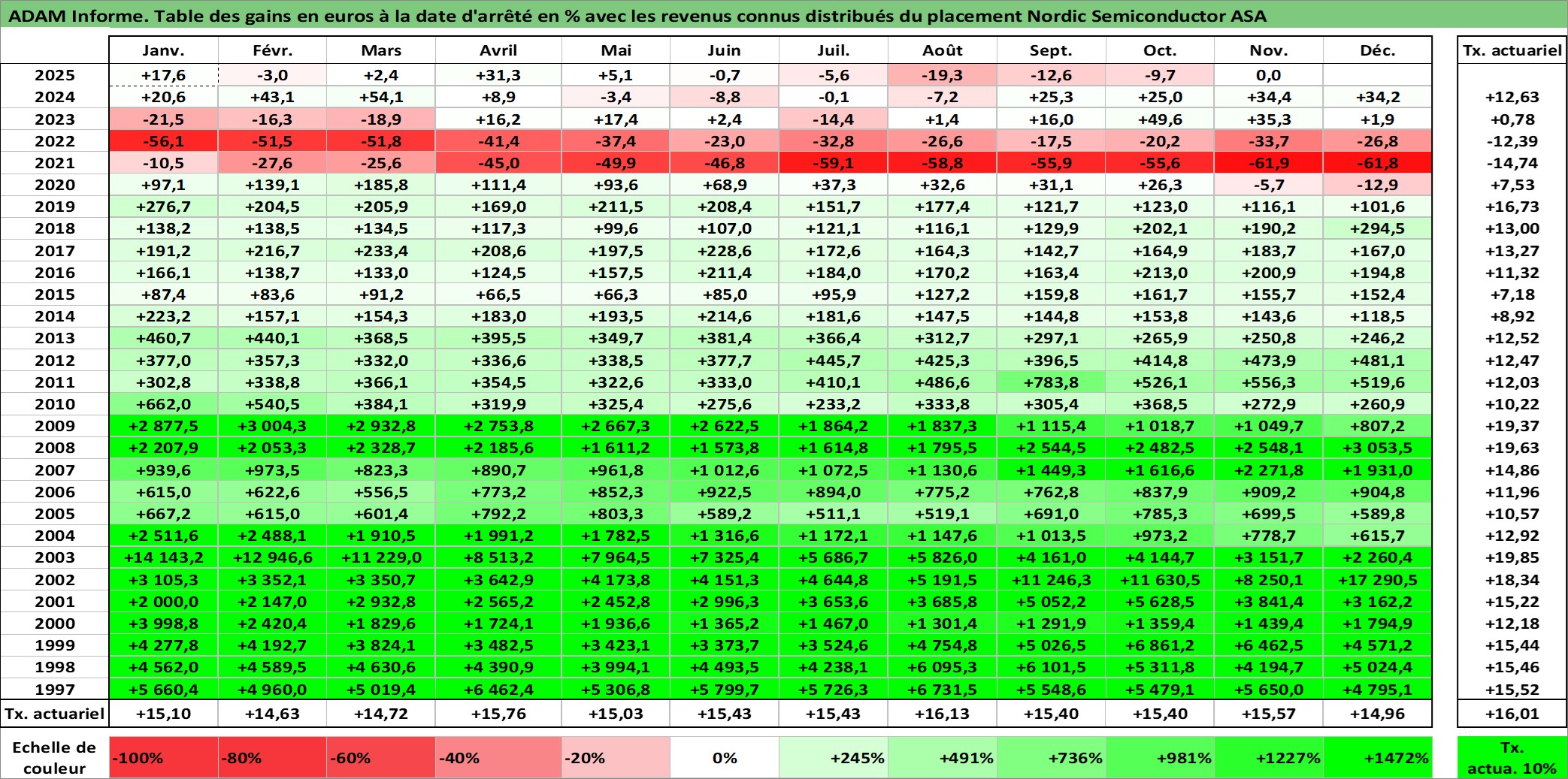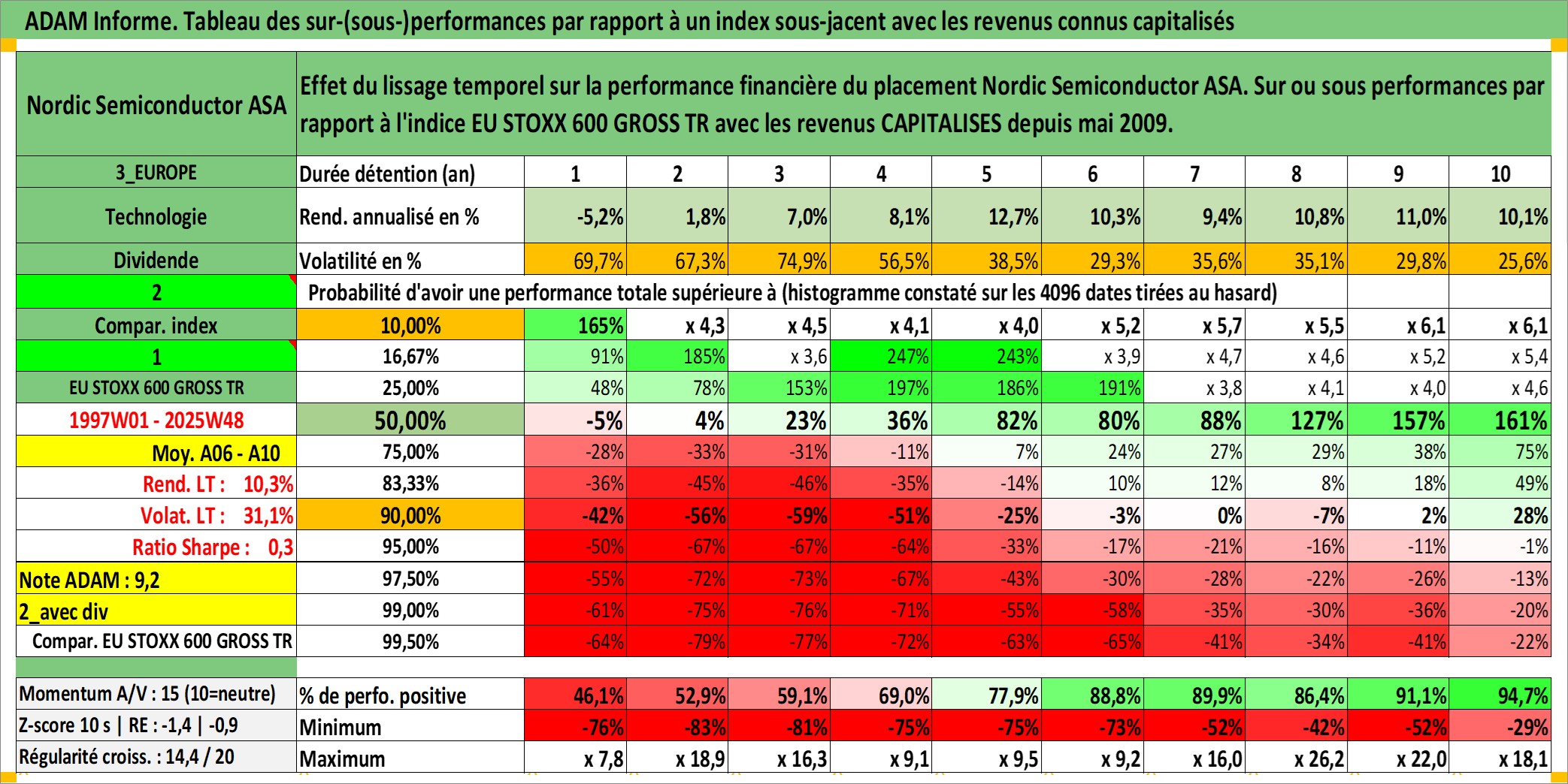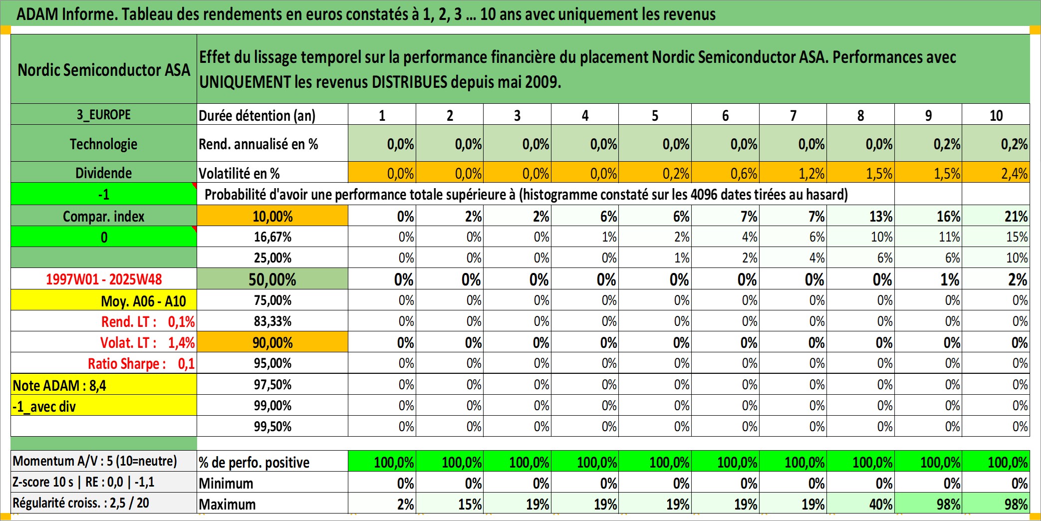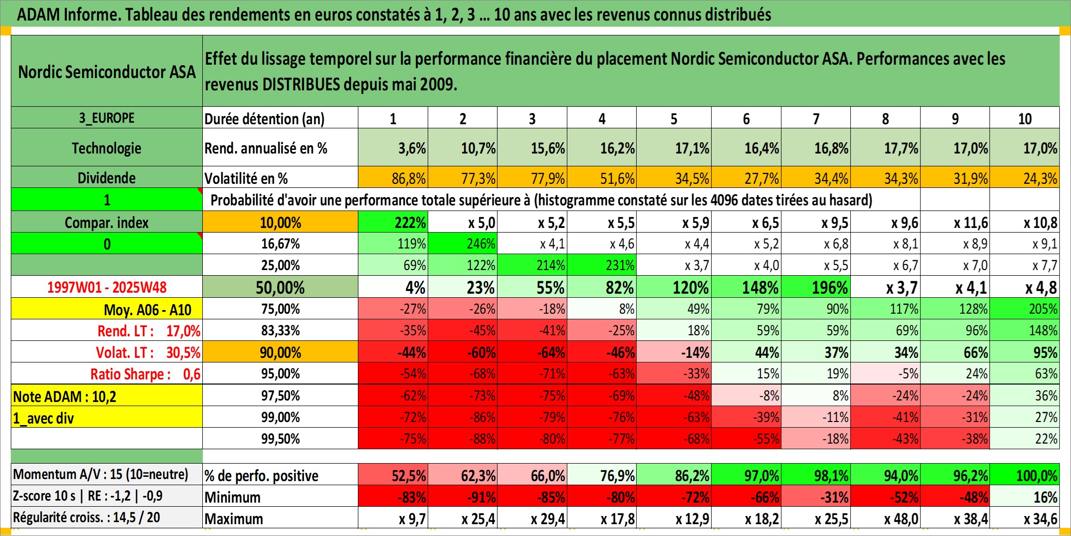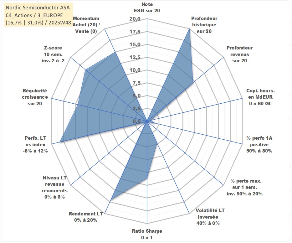 Site dédié aux investisseursPage dédiée sur site financeAnalyse des valorisations hebdomadaires de l'action Nordic Semiconductor ASA. Cet actif est cote en NOK. Les valorisations sont en contrevaleur EURO et couvrent les semaines 1997W01 a 2025W48. Les revenus de cet actif financier sont pris en compte depuis la semaine 2009W19. La note ESG de cet actif n'est pas connue.