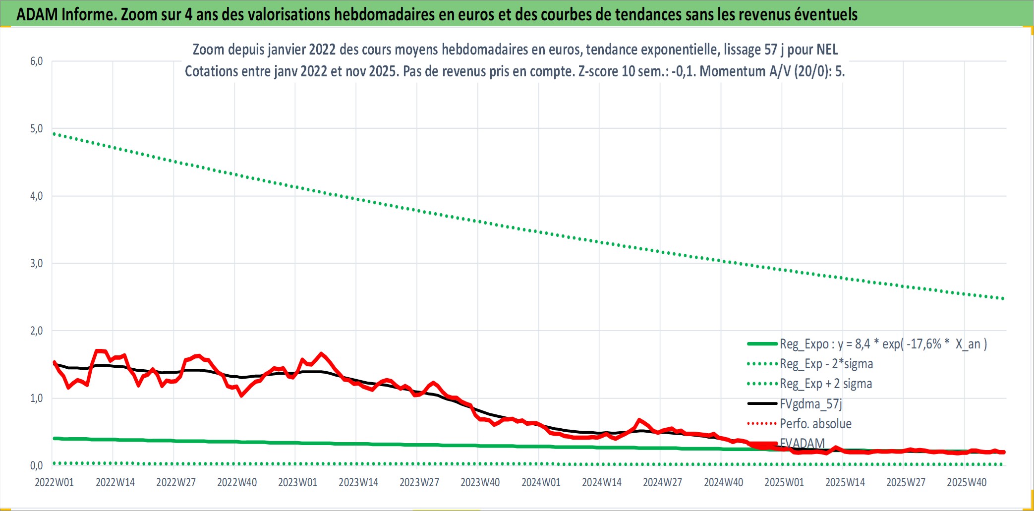 Site dédié aux investisseursPage dédiée sur site financeAnalyse des valorisations hebdomadaires de l'action NEL. Cet actif est cote en NOK. Les valorisations sont en contrevaleur EURO et couvrent les semaines 2004W42 a 2025W48. Les revenus de cet actif financier ne sont pas connus car non existants ou non disponibles sur le site Yahoo Finance. La note ESG de cet actif n'est pas connue.